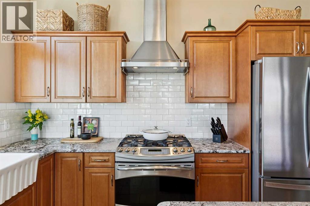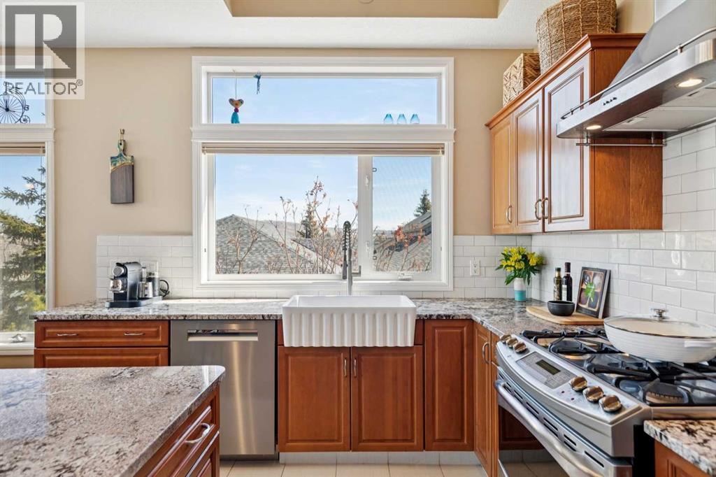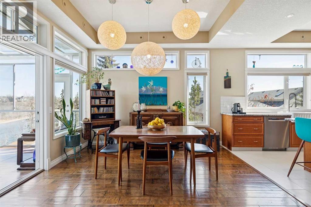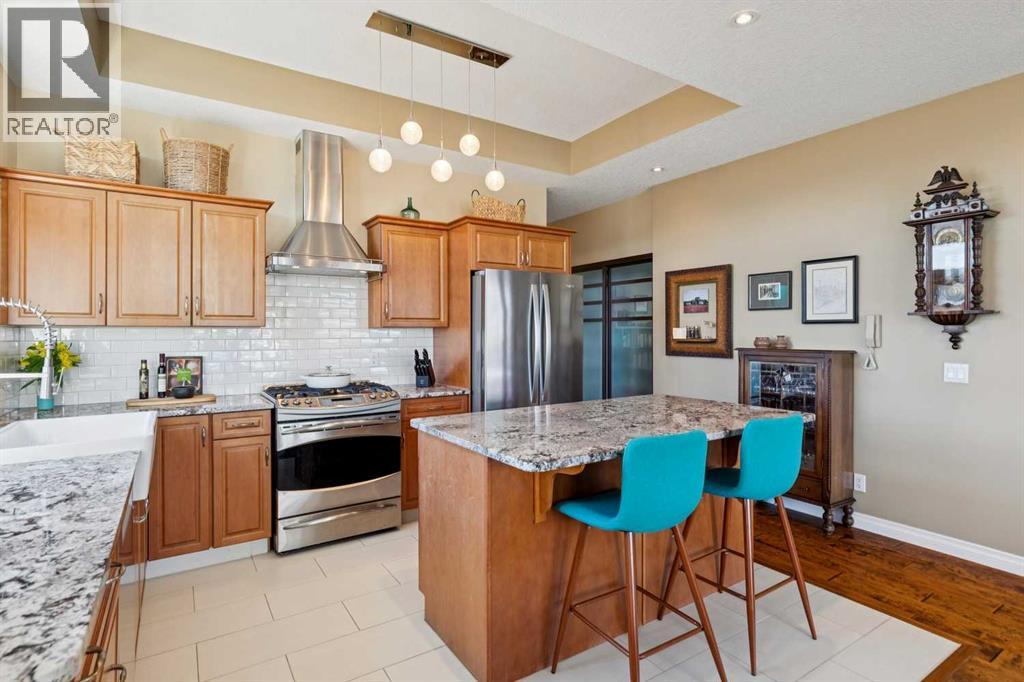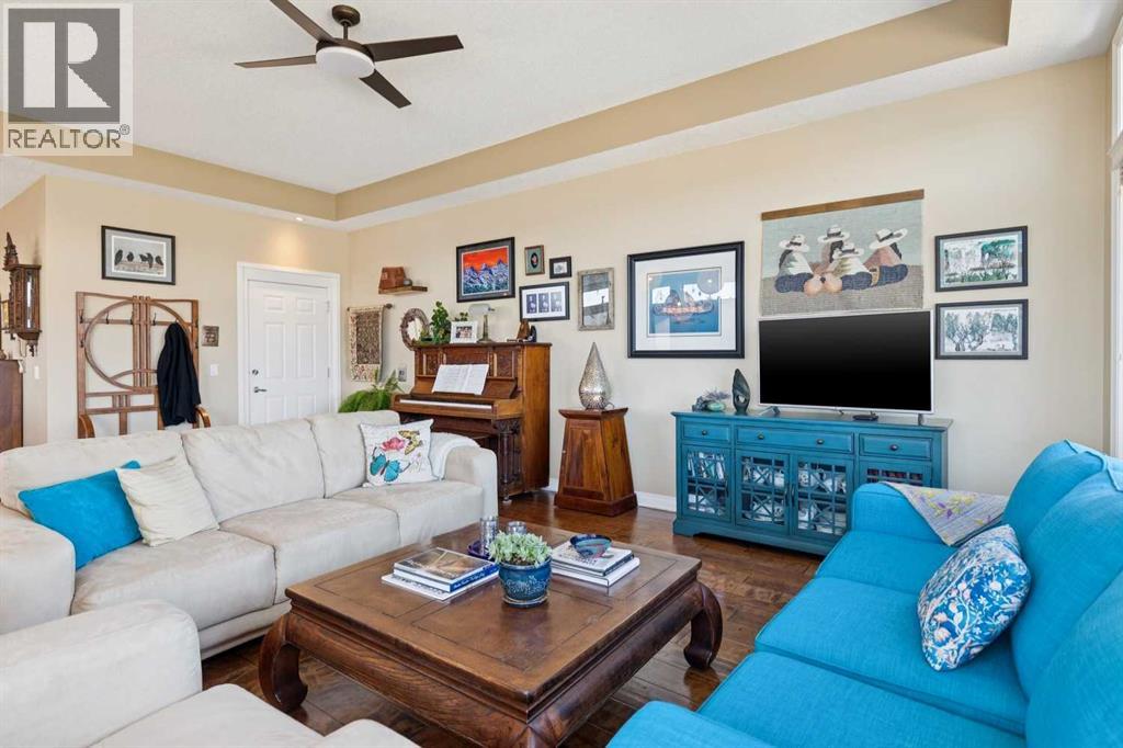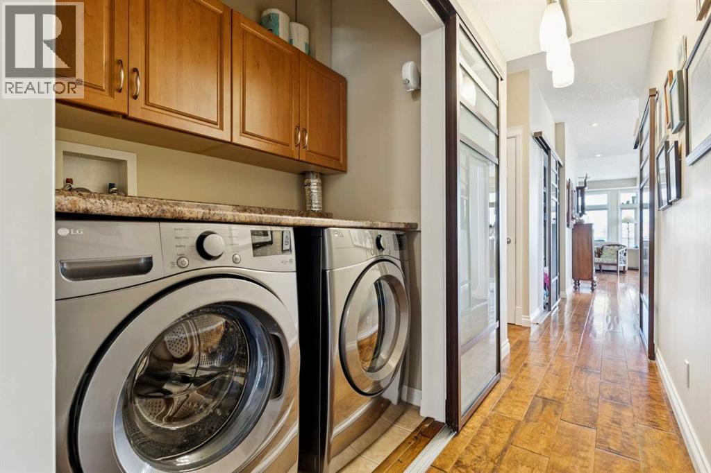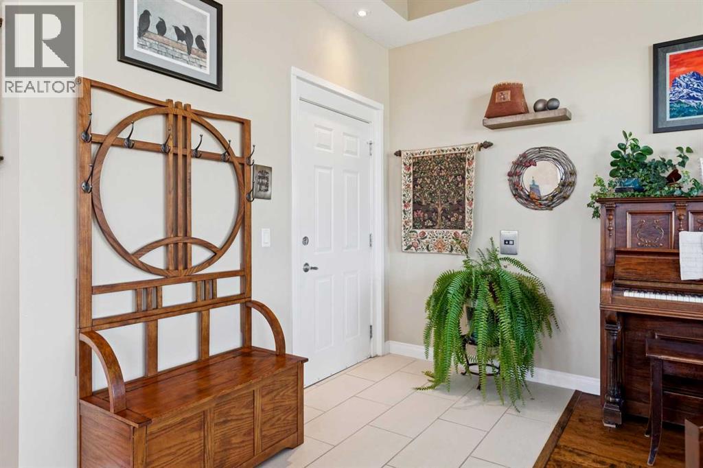 WOW! Prepare to be impressed by this stunning, ultra-stylish, recently updated TOP FLOOR condo offering breathtaking, UNOBSTRUCTED VIEWS of the Bow River, River valley and ROCKY MOUNTAINS! This exceptional home delivers a truly unique lifestyle, featuring a PRIVATE ELEVATOR with direct access to your unit and a HEATED DOUBLE GARAGE with additional storage. Nestled along the Bow River and Jumping Pound Creek, this tranquil setting is surrounded by scenic pathways, creating the perfect backdrop for relaxing, entertaining, and enjoying the outdoors year-round. Inside, the home is flooded with natural light, showcasing soaring 10-foot ceilings and beautiful engineered flooring throughout. The open-concept main living area is both elegant and functional, highlighted by a modern kitchen complete with a gas stove, stainless steel appliances, and granite countertops—ideal for hosting or everyday living.To the front of the unit, you’ll find two spacious bedrooms, including a large primary retreat with a luxurious 4-piece ensuite featuring a soaker tub. A second 4-piece bathroom also offers granite countertops. A bright and spacious office provides an ideal work-from-home space. This home is loaded with premium features, including AIR CONDITIONING and convenient ATTIC STORAGE for seasonal items. Recent upgrades elevate both comfort and style, including a STUNNING 3 SEASON SUNROOM ($34,000 ), new sliding doors and designer lighting throughout the entire home. Additional updates include LG washer and dryer (Nov 2023), Whirlpool refrigerator (2022), and Bosch dishwasher (2025).With unparalleled views, upscale finishes, and a serene natural setting, this is a rare opportunity to enjoy refined riverside living at its finest. Book your showing today!! (id:63190)