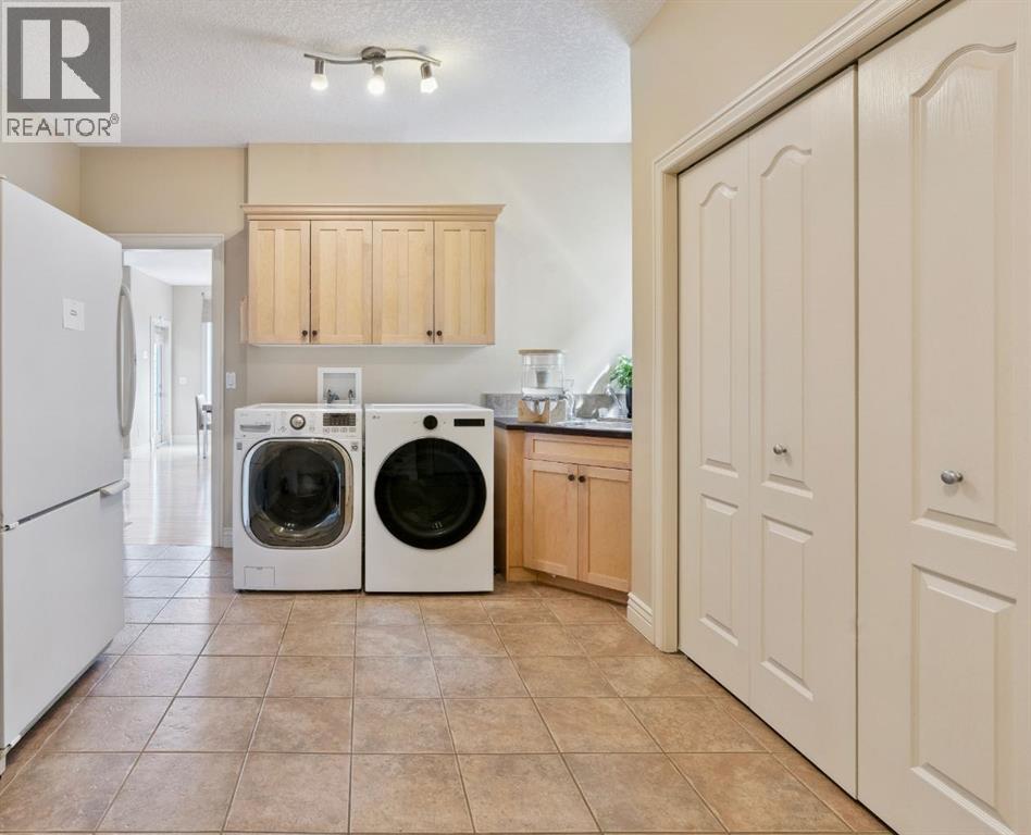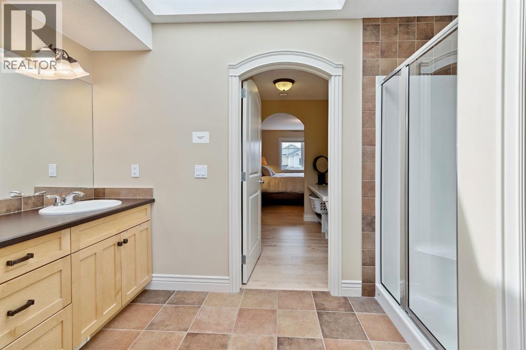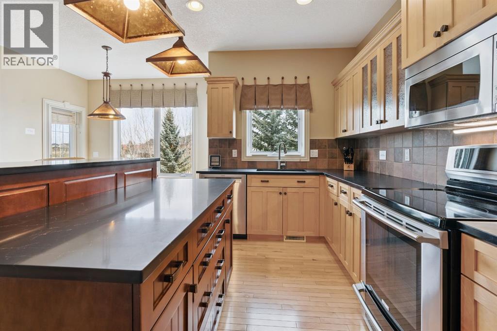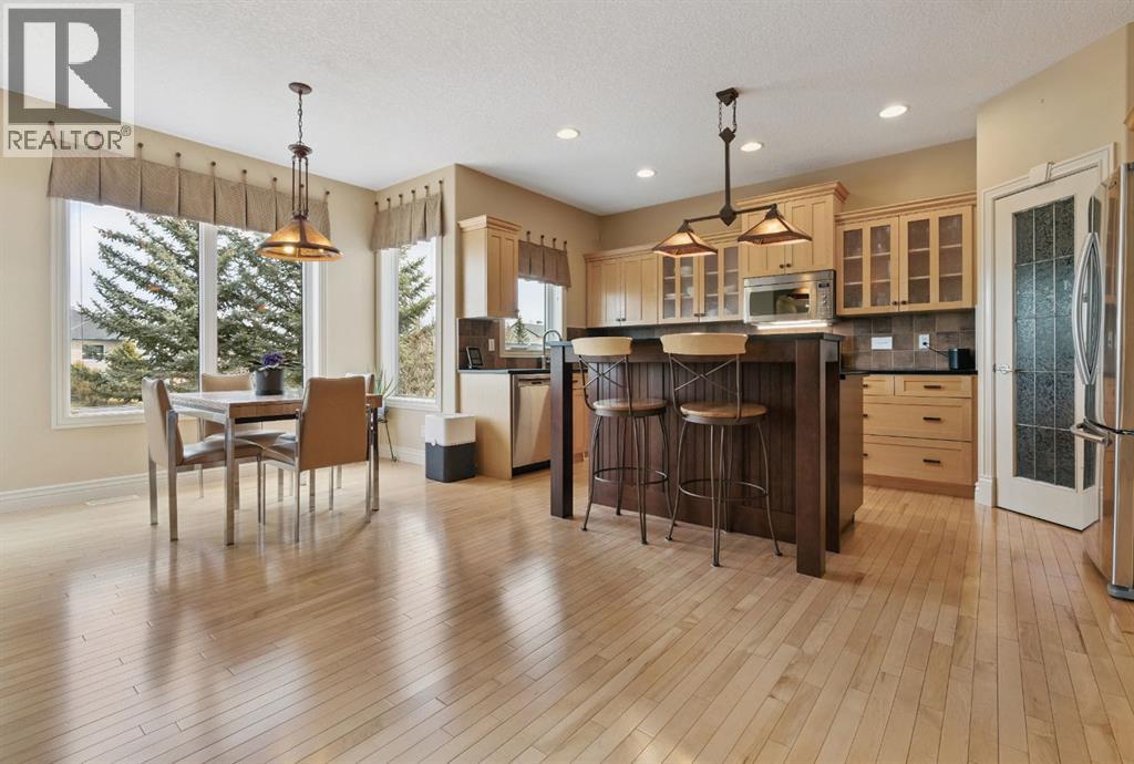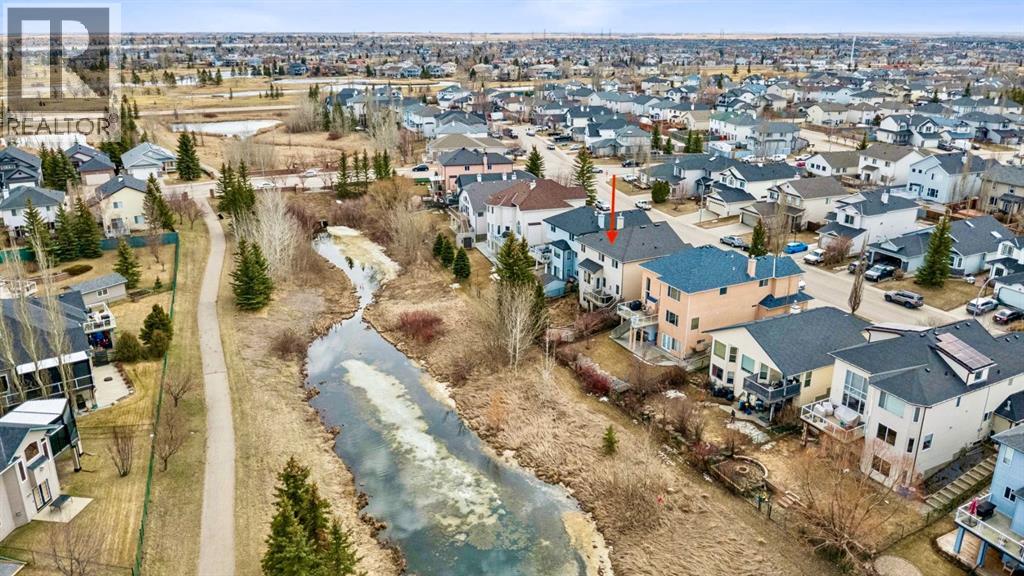 Welcome to this exceptional executive residence, tucked away on a quiet cul-de-sac in the highly sought-after lakeside community of Chestermere. This custom-built two-storey walkout offers over 3,500 sq. ft. of beautifully developed living space, including a fully finished lower level, and backs onto peaceful green space, a creek, and parkland, creating a private and picturesque setting. Thoughtfully designed and professionally curated throughout, this home showcases sophistication from the moment you step inside. Rich hardwood flooring, elegant ceramic tile and an abundance of natural light elevate the main level, where a seamless layout blends everyday comfort with effortless entertaining. The stylish kitchen features stainless steel appliances, generous prep space, and excellent functionality, while the adjoining living and dining areas create a warm and inviting atmosphere for gatherings. A spacious laundry and mudroom with custom built-in cabinetry adds convenience and everyday luxury. Upstairs, four generously sized bedrooms provide an ideal family layout, highlighted by a serene primary retreat complete with a spa-inspired five-piece ensuite.The fully finished walkout basement expands the home’s versatility with a large family room, an additional bedroom, full bathroom, and a flexible bonus space perfect for a hobby room, workshop, gym, or creative studio. Outside, the professionally landscaped backyard is truly exceptional, with over $40,000 invested to create a private outdoor oasis. Expansive patios, stone pathways, and an underground sprinkler system ensure beauty with low maintenance, while direct access to the surrounding reserve offers peaceful views and year-round enjoyment. Additional features include central air conditioning, two fireplaces, skylights, and a double attached garage. Ideally located within walking distance to schools, parks, and amenities, this is a rare opportunity to own a meticulously maintained and extensively upgraded home in on e of Chestermere’s most desirable settings. (id:63190)