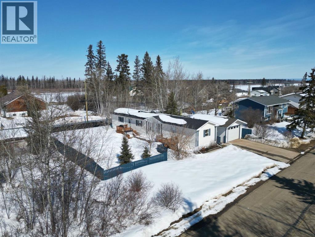 Set on a quiet street in Fort Vermilion and just a short walk to a park, grocery store, and the majestic Peace River, this property offers a great mix of location, space, and functionality. Featuring a 3 bed, 2 bath home, detached heated garage, and a huge fenced lot, there’s plenty here to appreciate. The yard offers excellent curb appeal with mature trees for shade and shelter, a concrete driveway, and lots of room to enjoy the outdoors, complete with a firepit area and storage shed. Step inside to a bright and welcoming home that has seen numerous tasteful updates, including new flooring throughout and a refreshed, modern feel. The layout is both practical and comfortable, with two bedrooms and a full bath on one end, and a private primary suite with its own full ensuite on the other. The main living area features vaulted ceilings and an open-concept design, with a spacious kitchen offering plenty of cabinets and counter space, quality appliances, and a seamless flow into the dining and living room. Large windows bring in an abundance of natural light, making the space feel open and inviting. A separate laundry room adds everyday convenience. Out the back, you’ll find a 16x24 detached heated garage with a concrete floor—perfect for parking, storage, or a great hobby space. With updates including central A/C, newer decks, and shingles, this well-maintained home is truly move-in ready and offers a great opportunity to step into comfortable, worry-free living in a fantastic location. (id:63190)