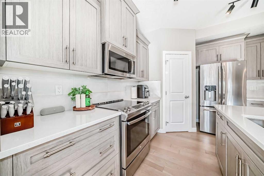 Welcome to 215 KINNIBURGH ROAD! Over 2300 sq ft of living space! Truly move-in ready, this well maintained four bedroom, 2.5 bath home offers a bright, open layout and great curb appeal with its double attached garage and inviting front entrance. Step inside to a sunlit main floor where the kitchen stands out with quartz countertops, a large island, pantry, stainless steel appliances, and modern finishes, all opening into the dining area and comfortable living room featuring a mantled gas fireplace and stone surround. Main floor laundry and a convenient two piece powder room complete this level. Upstairs, you’ll find a spacious bonus room with a vaulted ceiling, along with three good sized bedrooms. The primary suite offers plenty of space, a walk in closet, and a private ensuite with an oversized shower and soaker tub, while the additional bedrooms share a full four piece bath. The basement adds even more usable space with a large rec room, bedroom and includes a roughed-in bathroom, ready for future development. Outside, the west facing backyard is fully fenced and features a raised deck, fire pit area, plus a gas line for your BBQ. Ideally located within walking distance to East Lake School, shops, and amenities. Book your showing today! (id:63190)