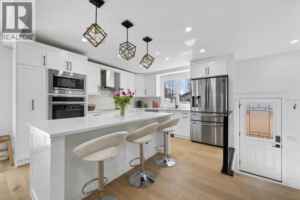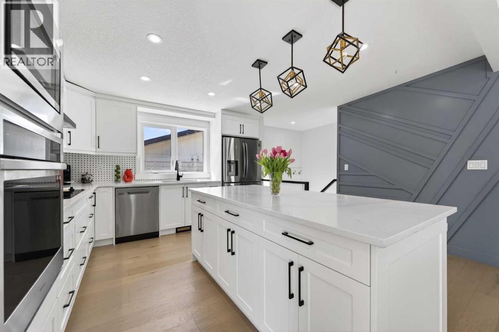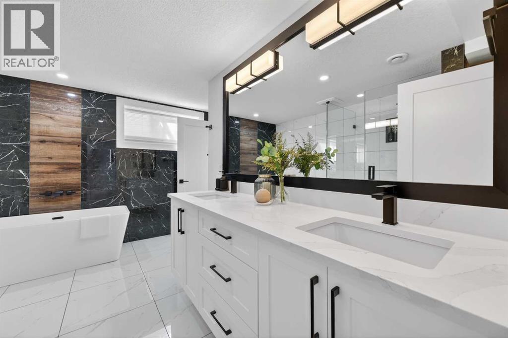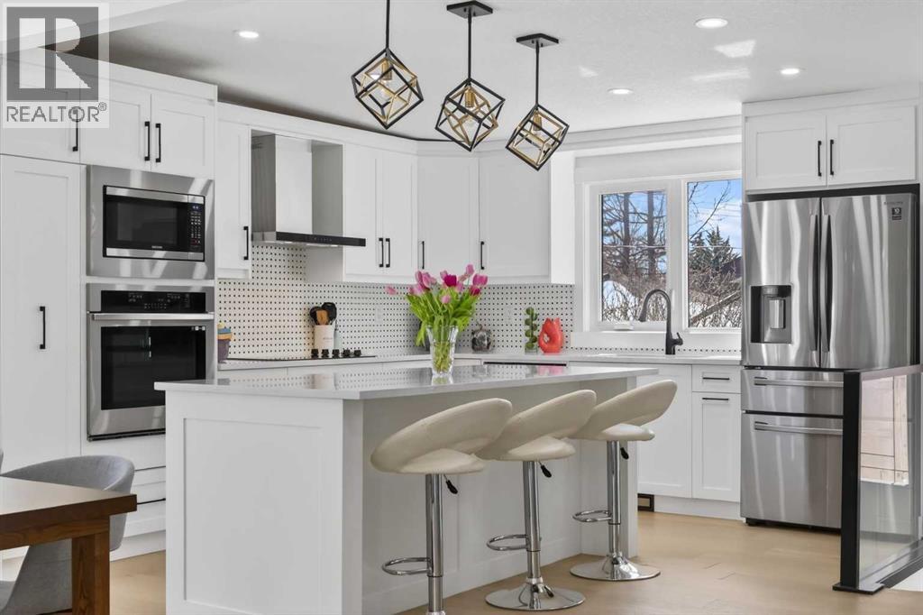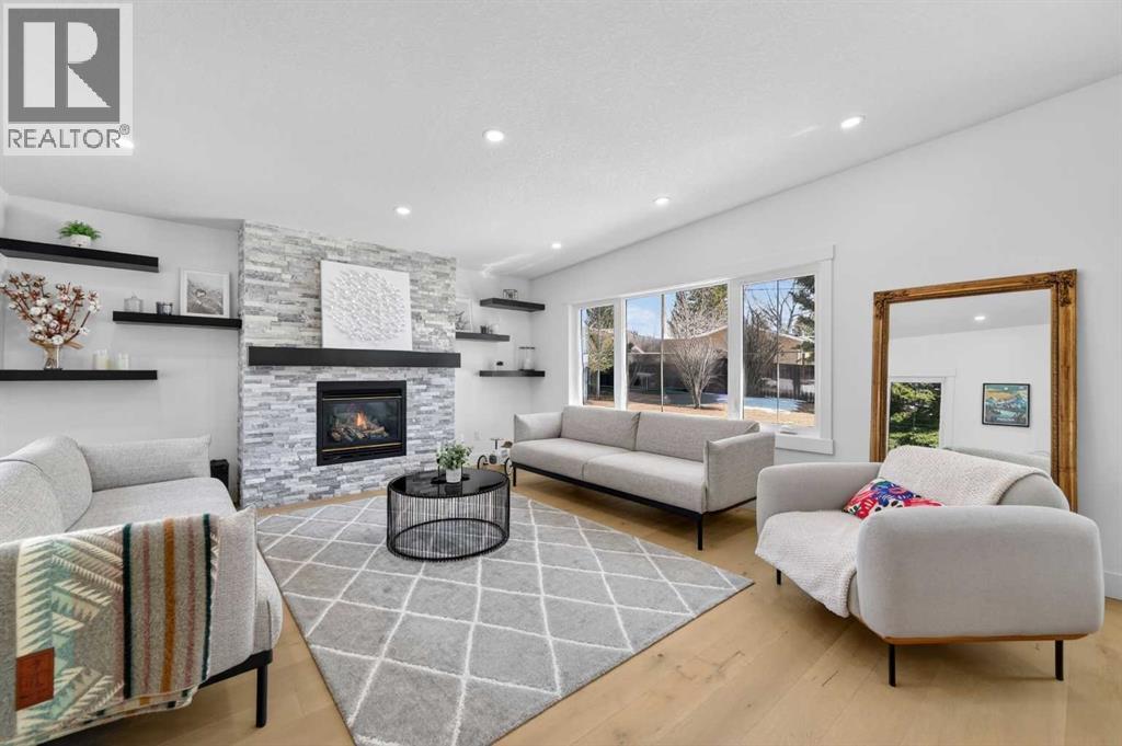 Fall in love the moment you walk through the front door.This beautifully renovated 1,340 sq. ft. bungalow ( 2,600 sq. ft. of total living space) is perfectly situated on a quiet, tree-lined street in sought-after Silver Springs. Fully renovated to the studs in 2022, this stunning home blends modern style with everyday comfort—ideal for family living and entertaining.Flooded with natural light, the main living area showcases expansive windows and a modern gas fireplace with a natural stone surround. The Living Room space flows effortlessly into a spacious dining area and a stunning chef-inspired kitchen featuring quartz countertops, a statement oversized island, abundant cabinetry, and sleek stainless-steel appliances. Step out to the large deck overlooking the generous backyard—perfect for summer gatherings.The main floor also boasts gorgeous hardwood flooring and feature walls throughout. Enter the luxurious primary suite complete with a walk-in closet and a spa-like ensuite boasting dual vanities and an impressive freestanding shower. Two additional well-sized bedrooms and a beautifully appointed 4-piece bathroom complete the main level.The fully developed lower level is designed for both relaxation and entertaining, offering a huge family room with a custom-built bar and a stunning fireplace feature that adds warmth and style. Two additional bedrooms—both with egress windows—provide flexibility for family or guests, along with an absolutely gorgeous 4-piece bathroom. A laundry room with sink and ample storage complete the space.Additional renovation features included all new windows, a high-efficiency furnace, updated new plumbing and electrical (panel and wiring), a 50-gallon hot water tank, and a new stucco exterior—offering peace of mind for years to come.Ideally located close to schools, shopping, and transit, plus Botanical Gardens, scenic walking paths, off-leash parks, and access to the Bow River.Perfect for families or empty nesters—this home is tr uly move-in ready. Just unpack and enjoy! (id:63190)
