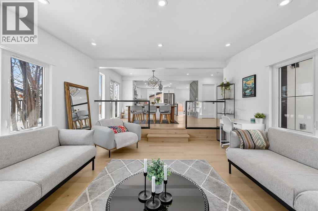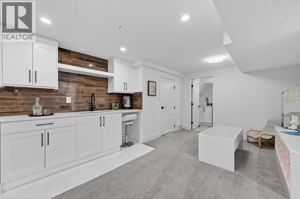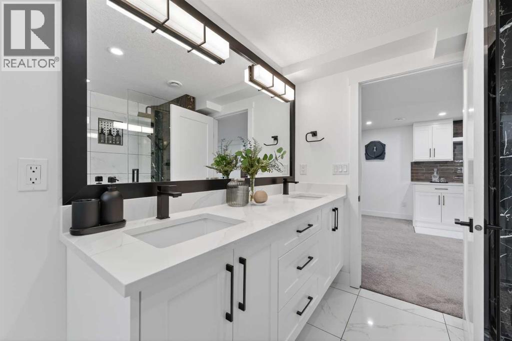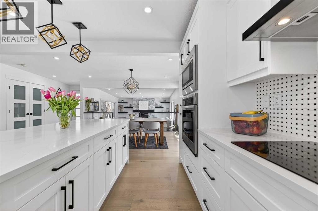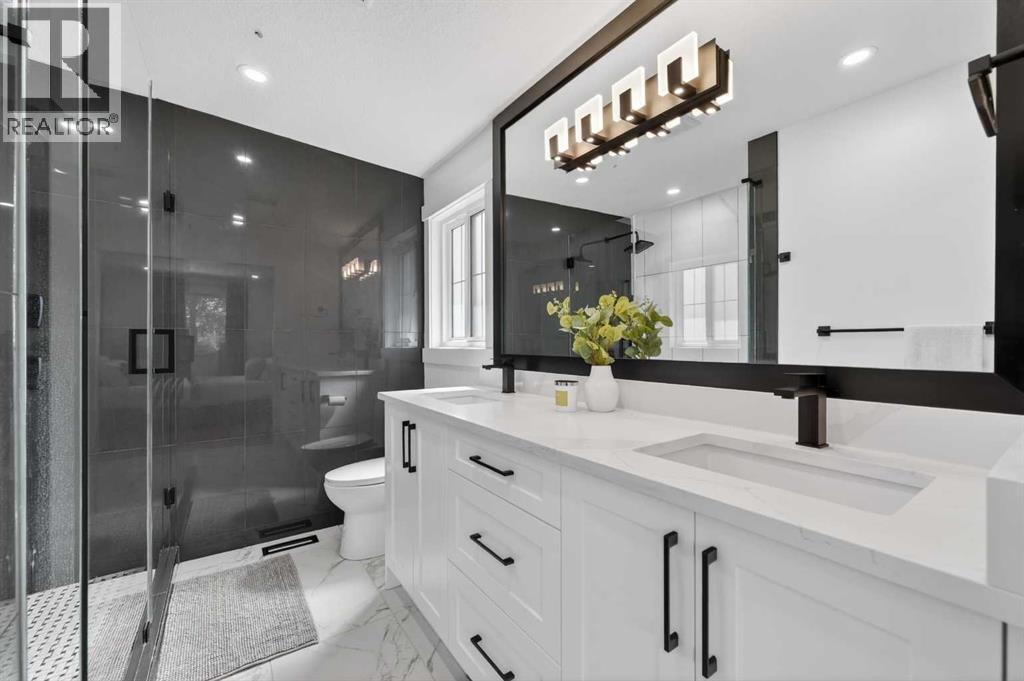 Fall in love the moment you walk through the front door.This beautifully renovated 1,340 sq. ft. bungalow ( 2,600 sq. ft. of total living space) is perfectly situated on a quiet, tree-lined street in sought-after Silver Springs. Fully renovated to the studs in 2022, this stunning home blends modern style with everyday comfort—ideal for family living and entertaining.Flooded with natural light, the main living area showcases expansive windows and a modern gas fireplace with a natural stone surround. The Living Room space flows effortlessly into a spacious dining area and a stunning chef-inspired kitchen featuring quartz countertops, a statement oversized island, abundant cabinetry, and sleek stainless-steel appliances. Step out to the large deck overlooking the generous backyard—perfect for summer gatherings.The main floor also boasts gorgeous hardwood flooring and feature walls throughout. Enter the luxurious primary suite complete with a walk-in closet and a spa-like ensuite boasting dual vanities and an impressive freestanding shower. Two additional well-sized bedrooms and a beautifully appointed 4-piece bathroom complete the main level.The fully developed lower level is designed for both relaxation and entertaining, offering a huge family room with a custom-built bar and a stunning fireplace feature that adds warmth and style. Two additional bedrooms—both with egress windows—provide flexibility for family or guests, along with an absolutely gorgeous 4-piece bathroom. A laundry room with sink and ample storage complete the space.Additional renovation features included all new windows, a high-efficiency furnace, updated new plumbing and electrical (panel and wiring), a 50-gallon hot water tank, and a new stucco exterior—offering peace of mind for years to come.Ideally located close to schools, shopping, and transit, plus Botanical Gardens, scenic walking paths, off-leash parks, and access to the Bow River.Perfect for families or empty nesters—this home is tr uly move-in ready. Just unpack and enjoy! (id:63190)