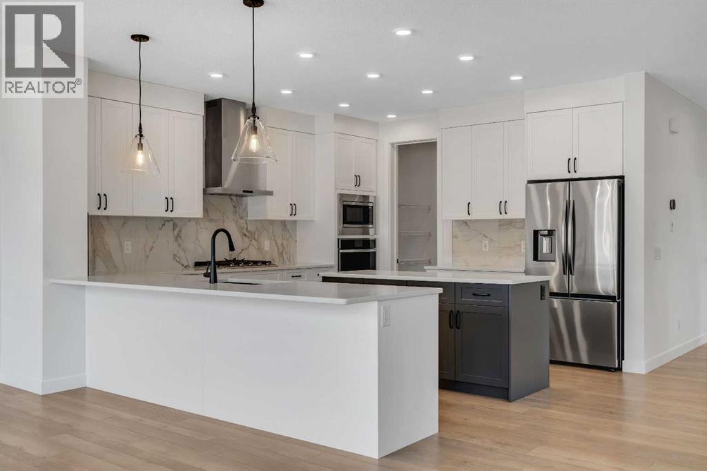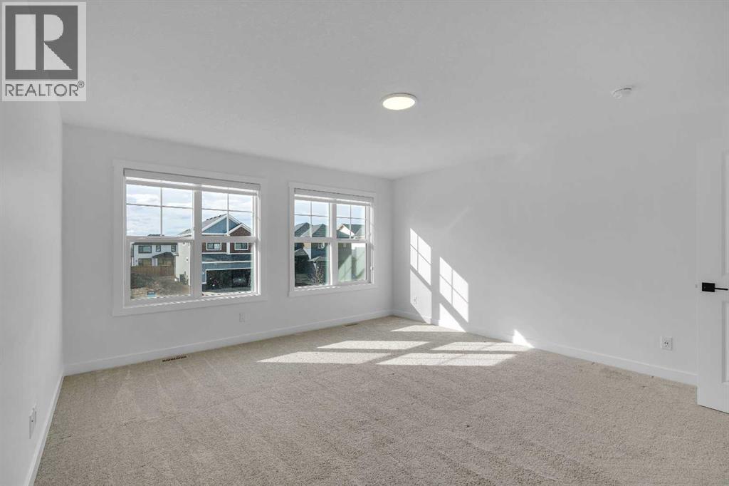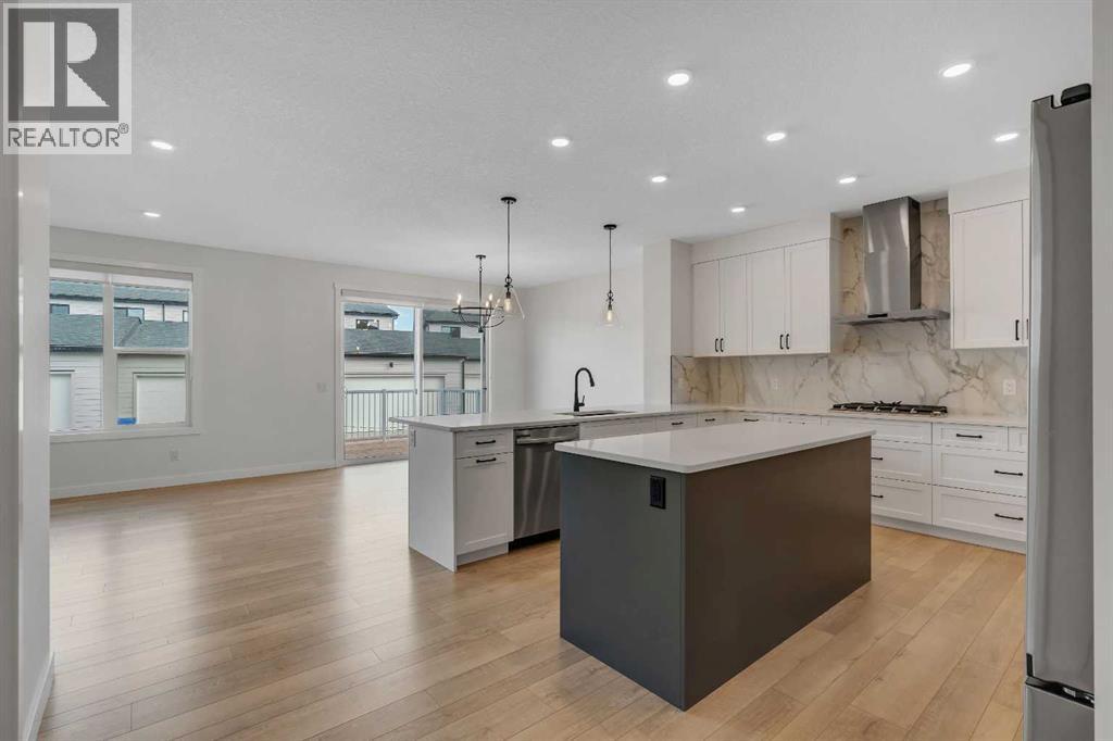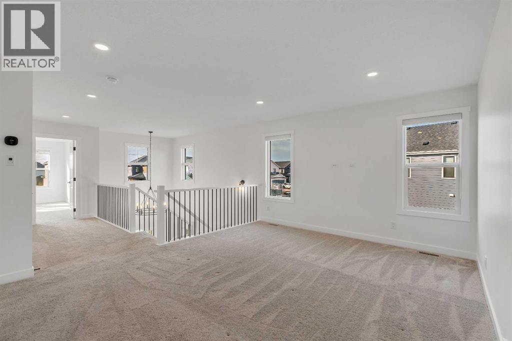 Welcome to 649 Sailfin Drive, located in the brand new lake community of Harmony just 10 minutes west of Calgary and approximately 30 minutes to the mountains, where you are buying more than just a home but a true lifestyle. This 2025 Daytona built home presents like new and features numerous upgrades throughout including being situated on an oversized lot and in one of the most desirable phases of Harmony within walking distance to the lake and community amenities. Offering over 2600 sq ft of living space with 3 bedrooms and 2.5 bathrooms, the layout is both functional and thoughtfully designed for families. The main floor welcomes you with a large foyer, private office with French doors, 2 piece powder room, and a spacious living room centred around a gas fireplace, perfect for family time or entertaining after a day at the lake. The dining area flows seamlessly into the chef’s kitchen, showcasing full height custom cabinetry, a gas range, built in wall oven and microwave, quartz countertops throughout, a large breakfast bar, and an oversized island with plenty of space for a growing family. This level is completed by a massive walk through pantry that connects to the mudroom with custom lockers and direct garage access, ideal for busy households. Upstairs you will find a large bonus room, 3 bedrooms, and a well planned layout. The primary bedroom measures approximately 14.5 by 15.6 ft and features a large walk in closet along with a spa inspired ensuite offering a double vanity, custom stand up shower, and standalone soaker tub. The second and third bedrooms are generously sized and each includes a large walk in closet. You will also find a spacious laundry room with sink and a full 4 piece bathroom on this level. Mechanical highlights include 2 high efficiency furnaces, 2 central A C systems, and a sump pump. Additional upgrades include a custom high end blind package throughout, railing upgrades, and many more. Why wait 12 months for a new home when you can mov e in today and save the GST. Set in the award winning community of Harmony with its 2 private lakes, a brand new Nordic Spa (2028, brochure link in listing), world class golf at Mickelson National, extensive pathway system, playgrounds, and future village centre, this home offers an exceptional blend of comfort, quality, and lifestyle. Please book your private shwoing today. (id:63190)