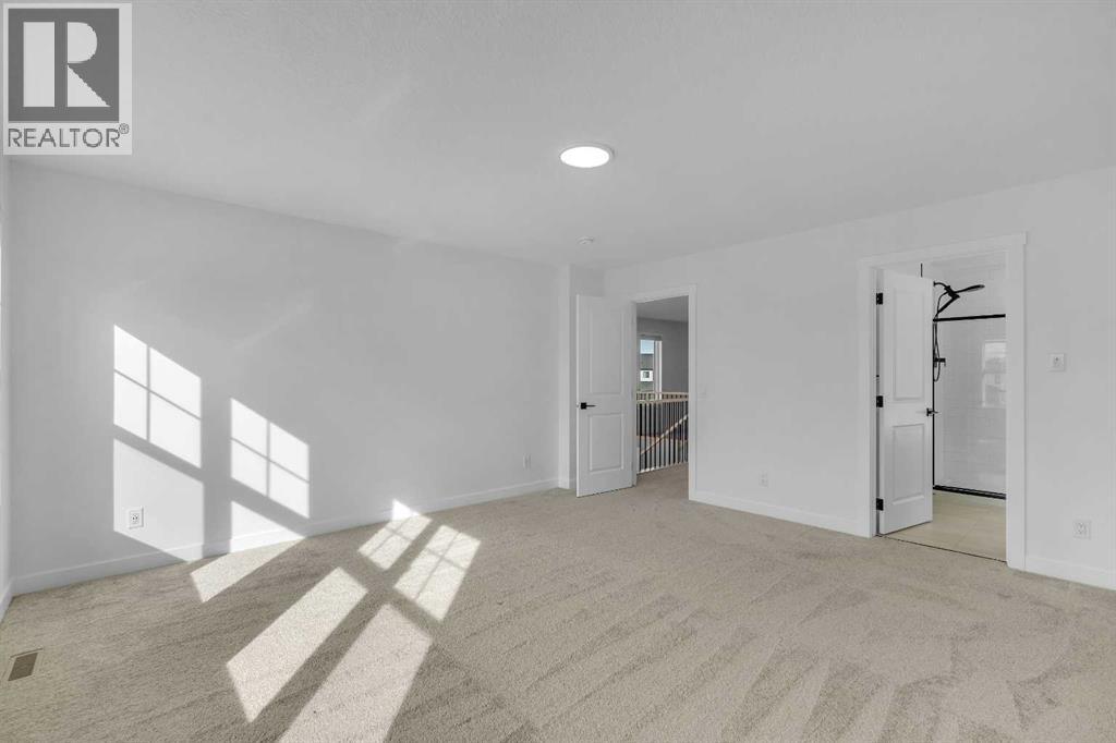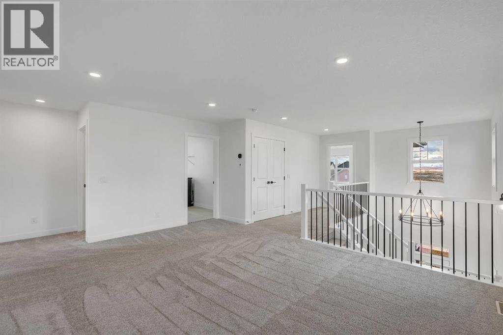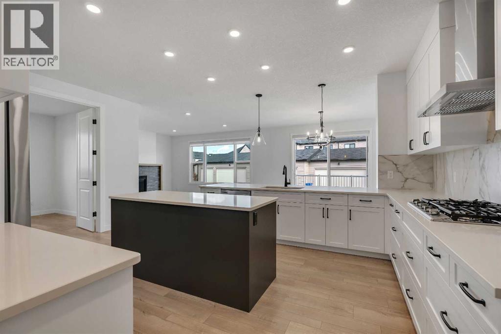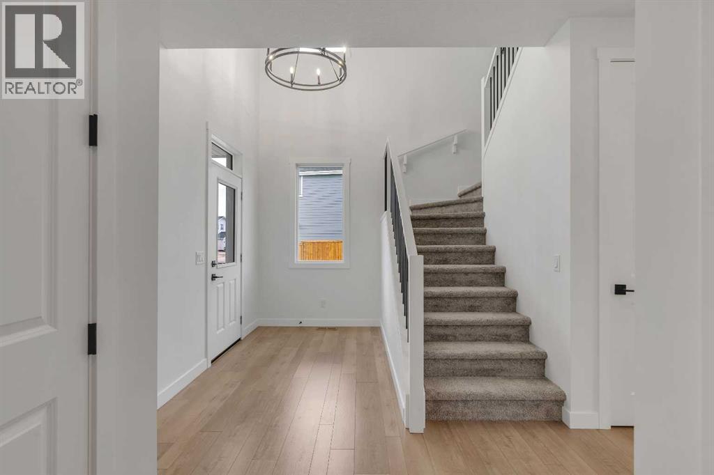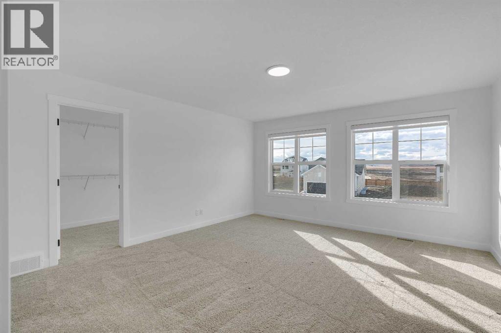 Welcome to 649 Sailfin Drive, located in the brand new lake community of Harmony just 10 minutes west of Calgary and approximately 30 minutes to the mountains, where you are buying more than just a home but a true lifestyle. This 2025 Daytona built home presents like new and features numerous upgrades throughout including being situated on an oversized lot and in one of the most desirable phases of Harmony within walking distance to the lake and community amenities. Offering over 2600 sq ft of living space with 3 bedrooms and 2.5 bathrooms, the layout is both functional and thoughtfully designed for families. The main floor welcomes you with a large foyer, private office with French doors, 2 piece powder room, and a spacious living room centred around a gas fireplace, perfect for family time or entertaining after a day at the lake. The dining area flows seamlessly into the chef’s kitchen, showcasing full height custom cabinetry, a gas range, built in wall oven and microwave, quartz countertops throughout, a large breakfast bar, and an oversized island with plenty of space for a growing family. This level is completed by a massive walk through pantry that connects to the mudroom with custom lockers and direct garage access, ideal for busy households. Upstairs you will find a large bonus room, 3 bedrooms, and a well planned layout. The primary bedroom measures approximately 14.5 by 15.6 ft and features a large walk in closet along with a spa inspired ensuite offering a double vanity, custom stand up shower, and standalone soaker tub. The second and third bedrooms are generously sized and each includes a large walk in closet. You will also find a spacious laundry room with sink and a full 4 piece bathroom on this level. Mechanical highlights include 2 high efficiency furnaces, 2 central A C systems, and a sump pump. Additional upgrades include a custom high end blind package throughout, railing upgrades, and many more. Why wait 12 months for a new home when you can mov e in today and save the GST. Set in the award winning community of Harmony with its 2 private lakes, a brand new Nordic Spa (2028, brochure link in listing), world class golf at Mickelson National, extensive pathway system, playgrounds, and future village centre, this home offers an exceptional blend of comfort, quality, and lifestyle. Please book your private shwoing today. (id:63190)