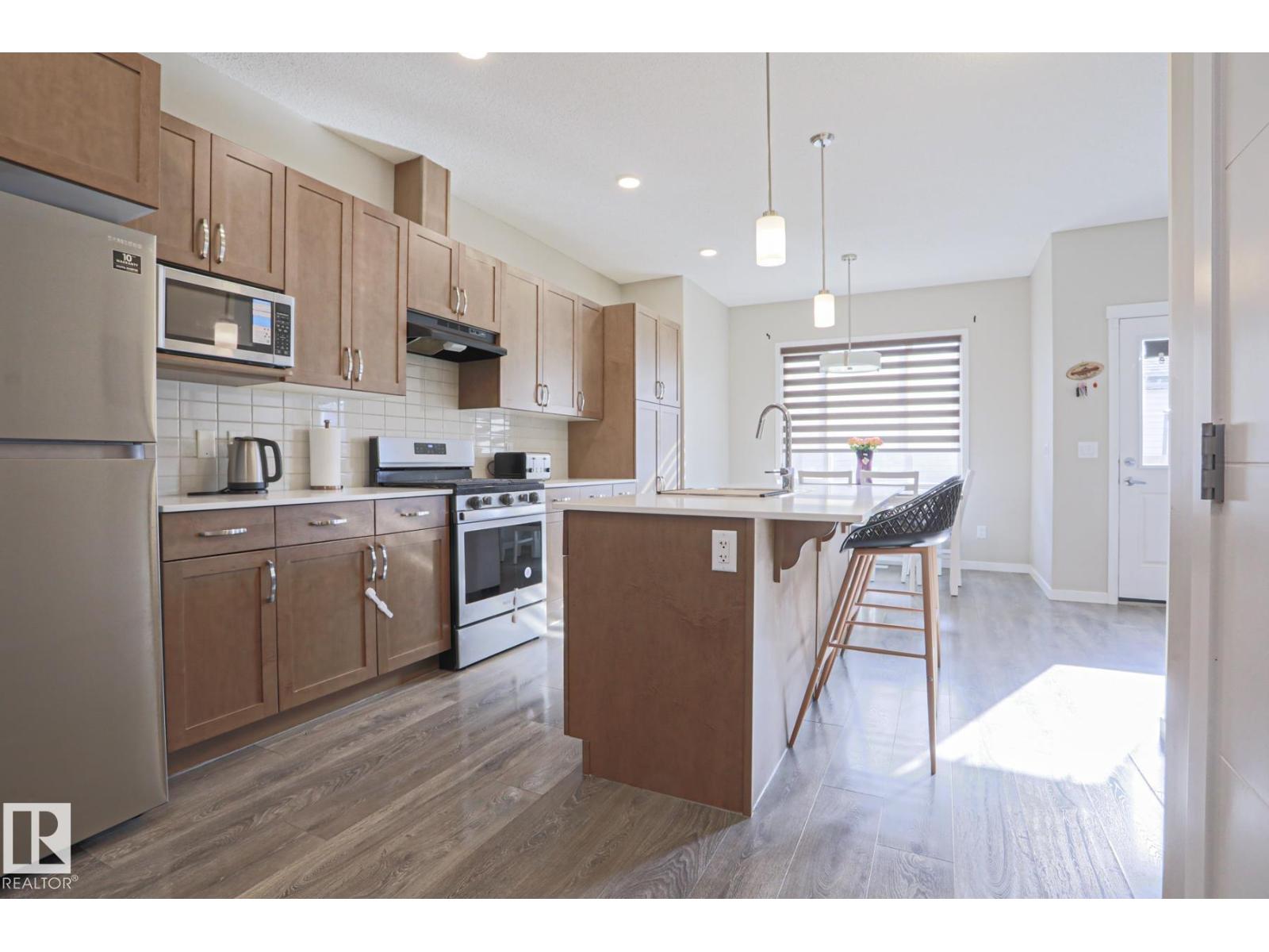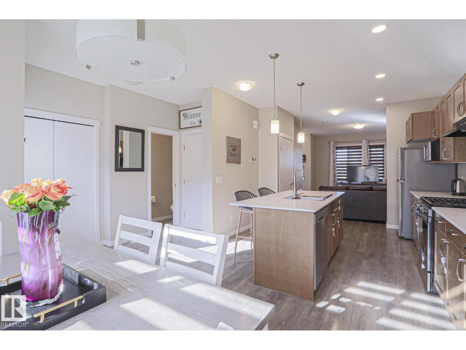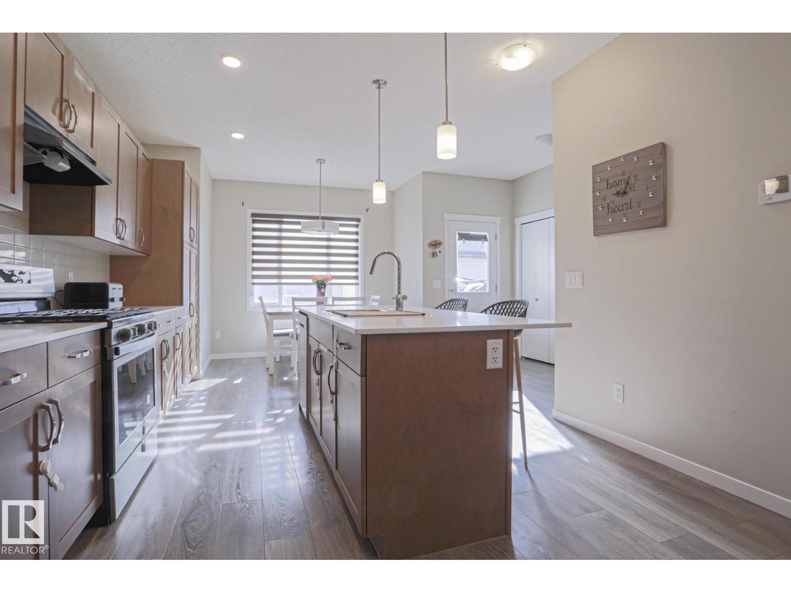 Welcome home to this beautifully maintained 3-bedroom townhouse offering 1,380 sq ft of comfortable living space—with NO condo fees! The bright, open-concept main floor features modern finishes, warm flooring, and a stylish kitchen with ample cabinetry, island seating, gas stove and natural light flowing into the dining area. Upstairs, enjoy 3 spacious bedrooms and 2.5 baths, perfect for families or first-time buyers. Step outside to a fully fenced and landscaped yard—ideal for relaxing or entertaining—plus a double detached garage for added convenience. The unfinished basement is ready for your personal touch and future development and lots of storage space. Located in a family-friendly community close to schools, shopping, and everyday amenities, this home offers the perfect blend of comfort, value, and location. Don’t miss your opportunity to own this move-in ready gem! (id:63190)
