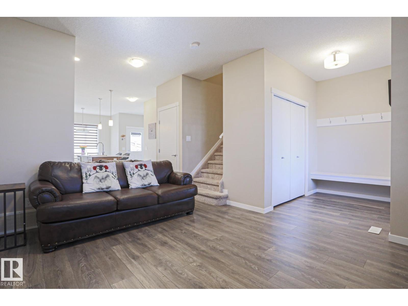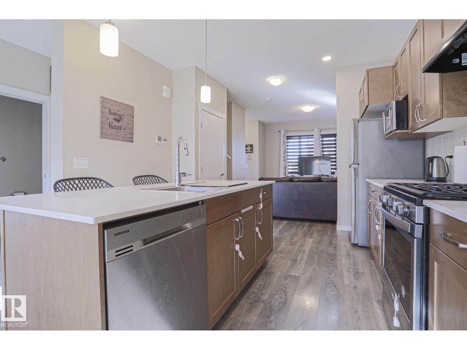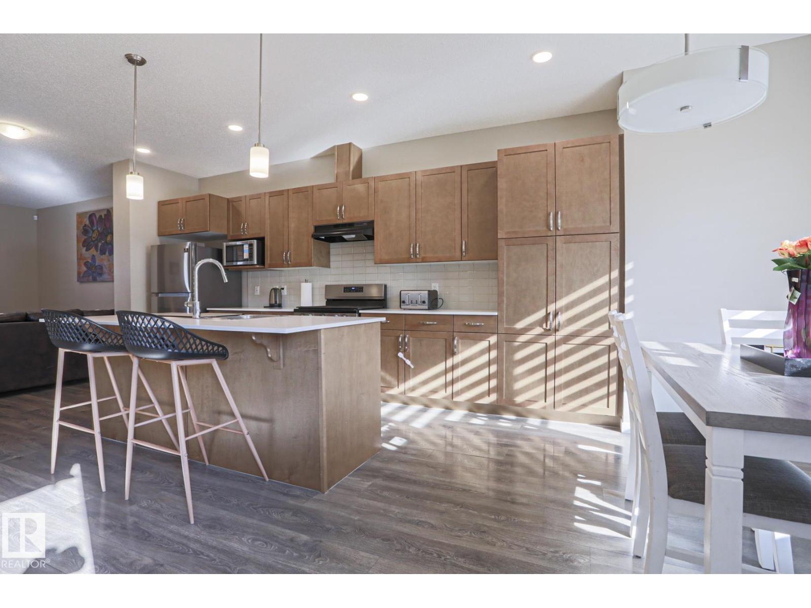 Welcome home to this beautifully maintained 3-bedroom townhouse offering 1,380 sq ft of comfortable living space—with NO condo fees! The bright, open-concept main floor features modern finishes, warm flooring, and a stylish kitchen with ample cabinetry, island seating, gas stove and natural light flowing into the dining area. Upstairs, enjoy 3 spacious bedrooms and 2.5 baths, perfect for families or first-time buyers. Step outside to a fully fenced and landscaped yard—ideal for relaxing or entertaining—plus a double detached garage for added convenience. The unfinished basement is ready for your personal touch and future development and lots of storage space. Located in a family-friendly community close to schools, shopping, and everyday amenities, this home offers the perfect blend of comfort, value, and location. Don’t miss your opportunity to own this move-in ready gem! (id:63190)