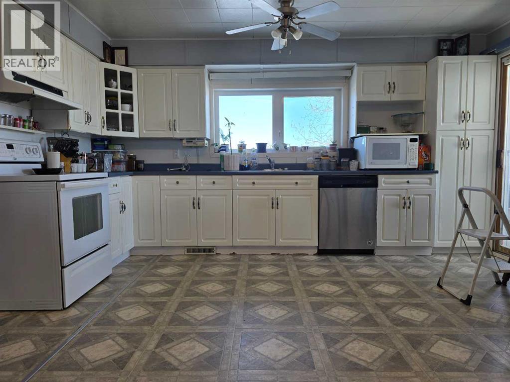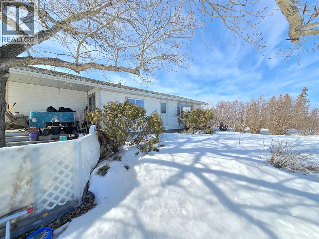 Escape to the peace and beauty of country living with this tranquil 10.83-acre property, where endless blue skies and sweeping views of open farmland create the perfect backdrop for your next chapter. Whether you're looking for space to unwind, room to grow, or a place to put down roots, this acreage delivers. The solid home offers a bright and welcoming interior with a functional layout designed for everyday living. The spacious eat-in kitchen is filled with natural light and provides plenty of storage and room to gather—an ideal hub for family meals or entertaining. Just off the kitchen, convenient main floor laundry helps simplify daily routines. Step outside through the patio doors to the south-facing deck, where you’ll find a great mix of covered and open space—perfect for summer BBQs, relaxing in the sun, or taking in the peaceful surroundings. With a total of 4 bedrooms and 1.5 bathrooms, there’s plenty of room for family or guests. The partially finished basement offers additional space and the opportunity to expand your living area to suit your needs. Outdoors, the possibilities continue. The large yard features a generous garden area and a dugout complete with a water line, making it easy to maintain your outdoor projects. Two separate approaches—including a secondary access point—provide excellent flexibility for larger vehicles, equipment, or future development. If you’ve been searching for space, privacy, and potential—all wrapped into one scenic package—this property is ready to welcome you home. (id:63190)
