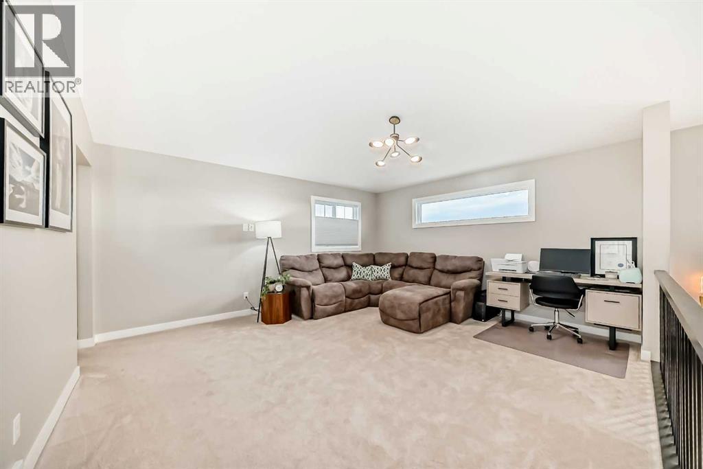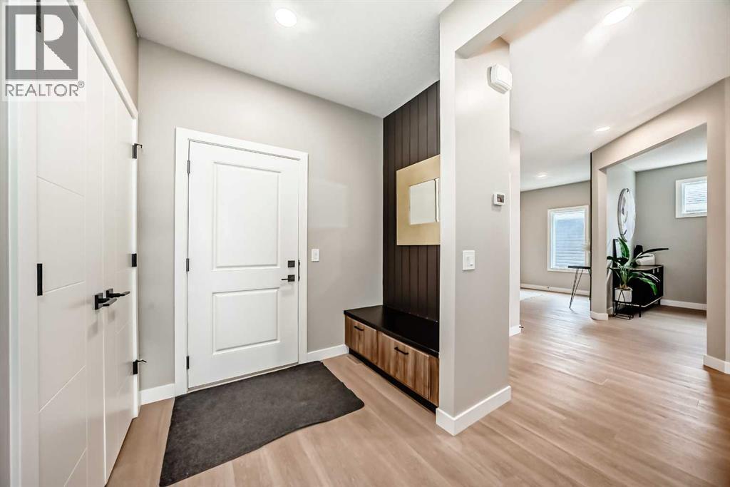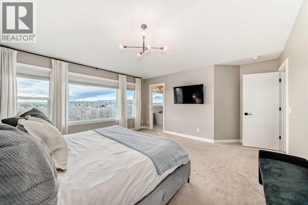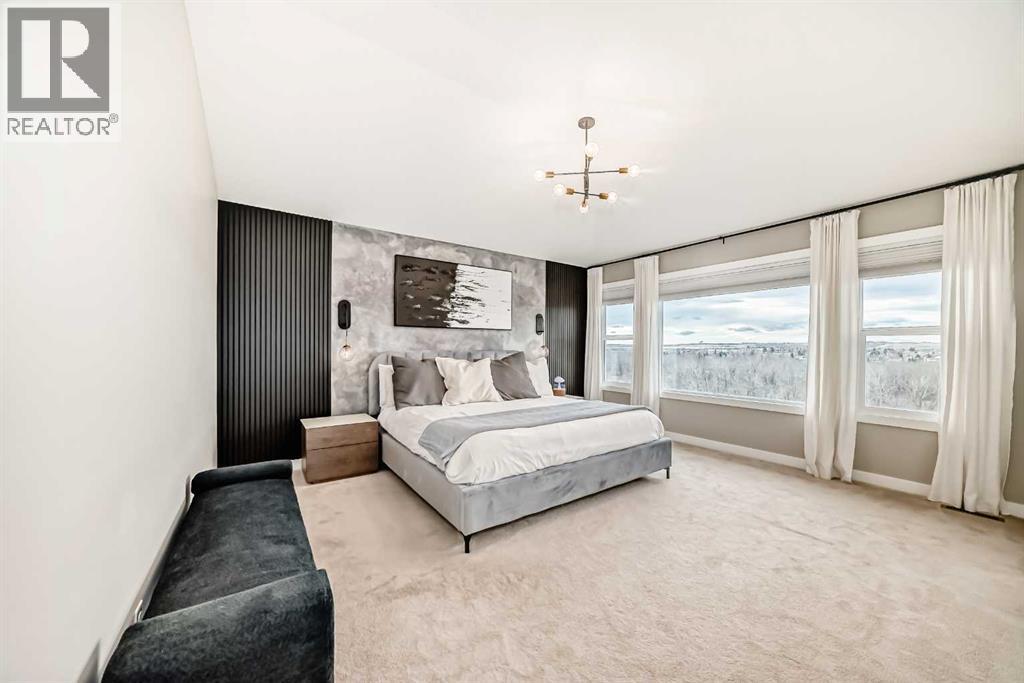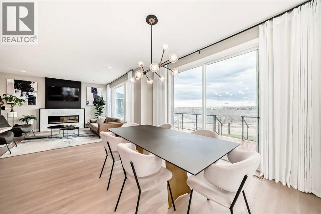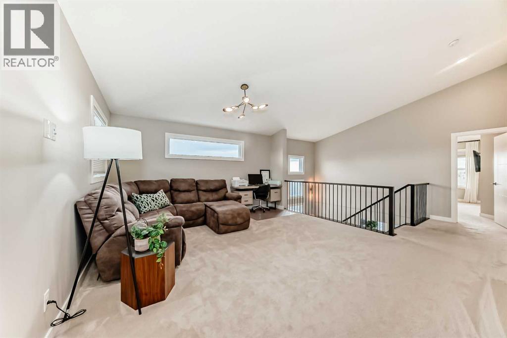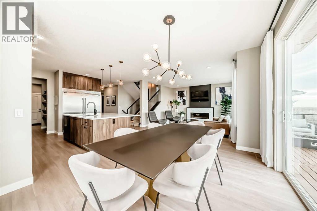 Welcome home! This 2020 Sterling Homes-built masterpiece in Okotoks delivers elevated design, thoughtful upgrades, and a highly functional layout in the quiet, sought-after, family-friendly community of Mountainview. Offering over 3,700 sq. ft. of finished living space, this 2-storey features 5 bedrooms, 4 bathrooms, and a front-attached double garage.The main floor is open, refined, and designed for modern living. A dedicated front office provides a polished work-from-home space, while the mudroom off the garage keeps everyday life organized and efficient. The main living area is bright and expansive, anchored by southwest-facing windows that capture mountain views and flood the home with natural light. The kitchen is a true centrepiece, showcasing a massive quartz island, two-tone cabinetry, premium stainless-steel appliances, and a fully equipped butler’s pantry with bar fridge, additional storage, and prep space. The dining and living areas flow seamlessly together, highlighted by a sleek feature fireplace and extending out to a cedar deck with glass railings—perfect for effortless indoor-outdoor entertaining.Upstairs, vaulted ceilings elevate both the central bonus room and primary suite, creating volume and an enhanced sense of space. The primary retreat is a private sanctuary with Scandinavian-inspired design and unobstructed views of greenspace and mountains. The spa-calibre ensuite features heated tile floors, steam shower with bench and niche, freestanding soaker tub, and a large walk-in closet with custom California Closets built-ins and integrated lighting. Three additional bedrooms are generously sized, finished with custom wainscoting and designer details, and share a well-appointed Jack & Jill bathroom with dual vanities. A dedicated upper laundry room with built-in shelving and folding counter adds everyday convenience.The fully finished basement is designed for both lifestyle and flexibility, offering 9’ ceilings, a spacious rec area, and a cu stom-built kids’ zone complete with climbing wall, castle fort, slide, ball pit, and swing—an exceptional indoor play experience. A fifth bedroom—currently used as a home gym — adds versatility, along with a 2-piece bathroom and rough-in for a future wet bar.Additional features include dual-zone heating, HRV system, and air conditioning for year-round comfort and efficiency.Outside, the home backs directly onto natural green space and walking paths, offering privacy, open views, and a strong connection to nature. Located in a thoughtfully planned community with above-average spacing between homes, this property blends modern design, functional luxury, and an exceptional setting for elevated family living. Don't miss your opportunity to build great memories. Call today for your private showing. (id:63190)