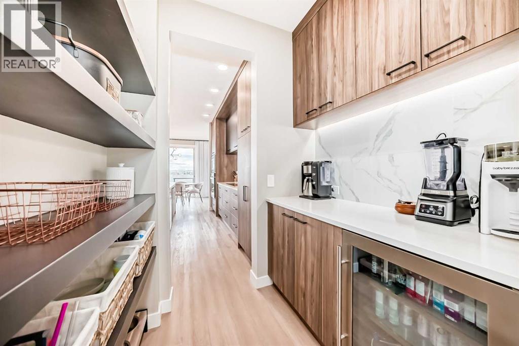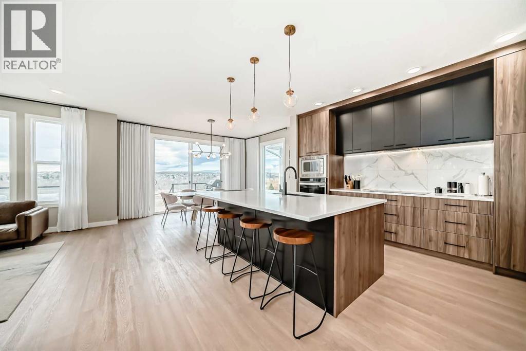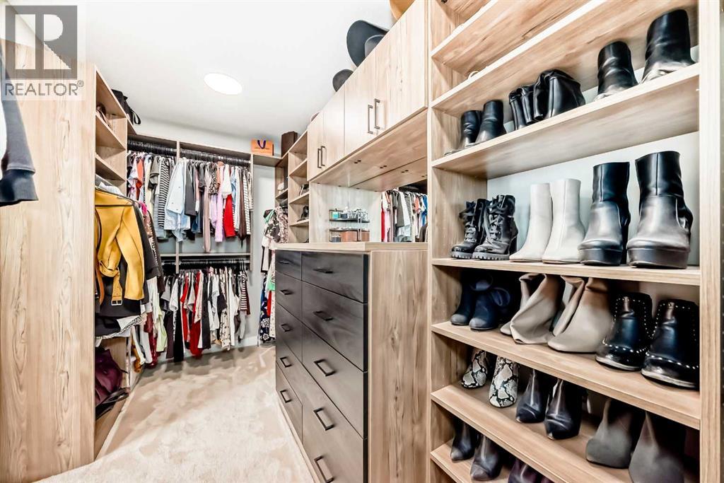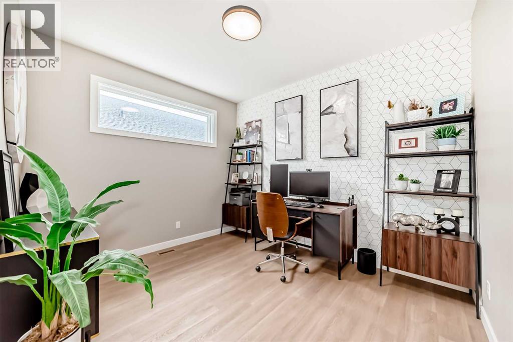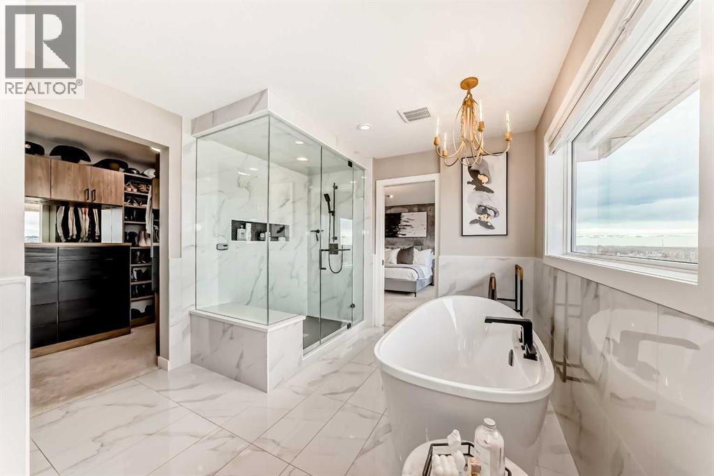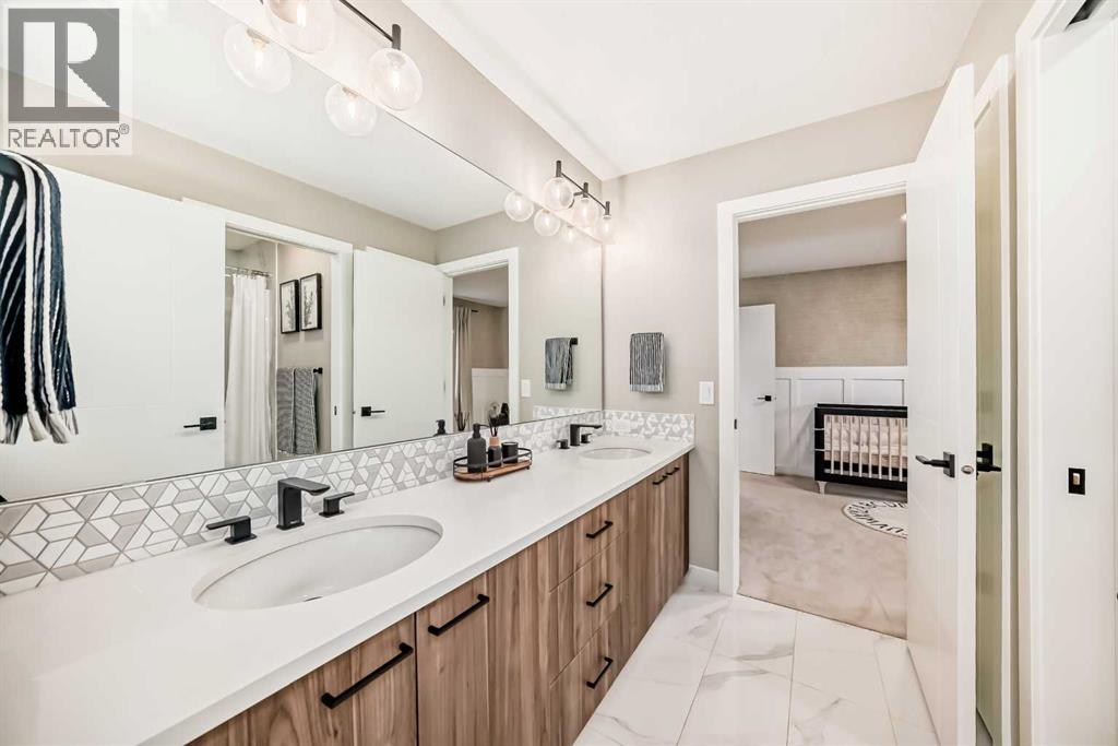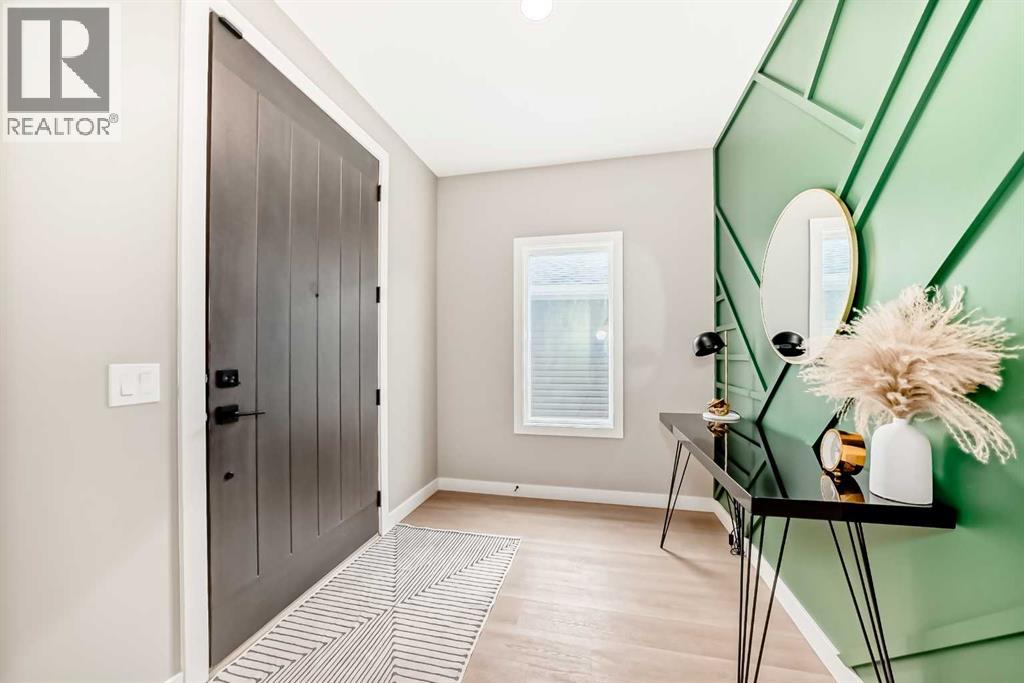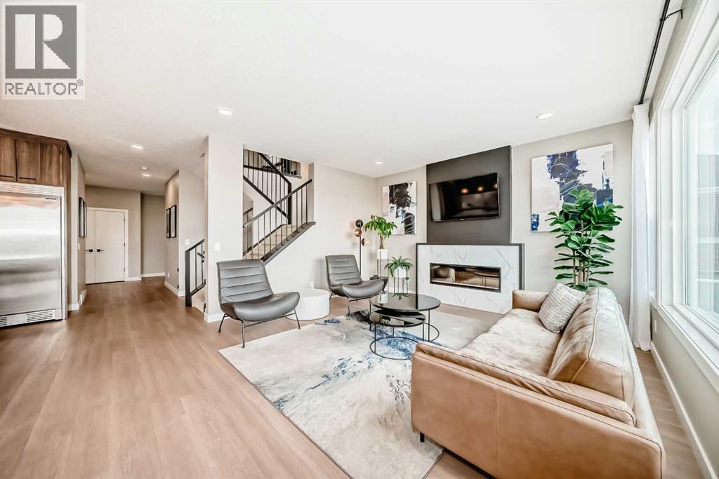 Welcome home! This 2020 Sterling Homes-built masterpiece in Okotoks delivers elevated design, thoughtful upgrades, and a highly functional layout in the quiet, sought-after, family-friendly community of Mountainview. Offering over 3,700 sq. ft. of finished living space, this 2-storey features 5 bedrooms, 4 bathrooms, and a front-attached double garage.The main floor is open, refined, and designed for modern living. A dedicated front office provides a polished work-from-home space, while the mudroom off the garage keeps everyday life organized and efficient. The main living area is bright and expansive, anchored by southwest-facing windows that capture mountain views and flood the home with natural light. The kitchen is a true centrepiece, showcasing a massive quartz island, two-tone cabinetry, premium stainless-steel appliances, and a fully equipped butler’s pantry with bar fridge, additional storage, and prep space. The dining and living areas flow seamlessly together, highlighted by a sleek feature fireplace and extending out to a cedar deck with glass railings—perfect for effortless indoor-outdoor entertaining.Upstairs, vaulted ceilings elevate both the central bonus room and primary suite, creating volume and an enhanced sense of space. The primary retreat is a private sanctuary with Scandinavian-inspired design and unobstructed views of greenspace and mountains. The spa-calibre ensuite features heated tile floors, steam shower with bench and niche, freestanding soaker tub, and a large walk-in closet with custom California Closets built-ins and integrated lighting. Three additional bedrooms are generously sized, finished with custom wainscoting and designer details, and share a well-appointed Jack & Jill bathroom with dual vanities. A dedicated upper laundry room with built-in shelving and folding counter adds everyday convenience.The fully finished basement is designed for both lifestyle and flexibility, offering 9’ ceilings, a spacious rec area, and a cu stom-built kids’ zone complete with climbing wall, castle fort, slide, ball pit, and swing—an exceptional indoor play experience. A fifth bedroom—currently used as a home gym — adds versatility, along with a 2-piece bathroom and rough-in for a future wet bar.Additional features include dual-zone heating, HRV system, and air conditioning for year-round comfort and efficiency.Outside, the home backs directly onto natural green space and walking paths, offering privacy, open views, and a strong connection to nature. Located in a thoughtfully planned community with above-average spacing between homes, this property blends modern design, functional luxury, and an exceptional setting for elevated family living. Don't miss your opportunity to build great memories. Call today for your private showing. (id:63190)