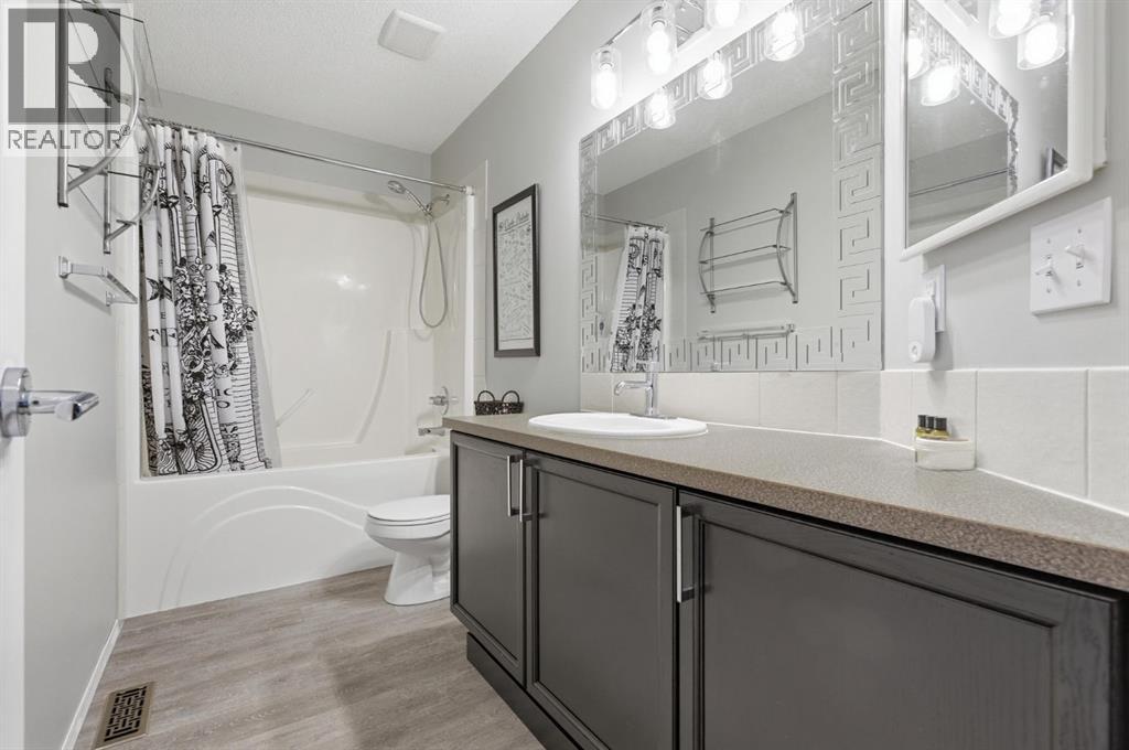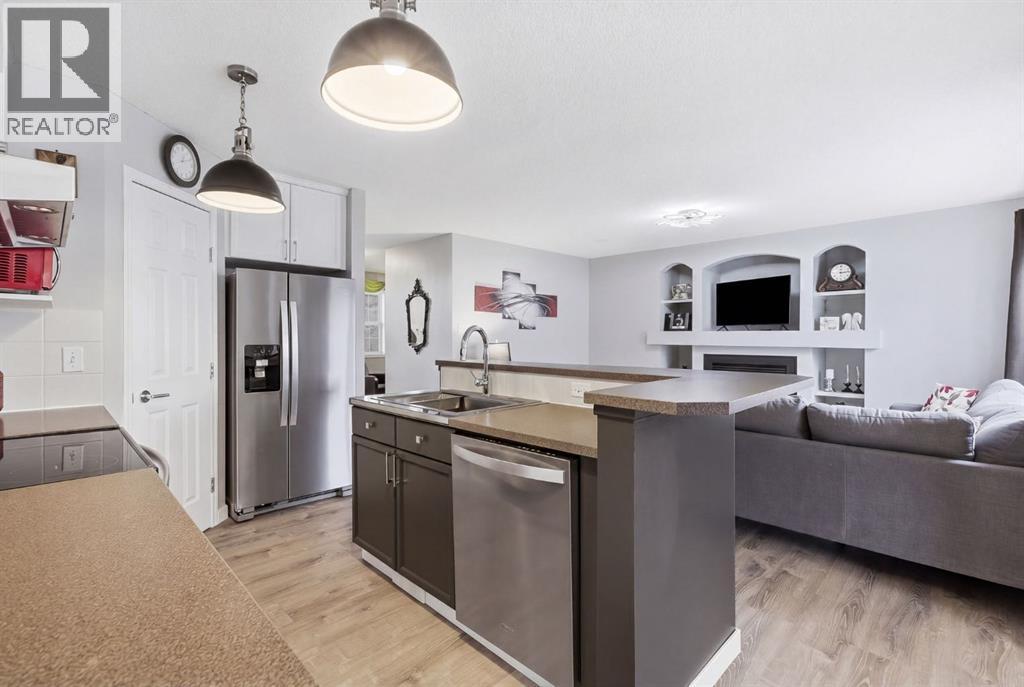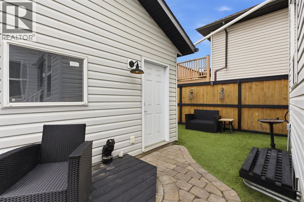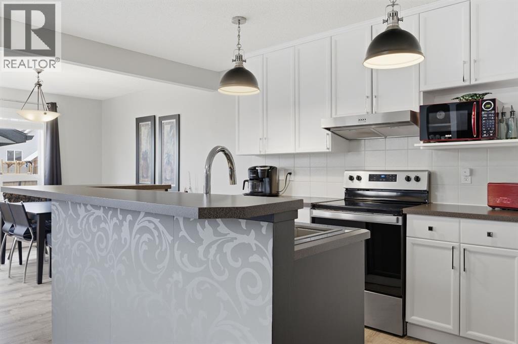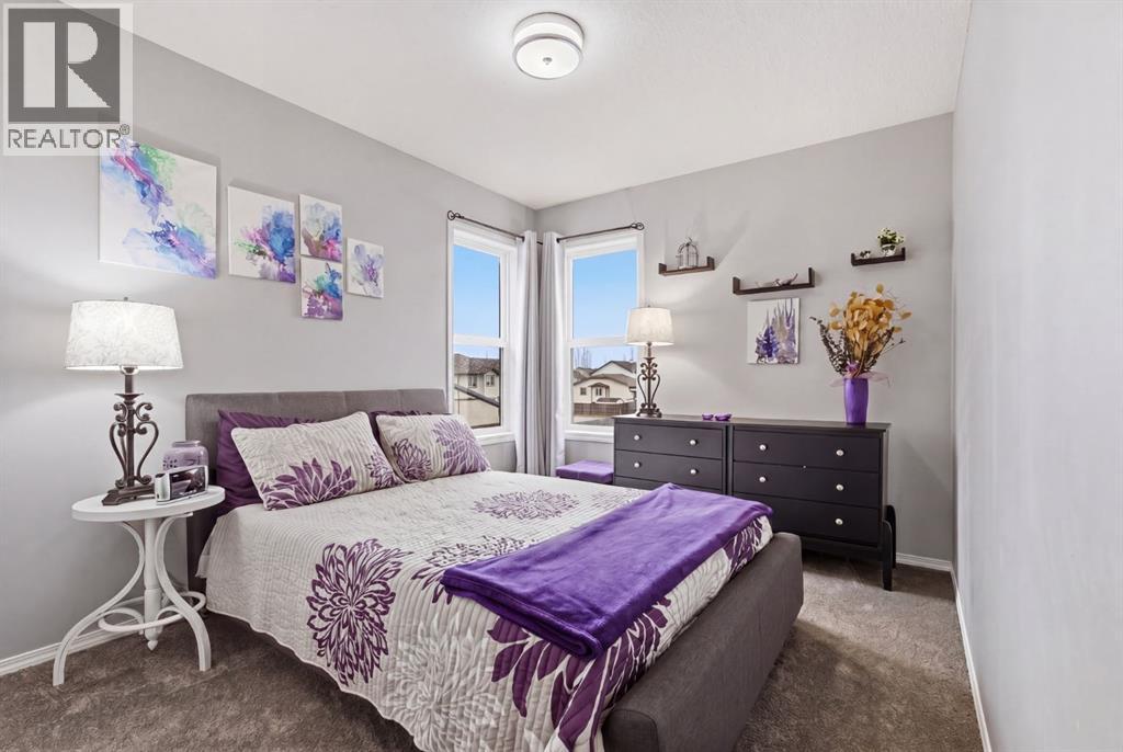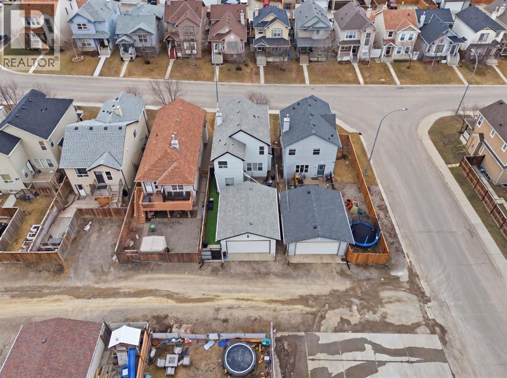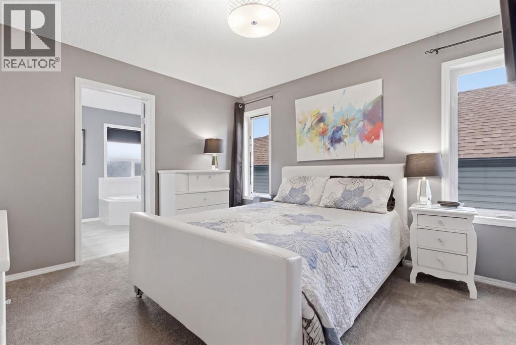 Live in the family friendly community of Cimarron. This cleverly laid out home is situated on a quiet street. As you approach you will appreciate the attractive curb appeal and inviting front porch. Throughout the home, pride of ownership is clear, with plenty of updates such as new vinyl plank flooring, new carpet, a new front door, stylish light fixtures, and an elegant railing. The kitchen is a focal point, boasting cabinets that reach to the ceiling, a tasteful tile backsplash, stainless-steel appliances, and a corner pantry for added storage. The large island seamlessly connects to the expansive living room, which features a gas fireplace with custom built in detail. Adjacent to the kitchen, the dining room is filled with natural light from numerous windows and provides direct access to your private backyard. This low maintenance yard has a large patio, artificial grass, a new fence and a double detached garage. The main floor is complete with a powder room tucked away as well as a front den, perfect for a home office, additional living room or kids’ playroom. Upstairs, you’ll find two generously sized bedrooms, a full 4-piece bathroom, and an expansive primary retreat. The primary suite is a true sanctuary, offering a large walk-in closet and a private ensuite with a luxurious jetted corner tub, separate shower and expansive vanity. The lower level is framed and prepped for easy future development. This home is ideally located within walking distance to schools, parks, pathways, shopping, and professional services. Schedule your private showing or view the virtual tour today. (id:63190)