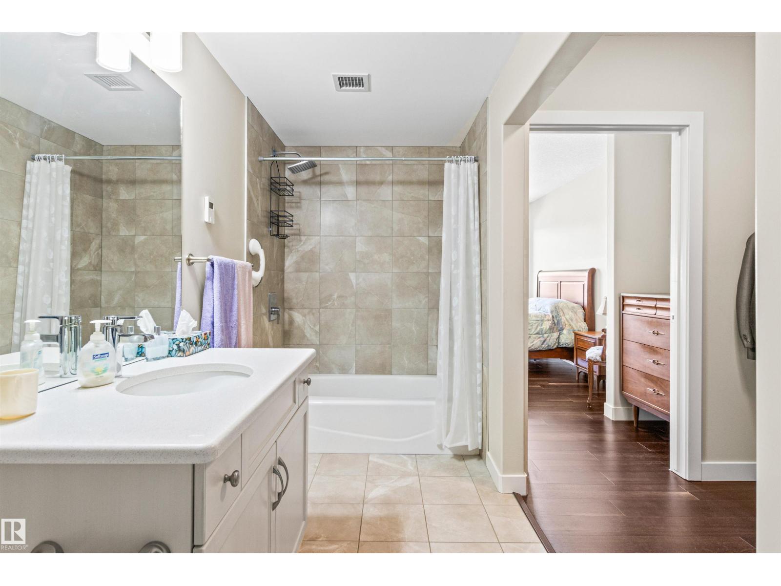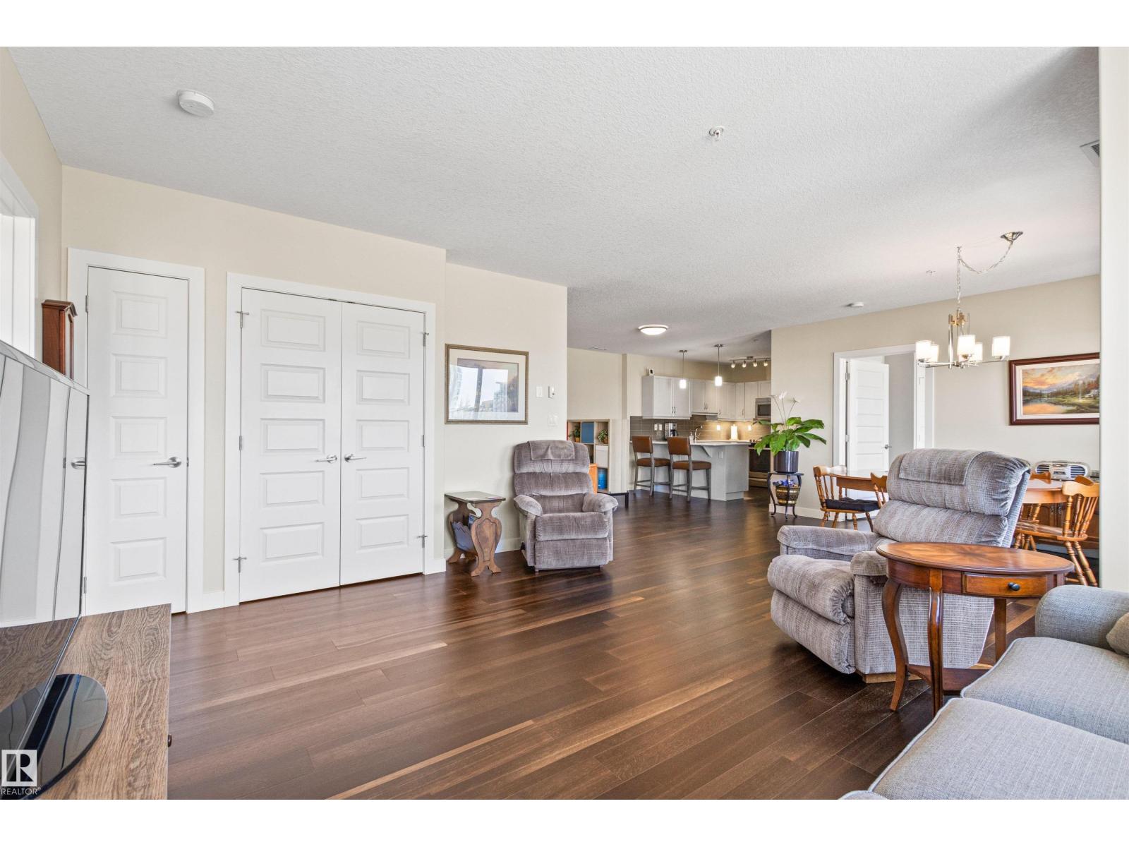 Here's the one you've been waiting for! This 2 Bedroom, 2 full Bath unit comes with bonus after bonus - 2 balconies; 2 Titled Parking stalls (1 oversized undergound - long enough for a full size truck & one outdoor) plus a titled storage room. This unit is one of only 2 in the building with this floorplan - large open concept living room/dining room, 2 Bedrooms , 2 full bathrooms offering a spacious ensuite with tub and a guest bathroom off the main living space that has a separate walk-in shower. Modern colour palette & finishes throughout including dark engineered wood flooring, quartz countertops, glass tile backsplash, under-cabinet lighting, stainless steel appliances, A/C & even MOTORIZED WINDOW COVERINGS! There are many added features to living in this community - social activities in the Mosiac Cove lounge (games, movies, exercise class, exercise room, car wash & workshop. Residents also have access to optional onsite HomeCare & Heritage Market Grill Restaurant. (id:63190)