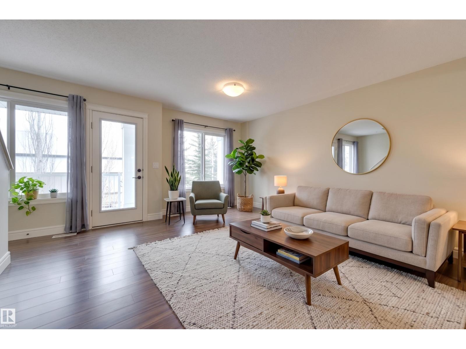 Welcome to this beautifully maintained, completely turnkey two-bedroom townhouse. The entry level features a double attached garage and a functional mudroom or office area, offering both convenience and storage. Upstairs, the bright open-concept living space is flooded with natural light from oversized windows, highlighted by hardwood floors throughout, and offers direct access to a private balcony—perfect for relaxing. The upgraded kitchen is complete with stainless steel appliances, granite countertops, and ample storage, seamlessly flowing into the living and dining areas. A convenient powder room completes this level. The upper floor features a spacious primary suite with excellent closet space and a well-appointed ensuite, along with a second generously sized bedroom and a full bathroom, making this home perfect for comfortable, modern living. AIR CONDITIONING INCLUDED! Some photos are virtually staged. (id:63190)
