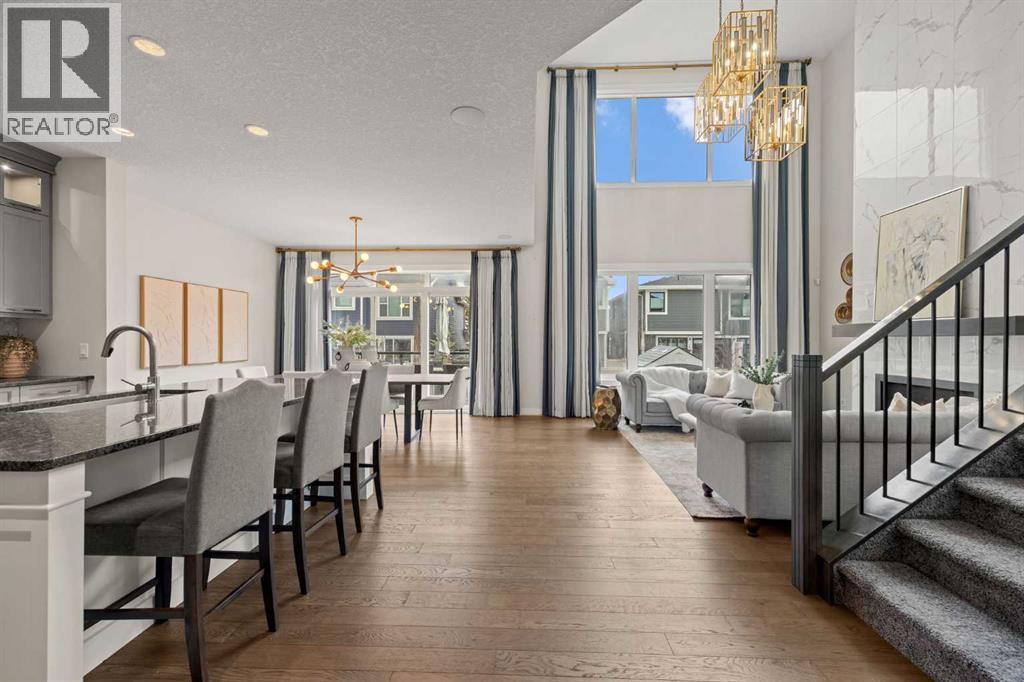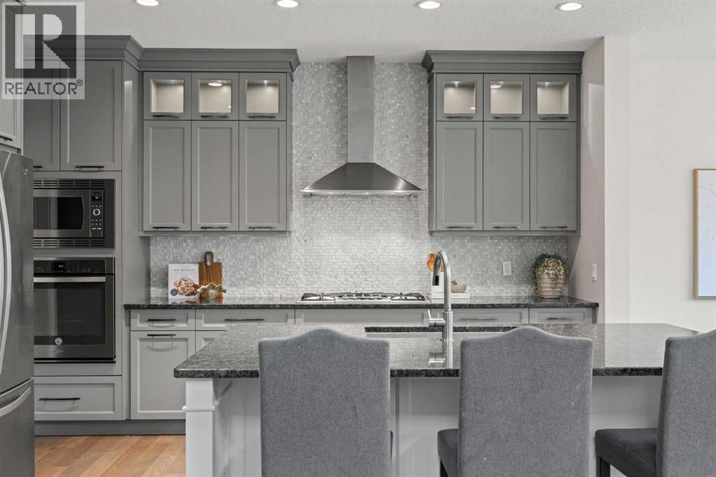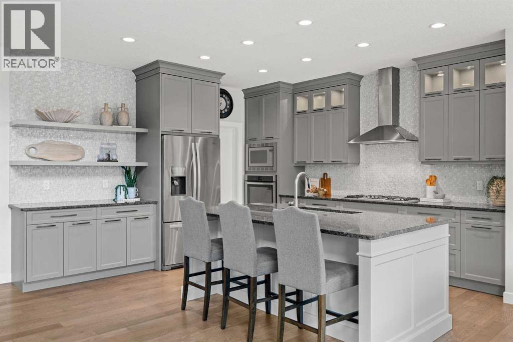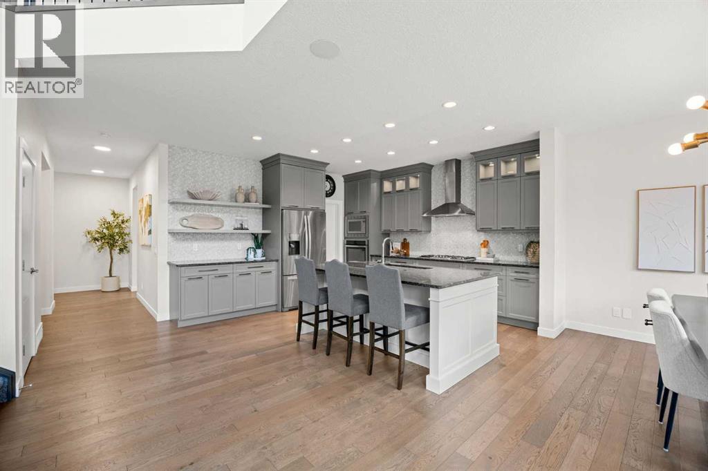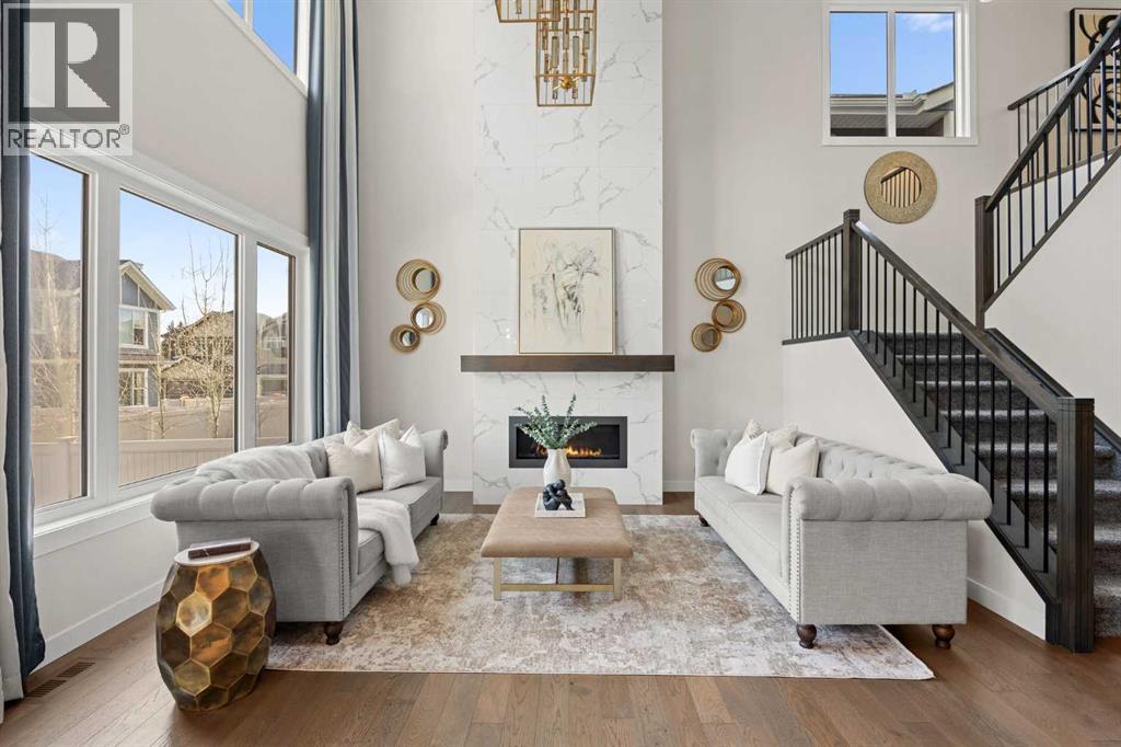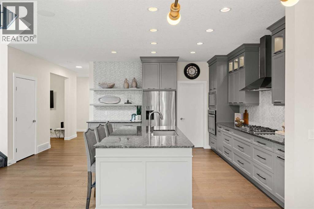 STEPS TO THE PARK | SOUTH BACKYARD | FULLY UPGRADED | VAULTED CEILING Open House Saturday April 18, 2:30-4:30pm. This is an exceptional custom-built Albi Home where every element comes together perfectly. With over 3,600 sq ft of living space and more than $100k in upgrades, the Savona model offers a stunning 18 ft vaulted ceiling, expansive kitchen, main floor office/flex space and an inviting upstairs bonus room. Ideally situated on a quiet street, you are just steps to a park as well as a playground with a skating rink and a fire pit in the winter time. The whole family will enjoy the year-round fun right outside your door. Walking distance to St. Joan of Arc and close to other top-rated schools including West Springs, West Ridge, CFIS, Webber, Rundle and Calgary Academy. A spacious front foyer greets you and leads to the living room that makes a breathtaking impression. Soaring vaulted ceilings and sunny south exposure fill the space with natural light, creating an uplifting and airy space. The kitchen has been beautifully upgraded with built-in appliances - Bosch gas cooktop and dishwasher and a 600 cfm hoodfan. The kitchen shines with marble mosaic tiles, natural stone counters, glass upper cabinets and a Blanco silgranit sink. Your family will appreciate the walk-through pantry connecting seamlessly to the mudroom. Upstairs, a well-sized bonus room provides the perfect space for relaxing or play. The primary suite is a true retreat with heated ensuite floors, a tiled shower, soaker tub, dual vanities and a walk-in closet. The two additional upper bedrooms are in their own wing and spacious with walk-in closets and close by to a 5-piece main bathroom with dual vanities and a separated shower area. A professionally finished basement is ready to enjoy with 9 ft ceilings, a built-in bar, ideal open rec space, a 4th bedroom and full bathroom. The home is enhanced with two furnaces for comfort, air conditioning, a backyard shed and an oversiz ed garage with a gas line. Summer months just ahead will be savoured with the sunny south exposure, composite deck and parks just steps away. West Springs is a family friendly community with a wide array of amenities, dining options and grocery stores. Conveniently located with easy access out to the Rocky Mountains, a quick commute into Downtown and Stoney Trail nearby to get around the city. You will love where you live. (id:63190)