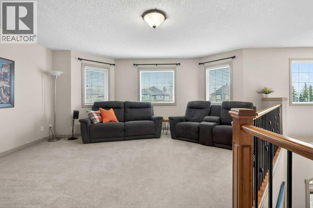 Welcome to this exceptional residence in the highly sought-after lake community of Crystal Green, offering an outstanding blend of comfort, functionality, and lifestyle. Perfectly positioned across from Crystal Ridge Golf Club and with year-round Lake Access, this home presents a rare opportunity to enjoy both scenic surroundings and resort-style amenities. From the moment you step inside, you are greeted by a bright and spacious entryway that sets the tone for the thoughtfully designed layout. The open-concept main floor has 9' ceilings and is both elegant and practical, featuring a private den with glass French doors, ideal for a home office, study, or quiet retreat. The heart of the home is the beautifully appointed kitchen, complete with a large central granite island, modern Samsung appliances, an instant hot tap at the sink, tile backsplash and a highly functional walk-through pantry that seamlessly connects to the mudroom—perfect for busy households and effortless entertaining. The inviting living room is anchored by a cozy gas fireplace and framed by large windows that flood the space with natural light while offering views of the backyard. The adjacent dining area creates the perfect setting for hosting family and friends, with easy access to the outdoor living space. Upstairs, you’ll find a generous bonus room, ideal for movie nights, a play area, or a secondary lounge space. The primary suite serves as a relaxing retreat, featuring a walk-in closet and a luxurious 5-piece ensuite with a jetted soaker tub, dual vanities, and ample space to unwind. Two additional well-sized kids' bedrooms are a good size and close to the 4pc bathroom. Step outside to your private west-facing backyard oasis, where you can enjoy long summer evenings on the expansive deck. The deck is thoughtfully designed with a gas line for your BBQ, privacy walls, privacy shades, a pergola, and an outdoor fan for added comfort. This outdoor space is perfect for relaxing, entertaining, or si mply taking in the peaceful surroundings. The unfinished basement offers endless potential, with 3 oversized windows allowing you to customize the space to suit your lifestyle—whether that be a home gym, recreation room, or additional living quarters. The home has been well-maintained and upgraded with A/C, central vac, and new hot water tank. Located in one of the area’s most desirable communities, residents of Crystal Green enjoy exclusive lake privileges, walking paths, parks, and proximity to golf, schools, and amenities. Don’t miss this incredible opportunity to own in Crystal Green. Book your showing and come on Buy! (id:63190)