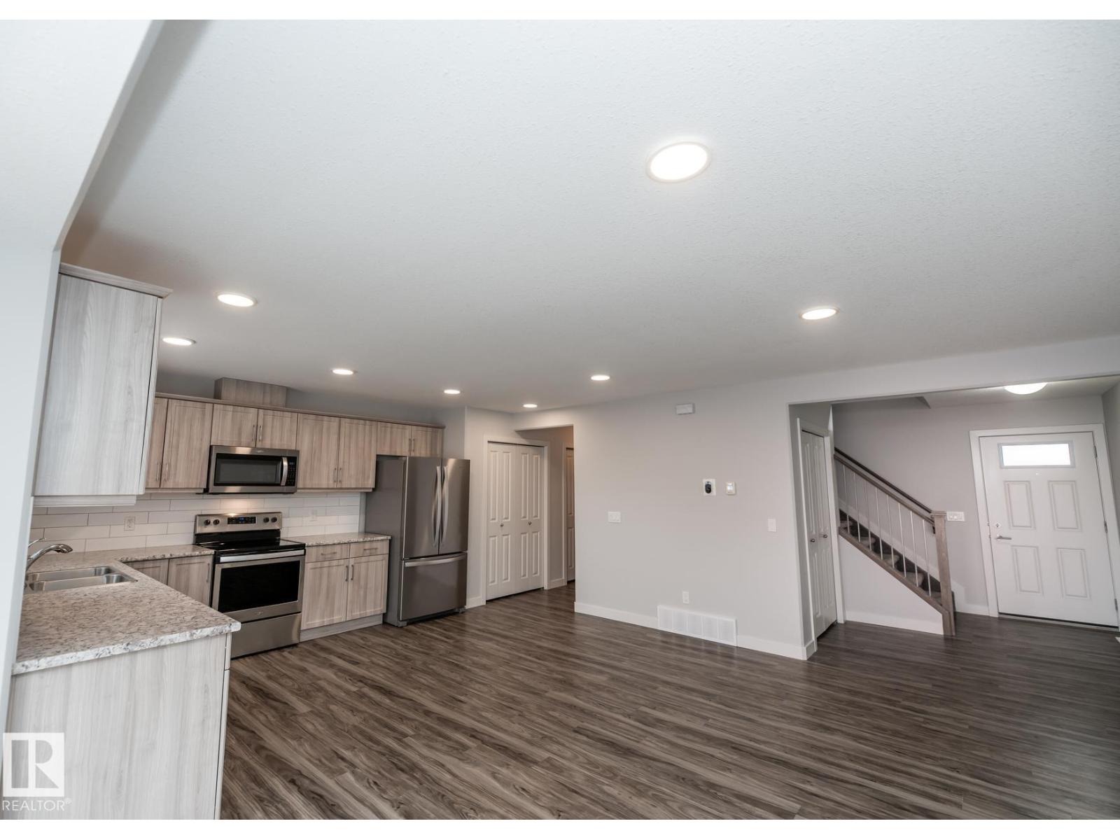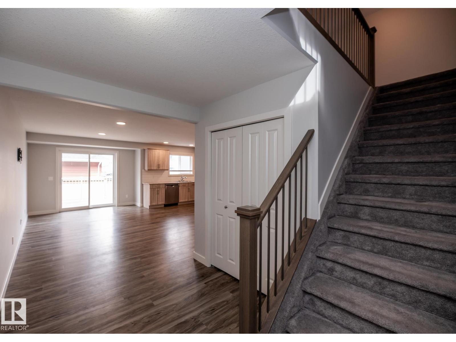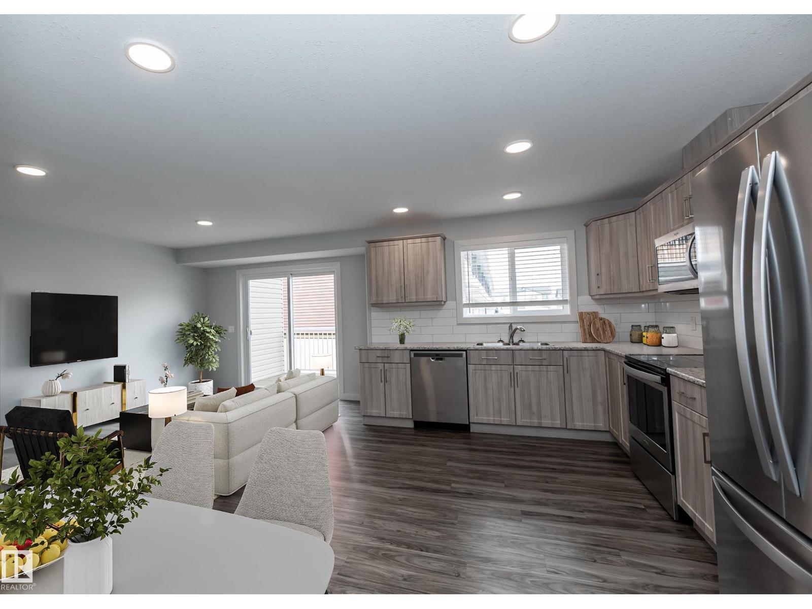 Welcome to this 3 bedroom, double attached garage + 2.5 bathroom townhouse on the west end of Leduc in Deer Valley, offered at $319,900 with low condo fees of $267.25 and includes A/C. The open concept main floor features a spacious living room, bright dining area, a kitchen complete with stainless steel appliances. A convenient 2-piece bathroom completes the main level. Upstairs, the primary bedroom offers a walk-in closet and a 4-piece ensuite. Two additional bedrooms, a full 4-piece bathroom, and an upper-level laundry room plus a flex space that provide functionality for families or investors alike. With thoughtful design, great location, and excellent value, this home is perfect for first-time buyers, growing families, or those looking to downsize without compromise. Don’t miss this opportunity! Ideally located near shopping and amenities in Leduc Common, this home combines convenience with modern comfort. Roughed in for Central Vac. Some photos have been virtually staged. (id:63190)