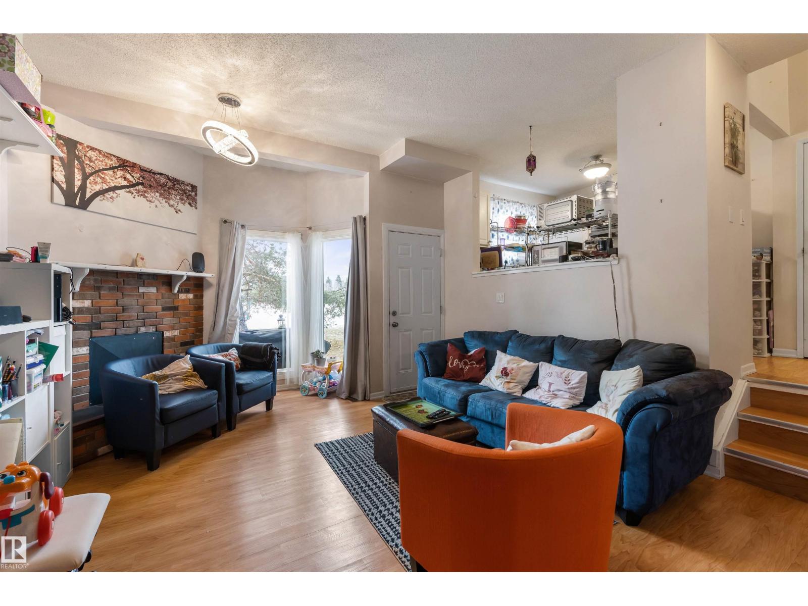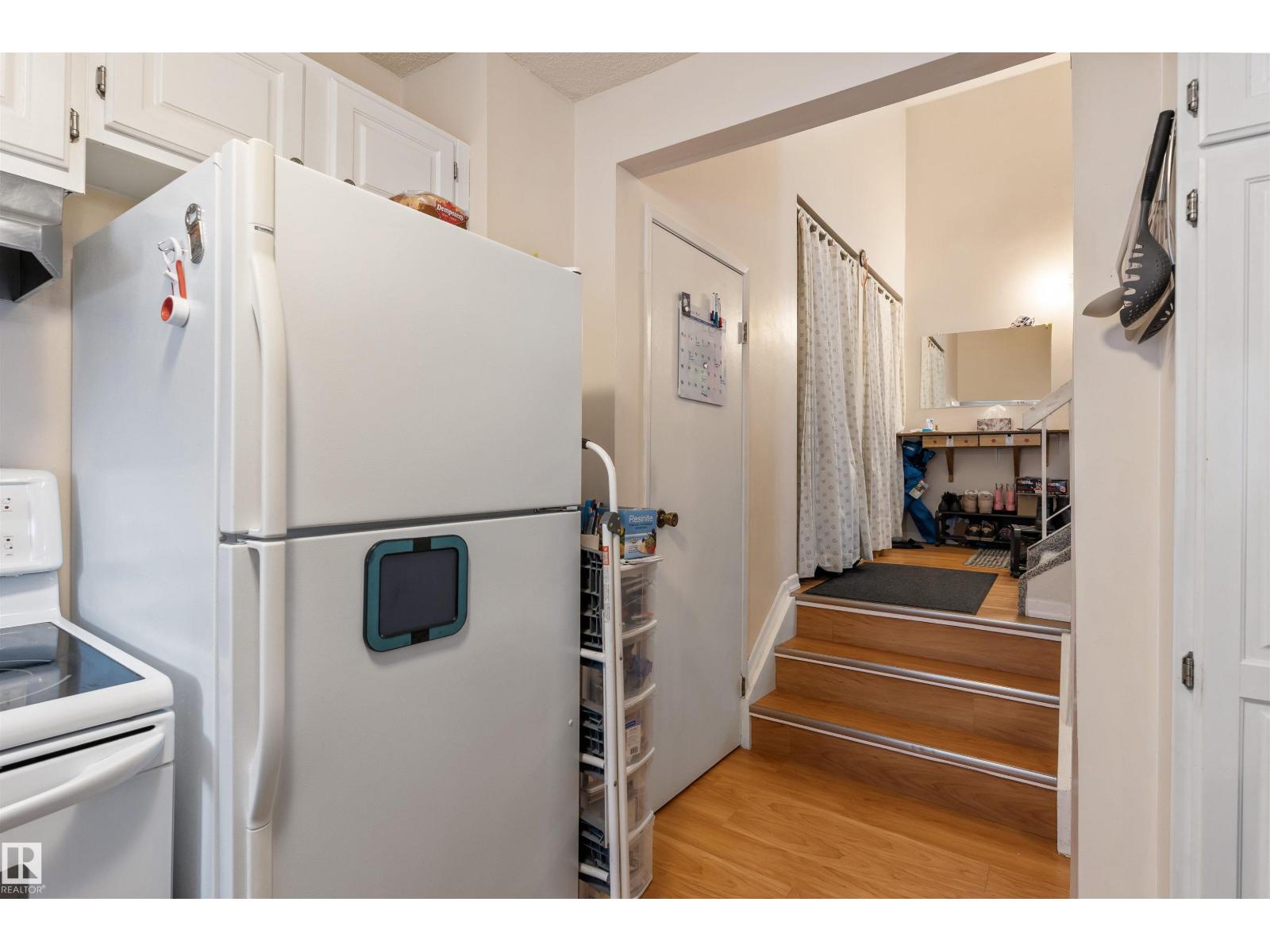 BACKING ONTO GREEN SPACE! Enjoy an end-unit feel with added privacy and fewer shared walls. This bright and functional 5-level split townhouse offers over 1,050 sq ft plus a partially finished basement, with a unique layout that creates separation and flexibility across levels. The main living area features 10-foot ceilings and large windows that fill the space with natural light, adjacent to a dining room nook. The white kitchen is functional, with a window overlooking the green space and open to the living and dining area. Upstairs, you’ll find 2 well-sized bedrooms, including a primary with walk-in closet, along with a full bath. The basement provide additional space for a family room, home office, or storage. Enjoy direct access to open green space right out your door. Located in a well-managed complex with low condo fees and major exterior updates planned and paid for, offering added peace of mind for future ownership. Close to schools, parks, shopping, and transit. (id:63190)