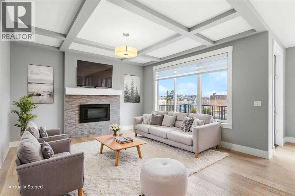*OPEN HOUSE SUNDAY APRIL 26 AT 2:00PM - 4:00PM* Welcome to a home that feels elevated from the very first step inside. Custom built by Harder Homes, this beautifully crafted two storey in Coopers Crossing offers over 3000 square feet of thoughtfully developed living space. With its distinctive exterior, sloped roof lines, and MASSIVE GARAGE, the curb appeal makes a strong first impression. Inside, the sense of space and intention continues. The main floor unfolds with a grand foyer that opens into a warm and welcoming great room, anchored by coffered ceilings and a GAS FIREPLACE that invites slow evenings and enjoyable gatherings. ENGINEERED HARDWOOD floors carry throughout, paired with 9' CEILINGS and 8' DOORS that add both height and presence. The kitchen is truly the heart of the home. Beautifully finished with ceiling height cabinetry, stainless steel appliances, and a generous center island, it offers exceptional storage and space to cook, host, & connect. The dining area sits just off the kitchen, filled with natural light and perfectly positioned for everyday meals or weekend entertaining. A dedicated MAIN FLOOR OFFICE creates a quiet place to work or study, tucked away yet still connected to the rhythm of the home. The mudroom leading to the garage is complete with built-ins and a charming barn door, keeping busy days organized. Every detail feels considered, right down to the Nest thermostat and the added AIR CONDITIONING (2022) for year round comfort. Upstairs, the layout is as functional as it is spacious. The primary suite feels like a true retreat, with room to unwind, a large WALK-IN CLOSET with custom built-ins, and a luxurious 5 piece ensuite featuring dual sinks, a deep soaker tub, & a spacious shower. Two additional bedrooms are generously sized and share a well appointed 5 piece bath with double sinks, ideal for growing families. The BONUS ROOM offers flexibility for movie nights or play space, complete with a rough in for speakers to elevate your home entertainment experience. An upgraded railing adds a refined architectural touch as you move between levels. The fully developed basement extends the living space even further, with a massive recreation and media area that easily adapts to your needs. A 4th bedroom, separate den and full 4 piece bathroom make it perfect for guests, teens, or multi generational living. Backing directly onto a school, the backyard setting offers both privacy and convenience, with no rear neighbours and quick access to green space and community pathways. Living in Coopers Crossing means being part of one of Airdrie’s most sought after neighbourhoods, known for parks, schools, and a strong sense of community. It is the kind of place where families put down roots and stay awhile. Book your private showing and experience it for yourself! *Some photos have been virtually staged* (id:63190)