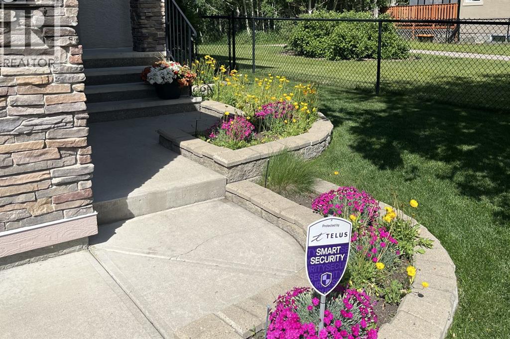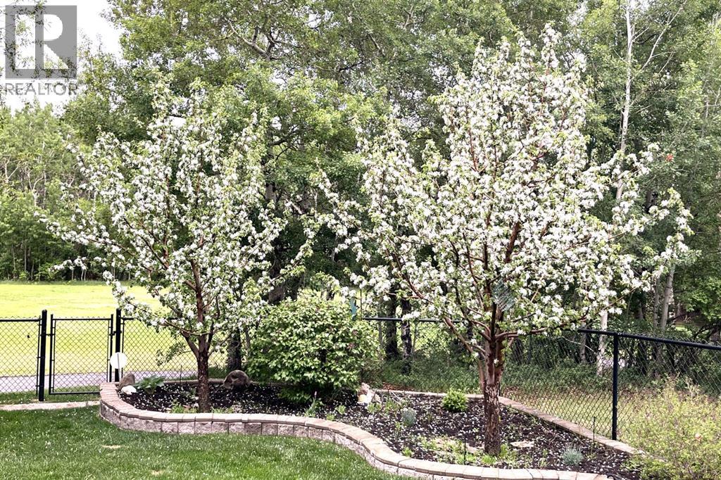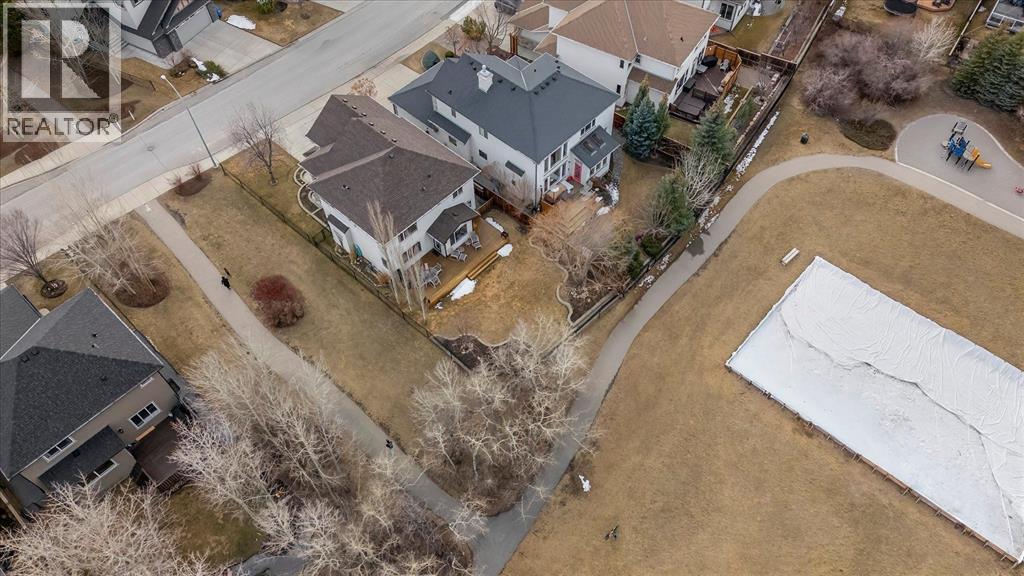 There's a rhythm to this home that reveals itself through the back windows - the kids running through the gate to the park, unhurried evening walks, and in winter, a skating rink the neighbours maintain themselves. The original owners raised their children here, and they'll tell you the greenspace wasn't an amenity. It was part of daily life. Siding and backing directly onto the park and playground, this setting is increasingly hard to find. The yard is well tended, complete with an underground irrigation system and mature apple trees that produce enough for homemade pies. Inside, the home has been thoughtfully designed and well cared for. A main floor den sits behind double French doors - a quiet workspace or flex room with windows overlooking the front yard. The kitchen features maple cabinetry, granite counters, a generous island, and a most of the appliances, including a five-burner gas range, are newer. The adjacent dining nook captures the view of the green-space, and the family room opens off the kitchen, wrapped in big windows. Hardwood flooring runs throughout the main level. Upstairs, the layout is well considered: the bonus room, anchored by a fireplace, is set apart from the bedrooms by the staircase - keeping the sound of movie nights at a comfortable distance from sleeping little ones. Three bedrooms share this floor, including a spacious primary with lovely views and an ensuite featuring dual sinks, an oval jetted tub, and a separate shower. The fully developed lower level adds a large rec and games room ready to become a theatre space, a fourth bedroom with walk-in closet, a full bathroom, and a generous storage room. Additional features include central air conditioning, a finished and heated garage, a newer hot water tank, and newer hail-proof asphalt shingles. First-time to market from the original owners, and ready for its next family. (id:63190)