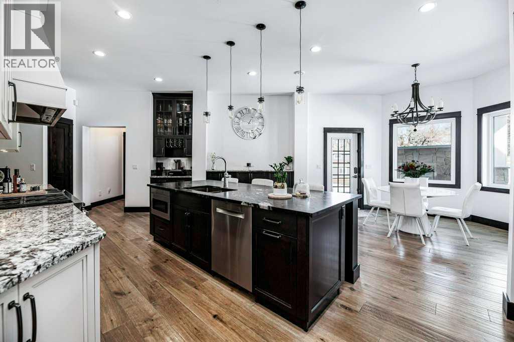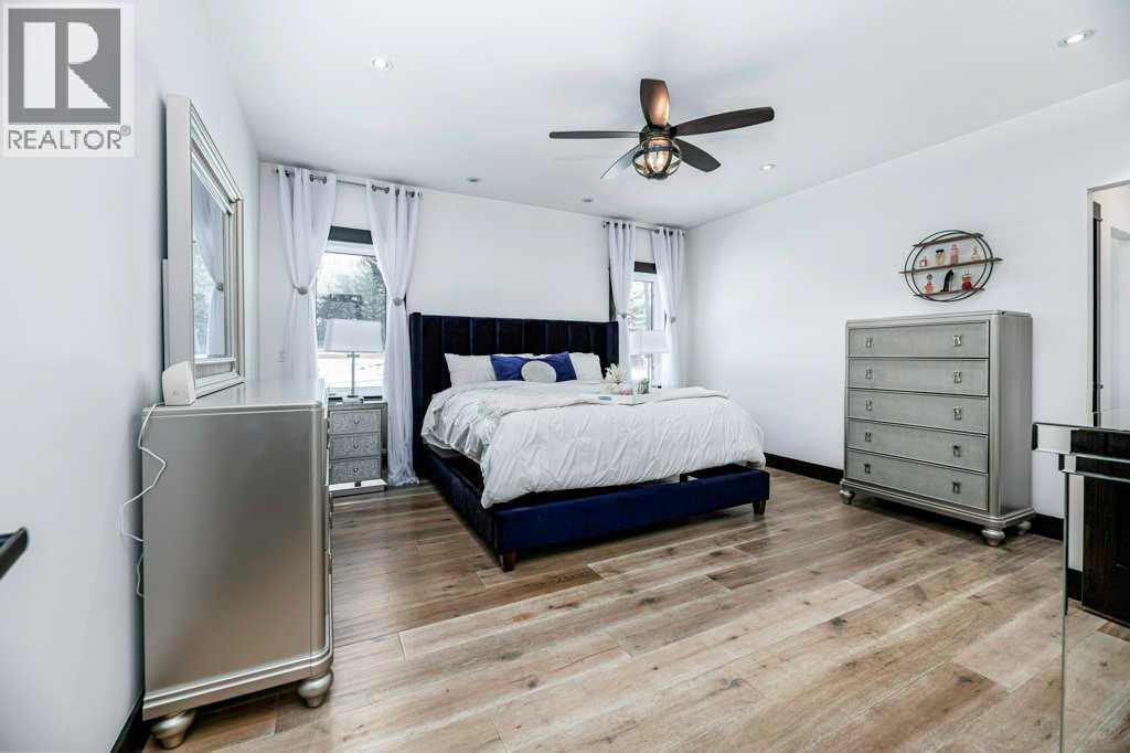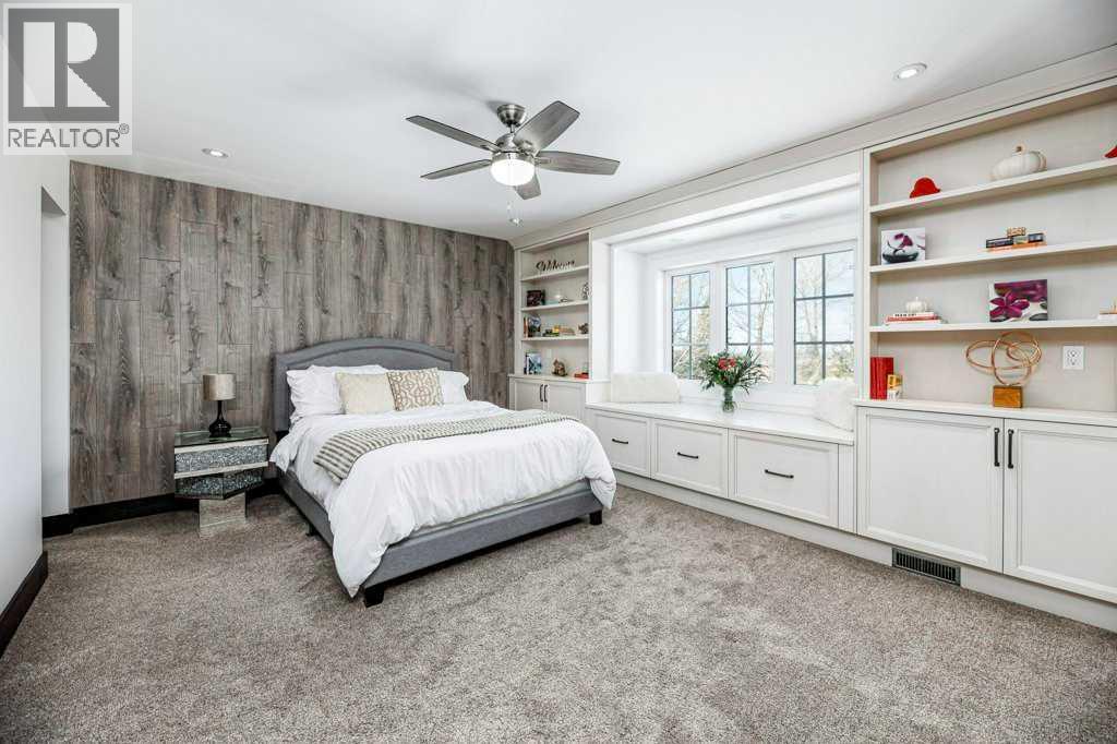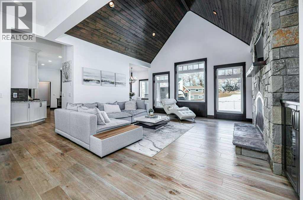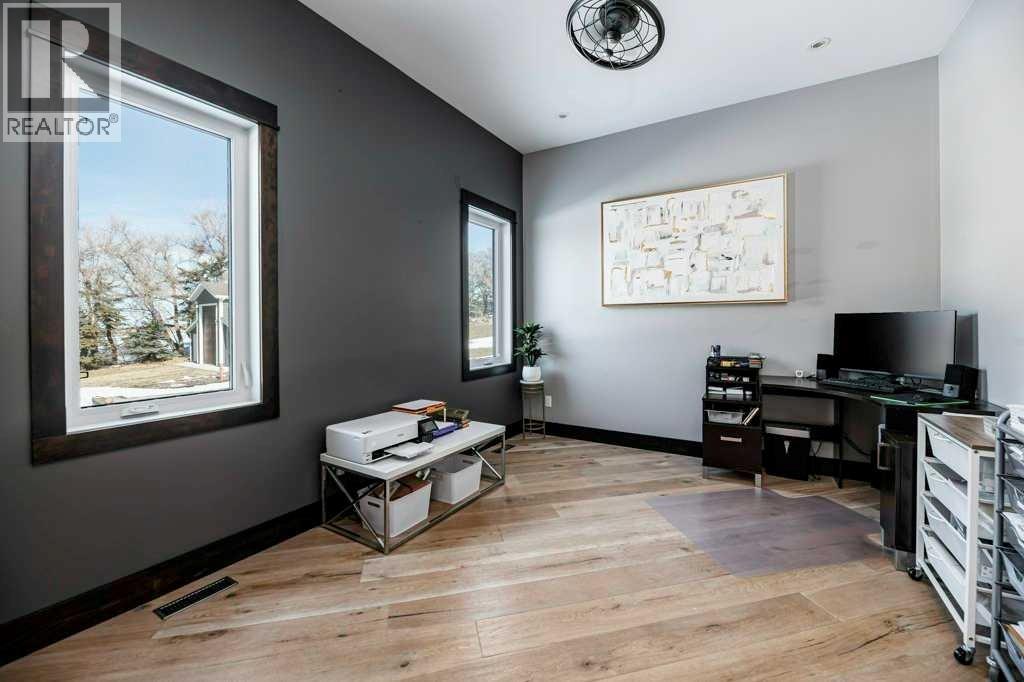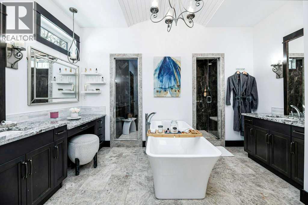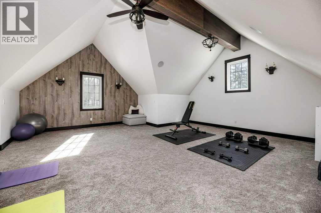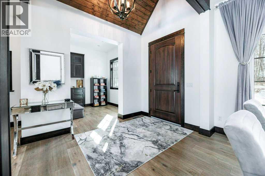 A Rare Find! Why settle for city living when you can own your own private paradise just minutes from Red Deer? This luxurious 2.45-acre estate offers unparalleled privacy, elegance, and convenience. Enter through a stunning high-end entrance gate, equipped with cameras and an integrated security system for added peace of mind. A serene, tree-lined driveway leads you to this custom-built home, showcasing the finest materials and craftsmanship throughout.With 3,536 sq. ft. above grade, the home features multiple vaulted ceilings with knotty pine planks and maple-finished beams. The spacious living room boasts wide-plank white oak hardwood flooring, vaulted ceilings, a floor-to-ceiling stone-front gas fireplace with built-ins on either side, and large windows offering breathtaking views of the expansive acreage. The adjoining two-tiered back deck includes an additional gas fireplace, perfect for outdoor relaxation and entertaining. The home has been freshly painted throughout and is equipped with central air conditioning.The chef’s kitchen is a dream, complete with floor-to-ceiling soft-close white cream cabinetry, granite countertops, a full tile backsplash, pot and pan drawers, under-cabinet lighting, high-end Monogram appliances, a six-burner gas range, a statement range hood, and a commercial-sized refrigerator. The massive island features leathered granite countertops and a lowered eating bar. The cozy dining area opens to the beautiful back deck, making it ideal for entertaining. A huge walk-in pantry adds even more convenience.The spacious primary bedroom is a true retreat, featuring a spa-like ensuite with a soaker tub, a massive two-person steam shower, dual walk-in closets, and separate vanities.The main floor is completed by an additional bedroom, a 3-piece bathroom, a private office, a laundry room, and a large mudroom. Upstairs, you’ll find a second bedroom with breathtaking views, a built-in window seat, and a 4-piece ensuite, along with an additional office. The massive family/games room features vaulted ceilings, a wet bar with a microwave and fridge, and a TV with 3D capability for ultimate entertainment. A second laundry room adds convenience to multi-level living. Car enthusiasts and hobbyists will appreciate the oversized attached triple garage (40' x 32'), complete with in-floor heating, hot and cold water taps, and ample workspace. The beautifully landscaped yard includes an upgraded driveway, an insulated shed (currently a cat/dog house), raised garden beds, two RV hookups, and an impressive 30' x 62' shop. The shop features a finished office, a 14-foot overhead door, and architectural details that complement the home. This property has seen approximately $250,000 in recent upgrades over the past few years. If additional space is desired, the sellers have blueprints for both the house/shop, & plans for more bedrooms. The property is minutes away from golf, skiing & city amenities. This beauty won't last long! (id:63190)