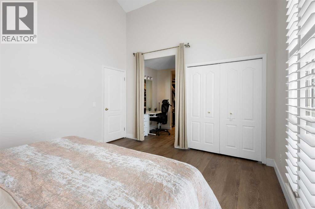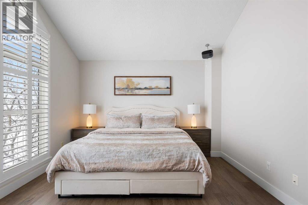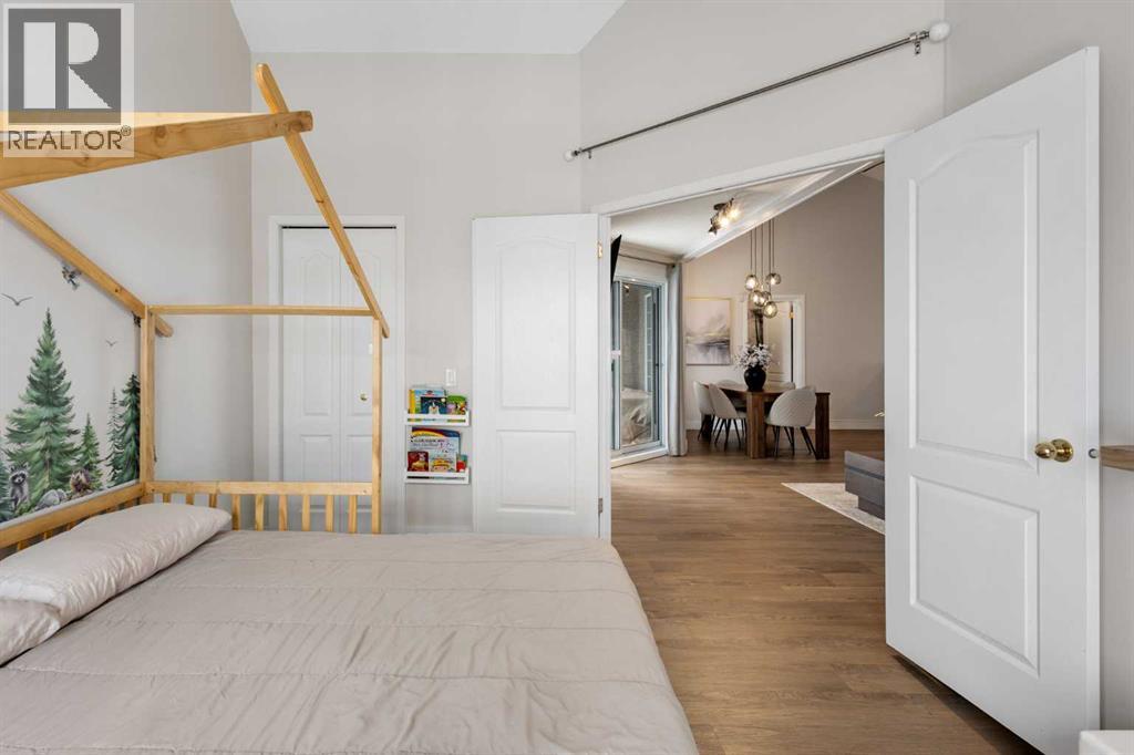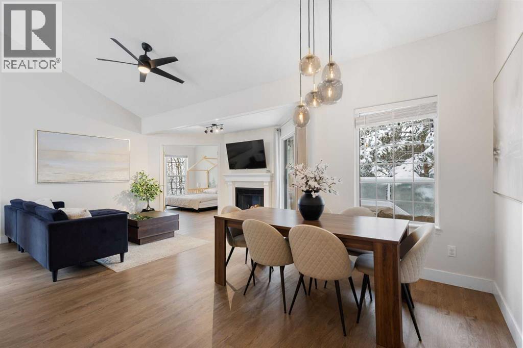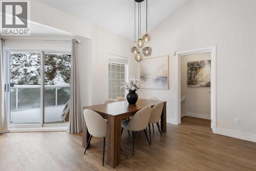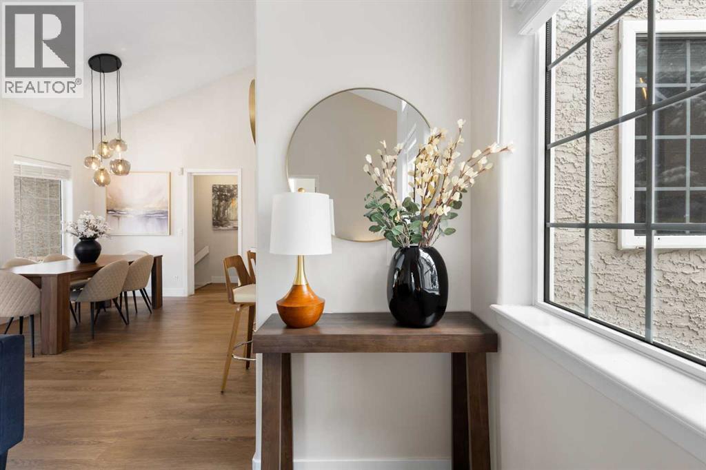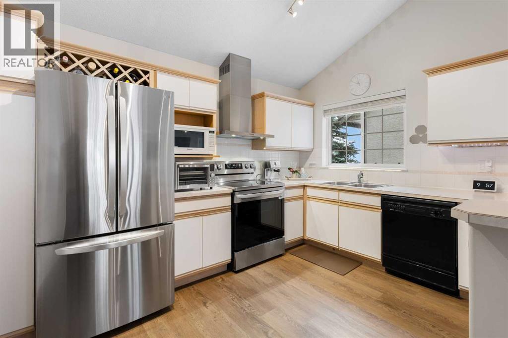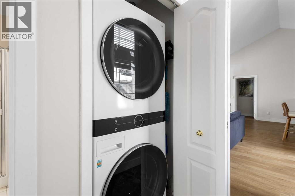 Wake up in Cactus Ridge and the first thing you notice is the light. Vaulted ceilings and oversized windows pull sun straight through the main floor — the kind of quiet, bright space that makes a Saturday morning coffee last twice as long.This upper-level stacked townhouse in Signal Hill overlooks Optimistic Park instead of a neighbour's window. That view is one of the reasons the current owners bought it. A wood-burning fireplace anchors the living room, and the whole space opens to a private balcony with a 25 sq ft storage room tucked off to the side.1,221 sq ft, two bedrooms, two full bathrooms, and a floor plan that separates the primary from the second bed — the setup works for a dedicated home office, a guest room, or in-laws who stay a weekend. The primary has a 4-piece ensuite, walk-in closet, and a replaced bedroom window. The second bedroom sits across the plan with its own 3-piece bath.Underfloor heating runs through the entire home and into the attached garage. Warm floors from November through April, a low-dust, low-allergen environment, and a car you don't have to scrape at 7 a.m. in February.Recent updates from the sellers: full kitchen appliance package, washer and dryer, keypad front entry, security cameras at the door, balcony, and garage, a camera doorbell, new faucets and showerheads in both baths, LED stair lighting, digital thermostat, and new blinds on every window. Both bedroom windows have also been replaced.The home is pet-free and smoke-free — something allergy-sensitive buyers notice the moment they walk in.Outside the door: Sunterra Market, Starbucks, West Market Square, medical, dental, pharmacies, and the Bow River pathways are all inside a five-minute walk. Signal Hill and West Hills Shopping Centres are seven minutes by car. The complex has a private clubhouse residents actually use for gatherings, plus assigned parking directly beside the unit and ample visitor stalls.Move-in ready, with all furniture and décor available for separate purchase. Book a private showing or catch the open house. (id:63190)