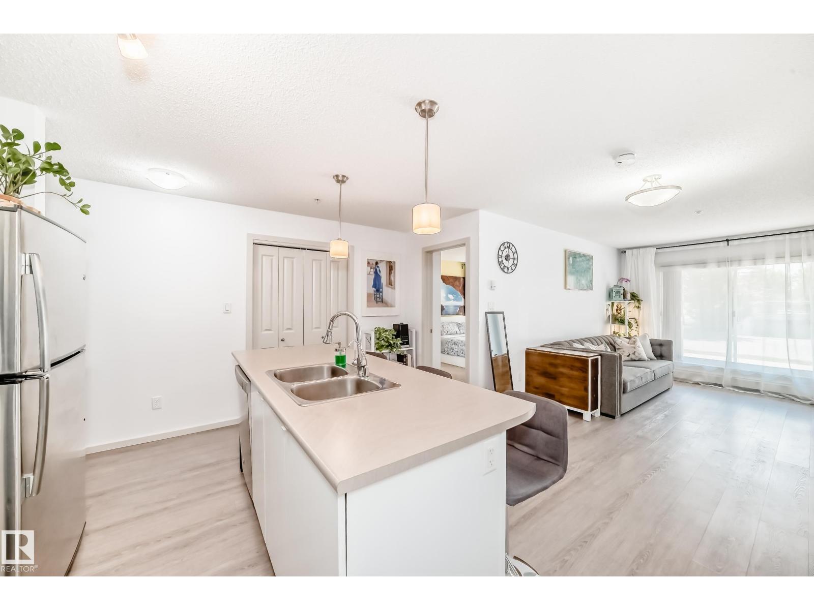 Gorgeous CORNER unit Nestled in the vibrant community of Windermere, on MAIN FLOOR with 1 TITLED PARKING STALL. Total of 830sqf . Enjoy one of the best locations in the complex with this absolutely immaculate ready to move in condo unit. Spacious & open floor plan kitchen, huge island with space for breakfast bar and a big pantry for storage and Large living room . 2 Bedrooms on opposite sides of the unit. Huge master bedroom features a huge walk-through closet and a 4-piece ensuite. Second bedroom and another full bathroom will satisfy all NEEDS! The unit features a private balcony as well as convenient in-suite laundry. Just steps from your door, you’ll find a variety of nearby amenities, plus quick access to the scenic North Saskatchewan River valley and Terwillegar Dog Park, ideal for walking and outdoor activities. Commuting is a breeze with Anthony Henday Drive. (id:63190)
