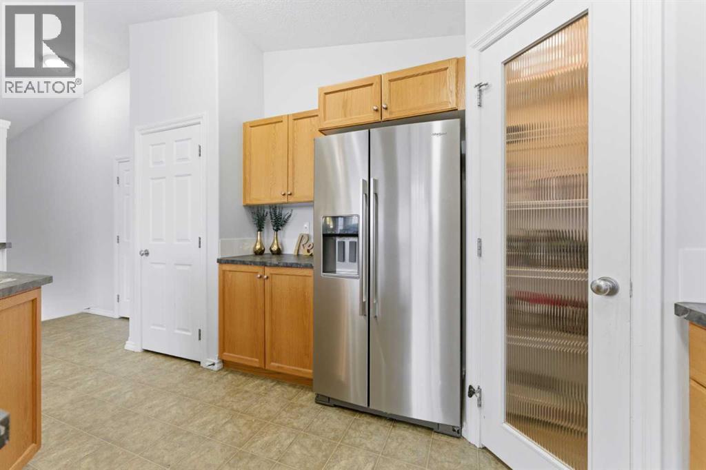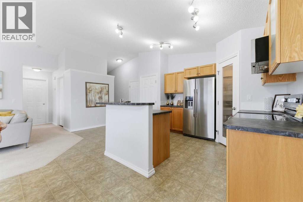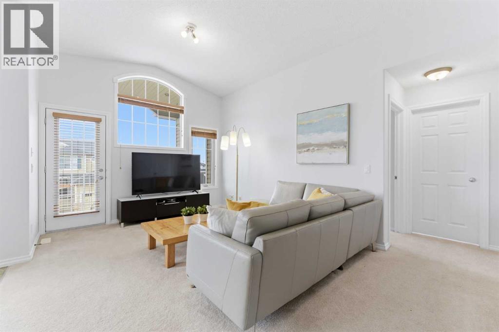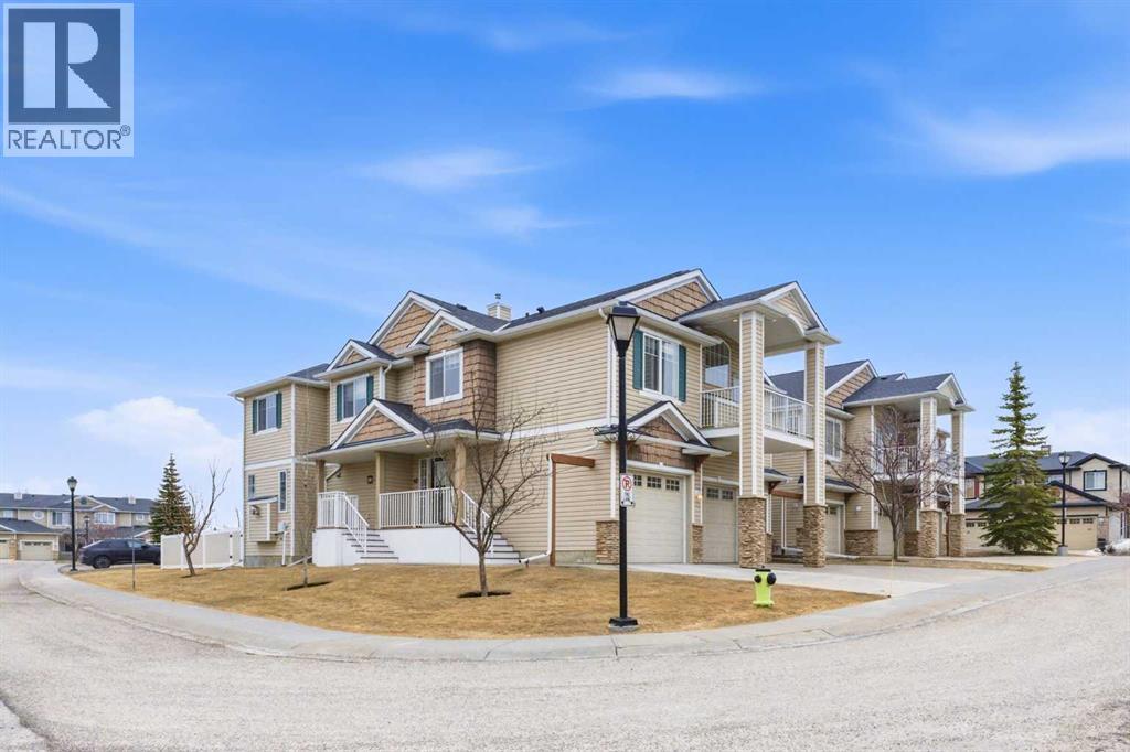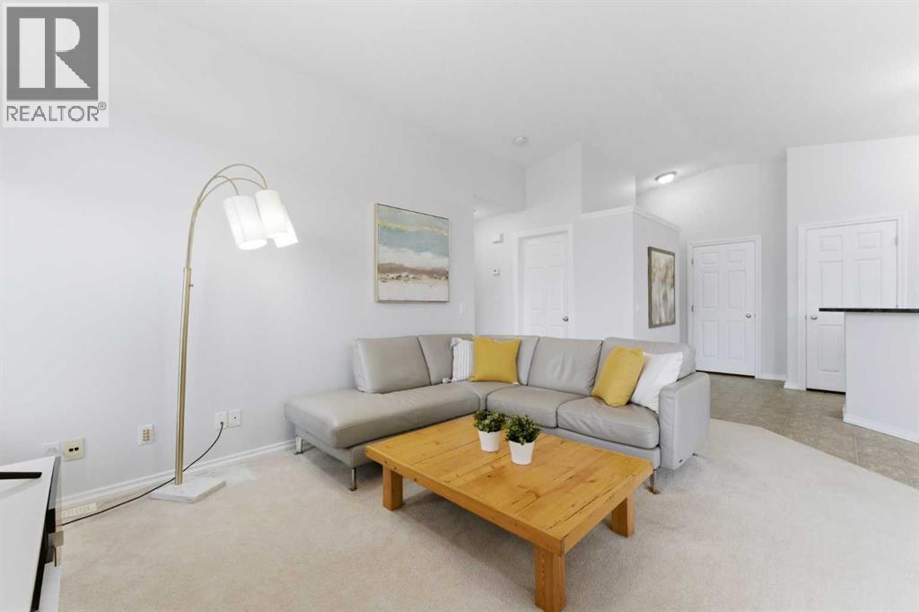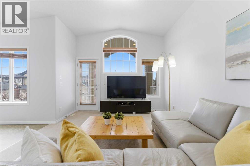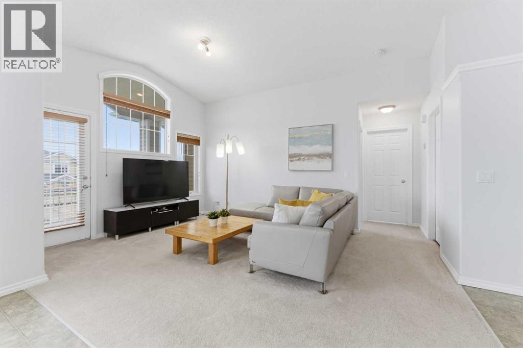 Welcome to this stunning bungalow-style townhouse in the highly sought-after community of Royal Oak, ideally located close to schools, shopping, transit, and all amenities. This bright and inviting home features an open-concept floor plan with vaulted ceilings and large windows throughout, creating an airy, elevated living space with no one above you. The spacious living and dining area leads to a private, generously sized patio with sunny south and southwest exposure. The well-appointed kitchen offers ample cabinetry, a center island, newer Whirlpool appliances (just 2 years old), a corner pantry, plus an additional second pantry for exceptional storage. This home includes: 2 bedrooms, including a king-sized primary retreat, second bedroom with walk-in closet, full bathroom, in-suite laundry, and rough in for fireplace. Additional features: Corner unit with extra windows for abundant natural light, single attached garage, plenty of visitor parking, low condo fees and common greenspace directly behind the unit. Enjoy the convenience of walking distance to schools, shopping, and the new YMCA, with quick access to transit including a direct bus to the Tuscany LRT station. Just 15 minutes to downtown and easy access west to the mountains. This is elevated living at its finest—don’t miss this exceptional opportunity. (id:63190)