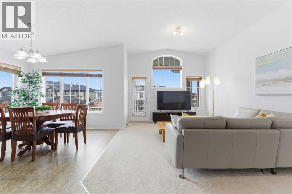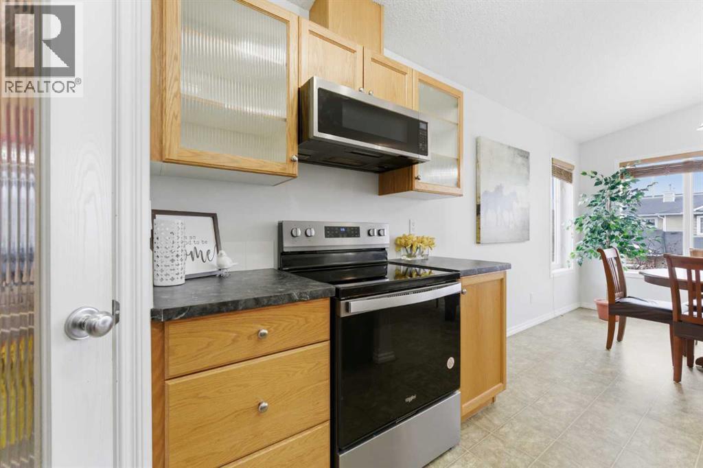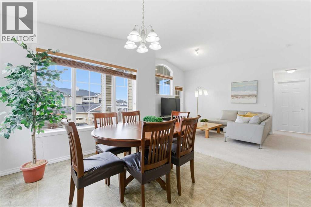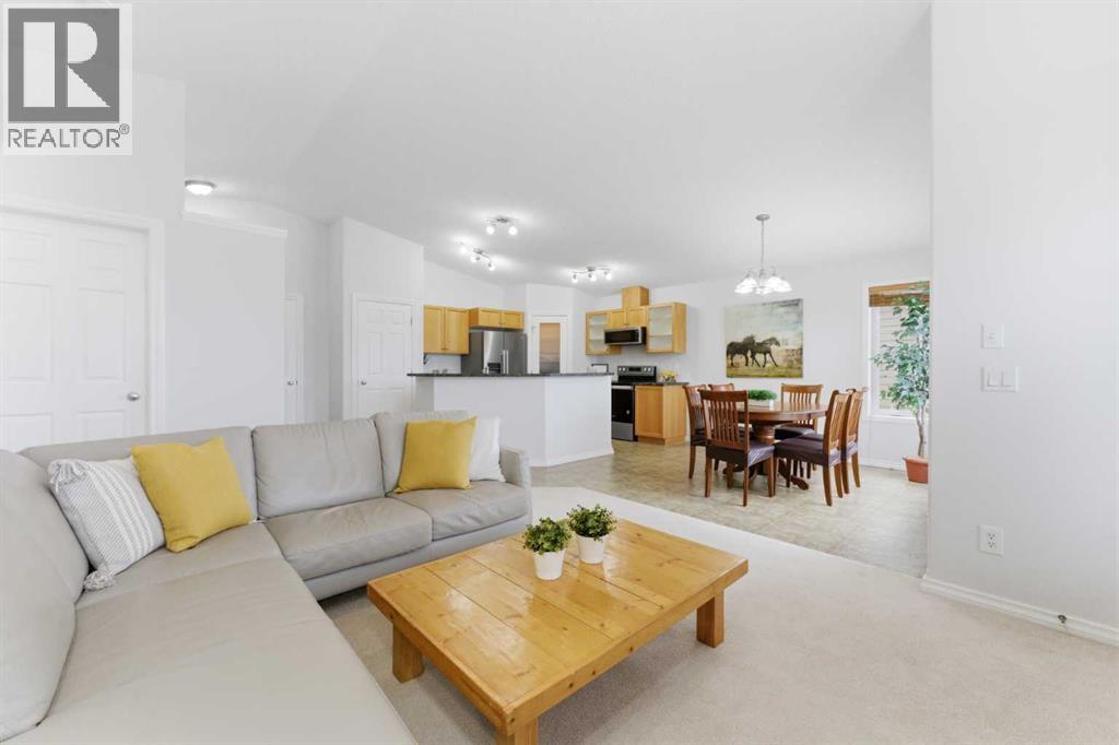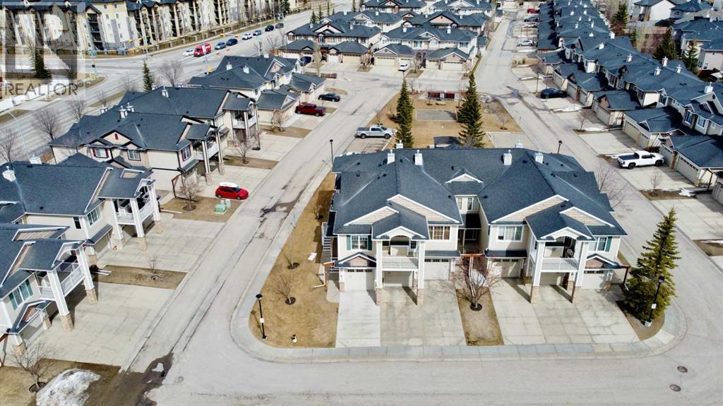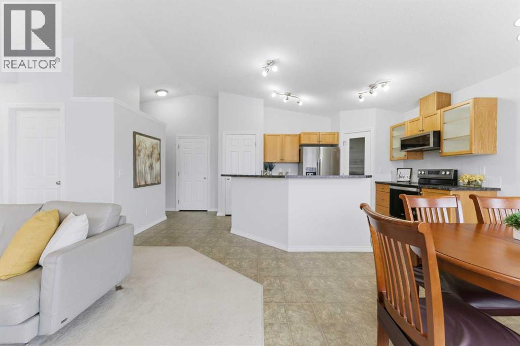 Welcome to this stunning bungalow-style townhouse in the highly sought-after community of Royal Oak, ideally located close to schools, shopping, transit, and all amenities. This bright and inviting home features an open-concept floor plan with vaulted ceilings and large windows throughout, creating an airy, elevated living space with no one above you. The spacious living and dining area leads to a private, generously sized patio with sunny south and southwest exposure. The well-appointed kitchen offers ample cabinetry, a center island, newer Whirlpool appliances (just 2 years old), a corner pantry, plus an additional second pantry for exceptional storage. This home includes: 2 bedrooms, including a king-sized primary retreat, second bedroom with walk-in closet, full bathroom, in-suite laundry, and rough in for fireplace. Additional features: Corner unit with extra windows for abundant natural light, single attached garage, plenty of visitor parking, low condo fees and common greenspace directly behind the unit. Enjoy the convenience of walking distance to schools, shopping, and the new YMCA, with quick access to transit including a direct bus to the Tuscany LRT station. Just 15 minutes to downtown and easy access west to the mountains. This is elevated living at its finest—don’t miss this exceptional opportunity. (id:63190)