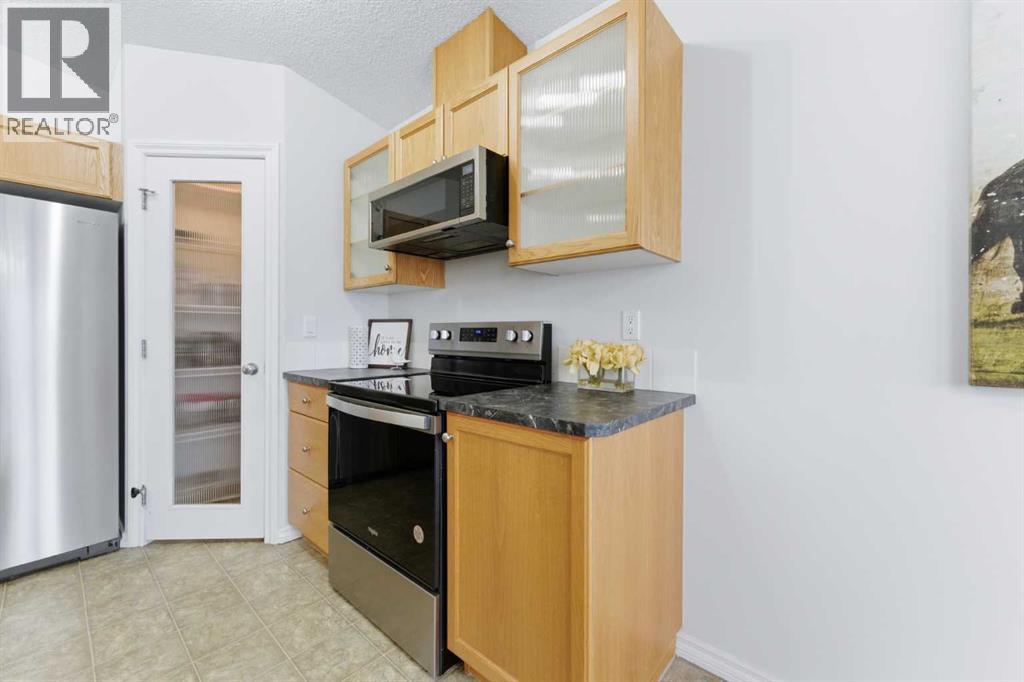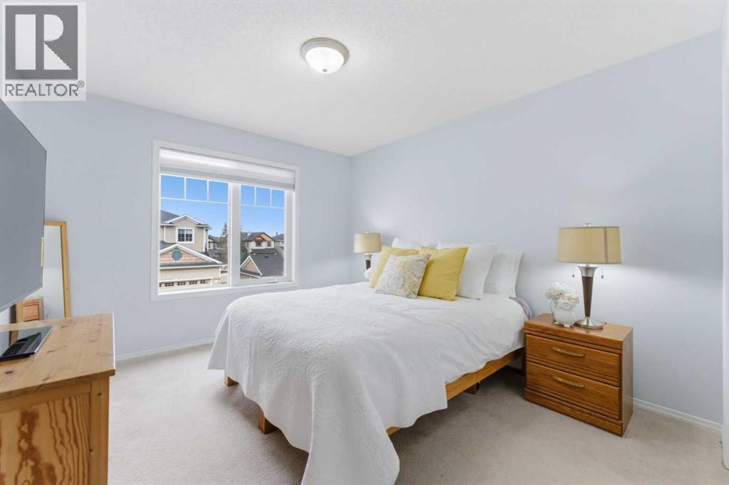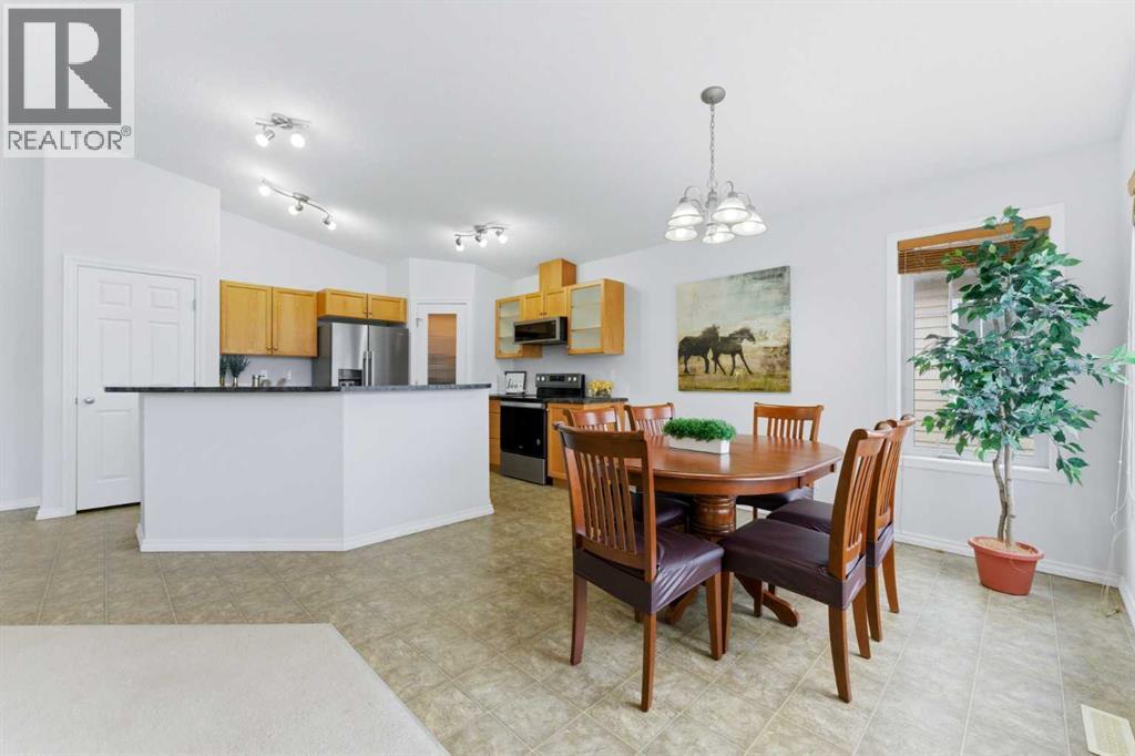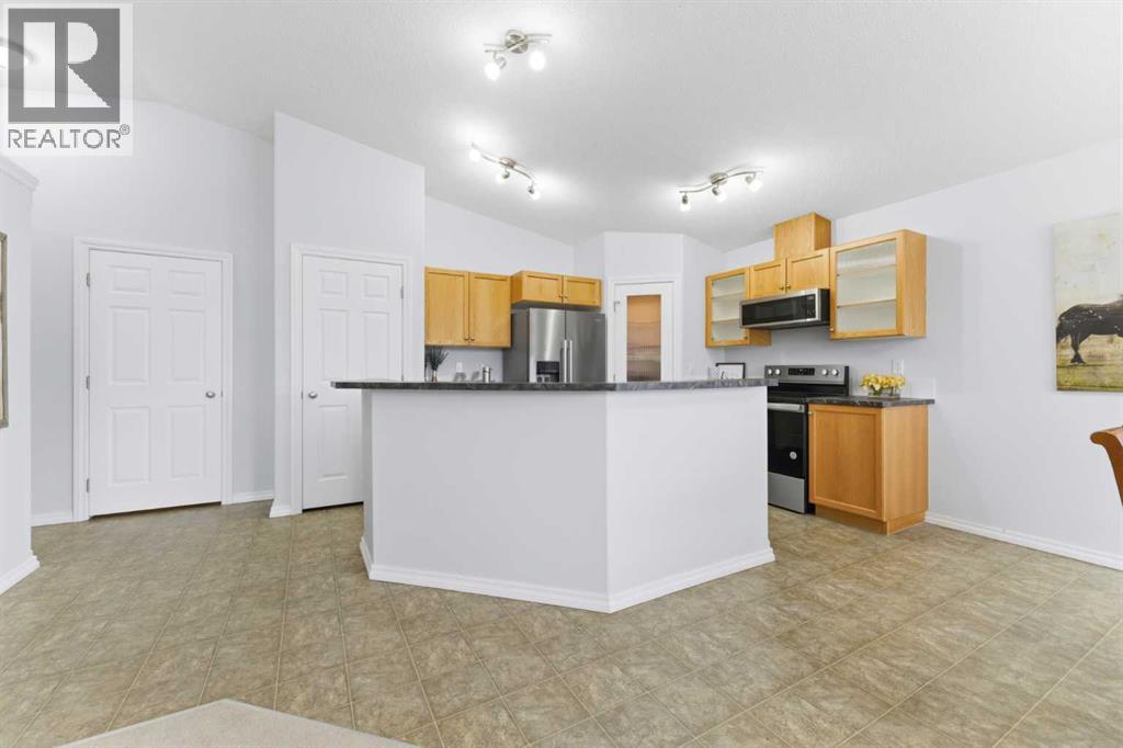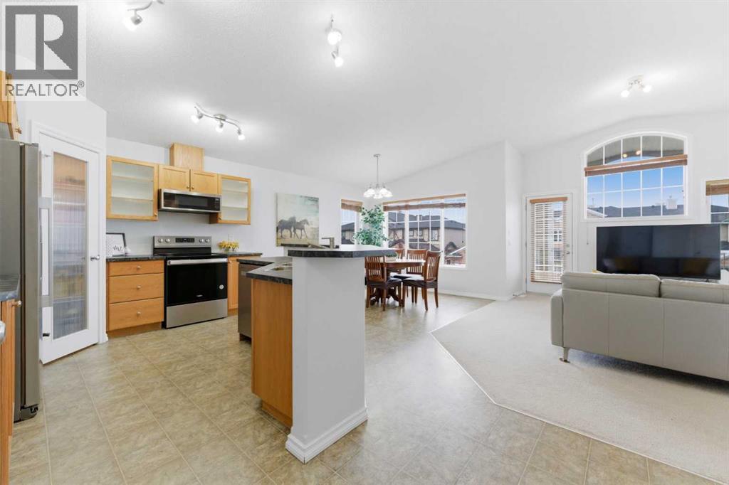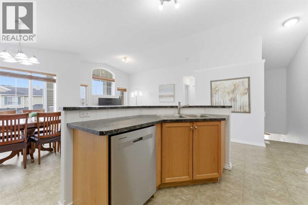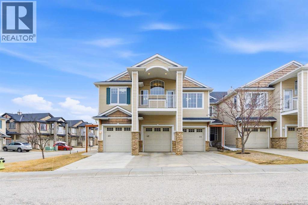 Welcome to this stunning bungalow-style townhouse in the highly sought-after community of Royal Oak, ideally located close to schools, shopping, transit, and all amenities. This bright and inviting home features an open-concept floor plan with vaulted ceilings and large windows throughout, creating an airy, elevated living space with no one above you. The spacious living and dining area leads to a private, generously sized patio with sunny south and southwest exposure. The well-appointed kitchen offers ample cabinetry, a center island, newer Whirlpool appliances (just 2 years old), a corner pantry, plus an additional second pantry for exceptional storage. This home includes: 2 bedrooms, including a king-sized primary retreat, second bedroom with walk-in closet, full bathroom, in-suite laundry, and rough in for fireplace. Additional features: Corner unit with extra windows for abundant natural light, single attached garage, plenty of visitor parking, low condo fees and common greenspace directly behind the unit. Enjoy the convenience of walking distance to schools, shopping, and the new YMCA, with quick access to transit including a direct bus to the Tuscany LRT station. Just 15 minutes to downtown and easy access west to the mountains. This is elevated living at its finest—don’t miss this exceptional opportunity. (id:63190)