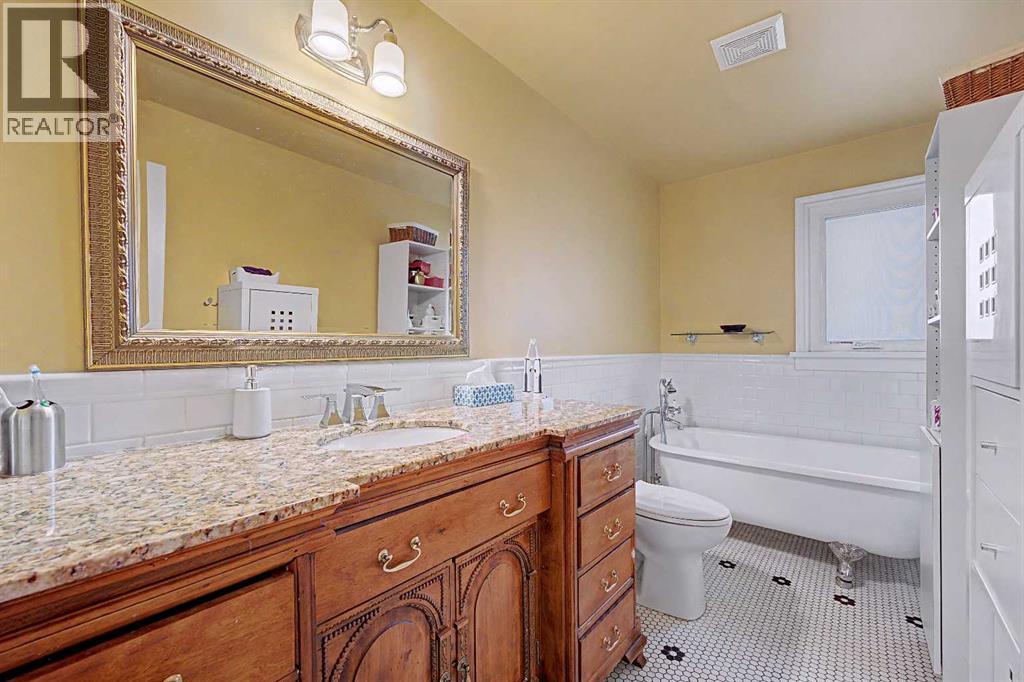 Prime Rosedale location on one of the community’s most desirable streets. Positioned on a highly elevated 50’ x 120’ corner lot with some rear city views, this property offers exceptional long-term value in a tightly held pocket where opportunities are rare. Offering nearly 1,600 sq ft on the main level, Air Conditioning, vaulted ceilings, and open living, kitchen, and dining spaces blend original charm with modern character. Two bedrooms up, two down, plus a fully developed basement with a generous laundry area provide flexibility for a variety of lifestyles. Major updates include all windows replaced in 2015 — including basement windows brought fully up to code — and a new roof in 2016. Renovated bathrooms showcase a clawfoot tub, new shower, granite vanity, and custom subway tile surround. Mechanical improvements include a 100-gallon hot water tank (2021), upgraded electrical service, high-efficiency furnace (2017), and recent washer and dryer. Two gas fireplaces enhance the warm bungalow ambience. The backyard is private and mature, highlighted by a massive rear deck accessed from the sunken living room, an interlocking brick patio, double detached garage, and surrounding greenery. Rosedale remains one of Calgary’s most established and sought-after inner-city communities — just minutes to SAIT, the University, Kensington, downtown, parks, pathways, and Rosedale K–9 School. Few properties combine this location, lot size, elevation, and existing footprint at a competitive price point. Whether enjoyed as-is today or thoughtfully updated over time, the lot itself offers compelling long-term potential — where a future build could further elevate the already impressive setting and city views. (id:63190)