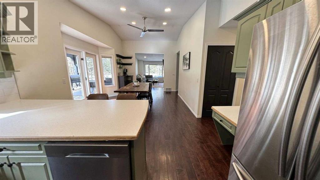 Private 2.94-acre treed acreage with direct access to the Red Deer River just steps from the edge of the property, all located minutes from Sundre. This well-maintained bungalow offers 5 bedrooms (3 up, 2 down) and 3 bathrooms, providing the perfect setup for families or those seeking space and privacy. The main floor features a bright, open layout with a spacious kitchen, vaulted ceilings, and a large primary suite complete with walk-in closet and ensuite. The fully finished basement includes a cozy wood-burning stove, large rec area, additional bedrooms, and a spacious craft/hobby room — ideal for projects, a home business, or extra workspace. A convenient wood chute from the garage to the basement makes heating efficient and hassle-free. Outside, the property is set up for true country living with a fully paved driveway, heated attached garage, and a detached heated garage complete with cabinets and shelving, offering excellent storage and workspace. An oversized shed, second driveway, and ample room for vehicles, toys, or equipment add even more functionality. A second driveway leads to a private rear camping and firepit area, perfect for entertaining, relaxing, or enjoying the outdoors. Additional features include a covered deck, RV parking space, and mature trees providing exceptional privacy. This acreage offers the perfect blend of peaceful rural living and convenient access to nearby amenities (id:63190)