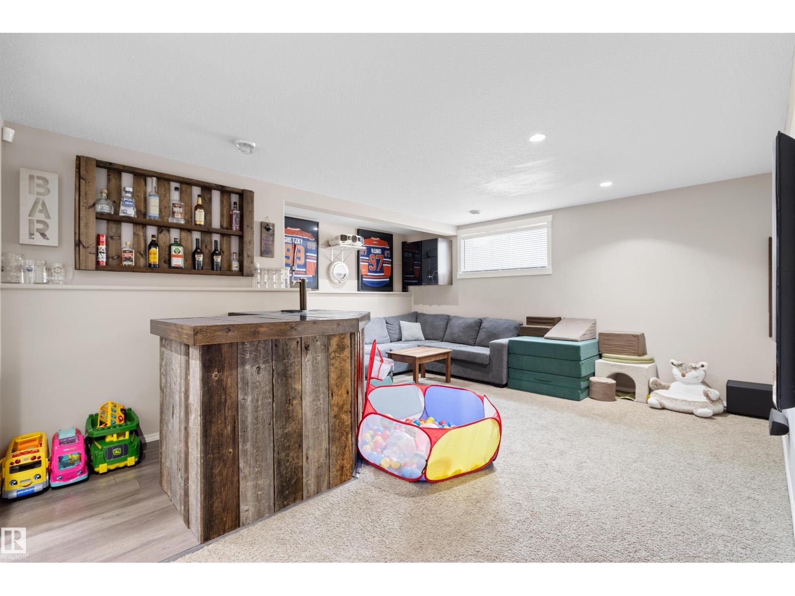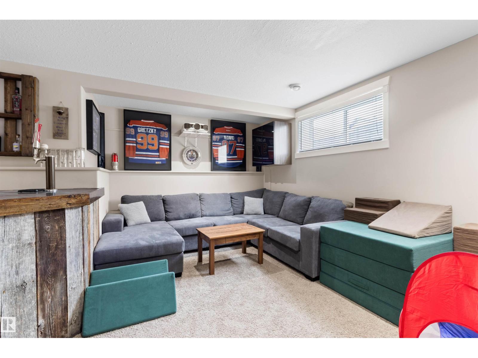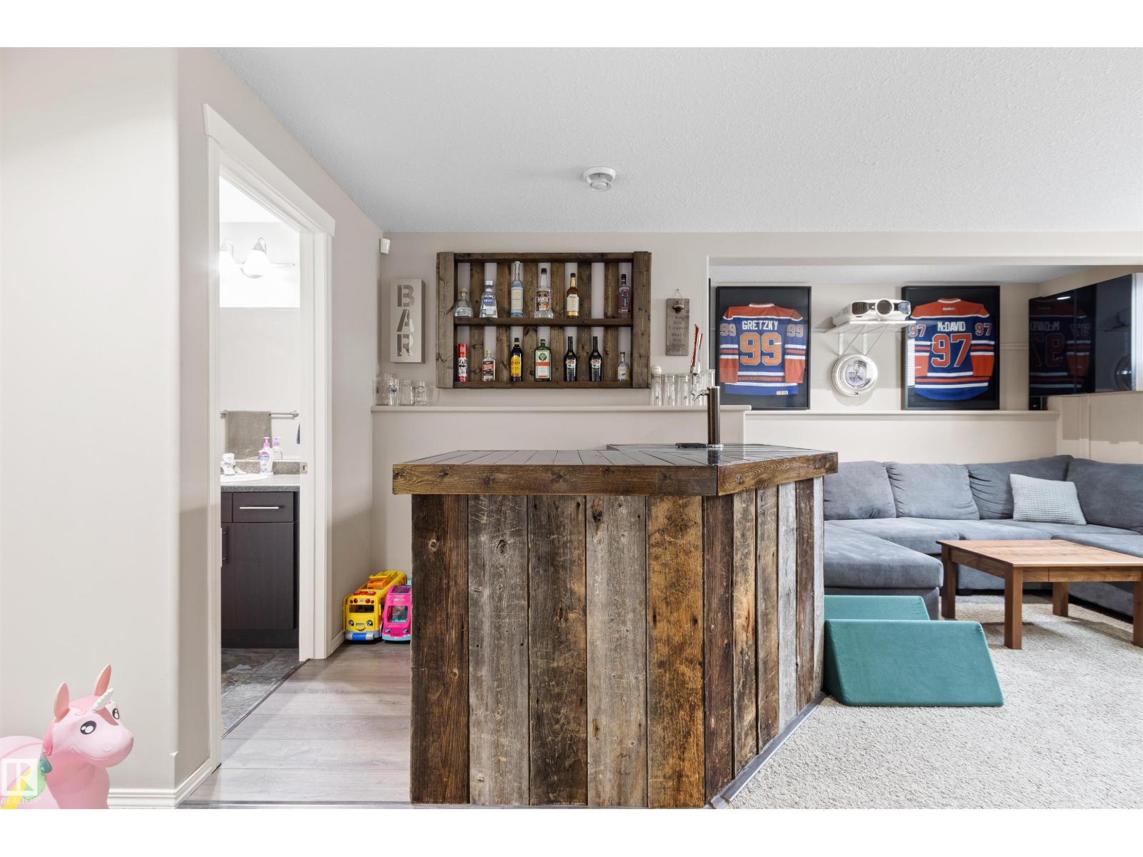 Welcome to this beautifully maintained 2-storey home, built in 2010 offering 1,711 sq ft of thoughtfully designed living space. Proudly owned by the original owner, this property combines comfort, functionality, and an unbeatable location. Featuring 4 beds, plus an office/5th bed, and 4 bathrooms—perfect for growing families. The generously sized bedrooms and convenient upstairs laundry add to the home's practical layout. The heart of the home is the oversized kitchen, complete with a large island with seating, stainless steel appliances, a pantry, and plenty of workspace—ideal for cooking and entertaining. The inviting living room is highlighted by a cozy gas fireplace. The fully finished basement has an additional bedroom, bathroom, storage room, wine room, bar, and a theatre-style family room—perfect for relaxing or hosting guests. Step outside to enjoy the large, fenced lot featuring an oversized deck with a built in hot tub, fire pit area and shed! Double heated garage complete with a floor drain. (id:63190)