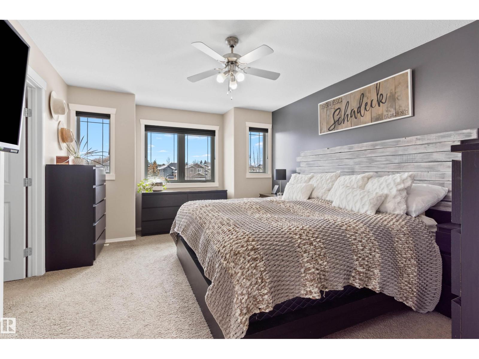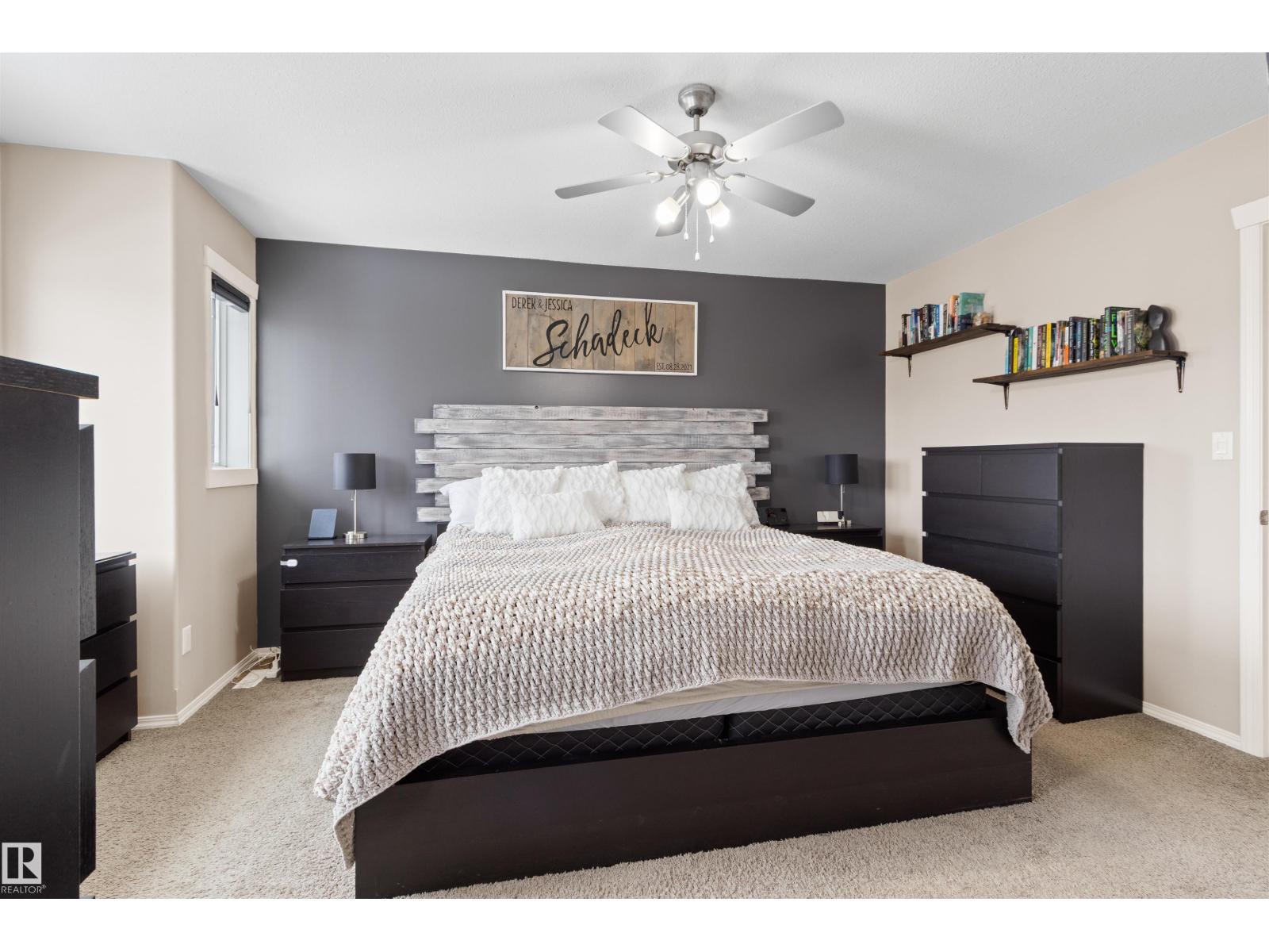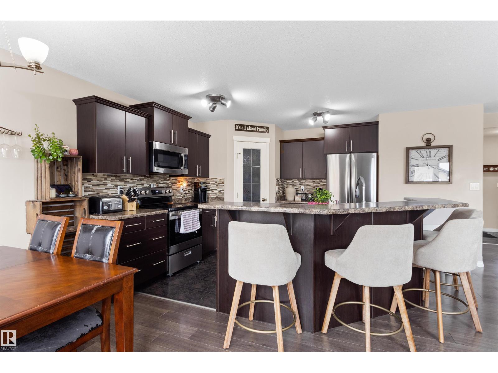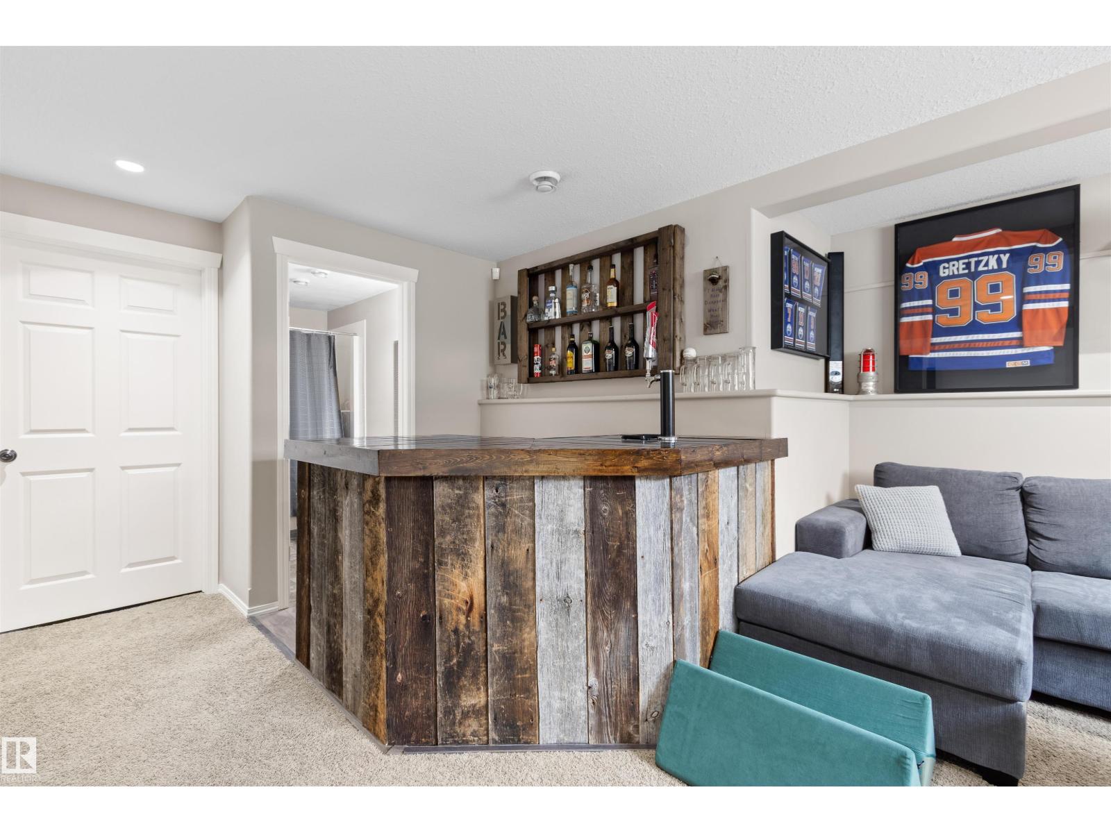 Welcome to this beautifully maintained 2-storey home, built in 2010 offering 1,711 sq ft of thoughtfully designed living space. Proudly owned by the original owner, this property combines comfort, functionality, and an unbeatable location. Featuring 4 beds, plus an office/5th bed, and 4 bathrooms—perfect for growing families. The generously sized bedrooms and convenient upstairs laundry add to the home's practical layout. The heart of the home is the oversized kitchen, complete with a large island with seating, stainless steel appliances, a pantry, and plenty of workspace—ideal for cooking and entertaining. The inviting living room is highlighted by a cozy gas fireplace. The fully finished basement has an additional bedroom, bathroom, storage room, wine room, bar, and a theatre-style family room—perfect for relaxing or hosting guests. Step outside to enjoy the large, fenced lot featuring an oversized deck with a built in hot tub, fire pit area and shed! Double heated garage complete with a floor drain. (id:63190)