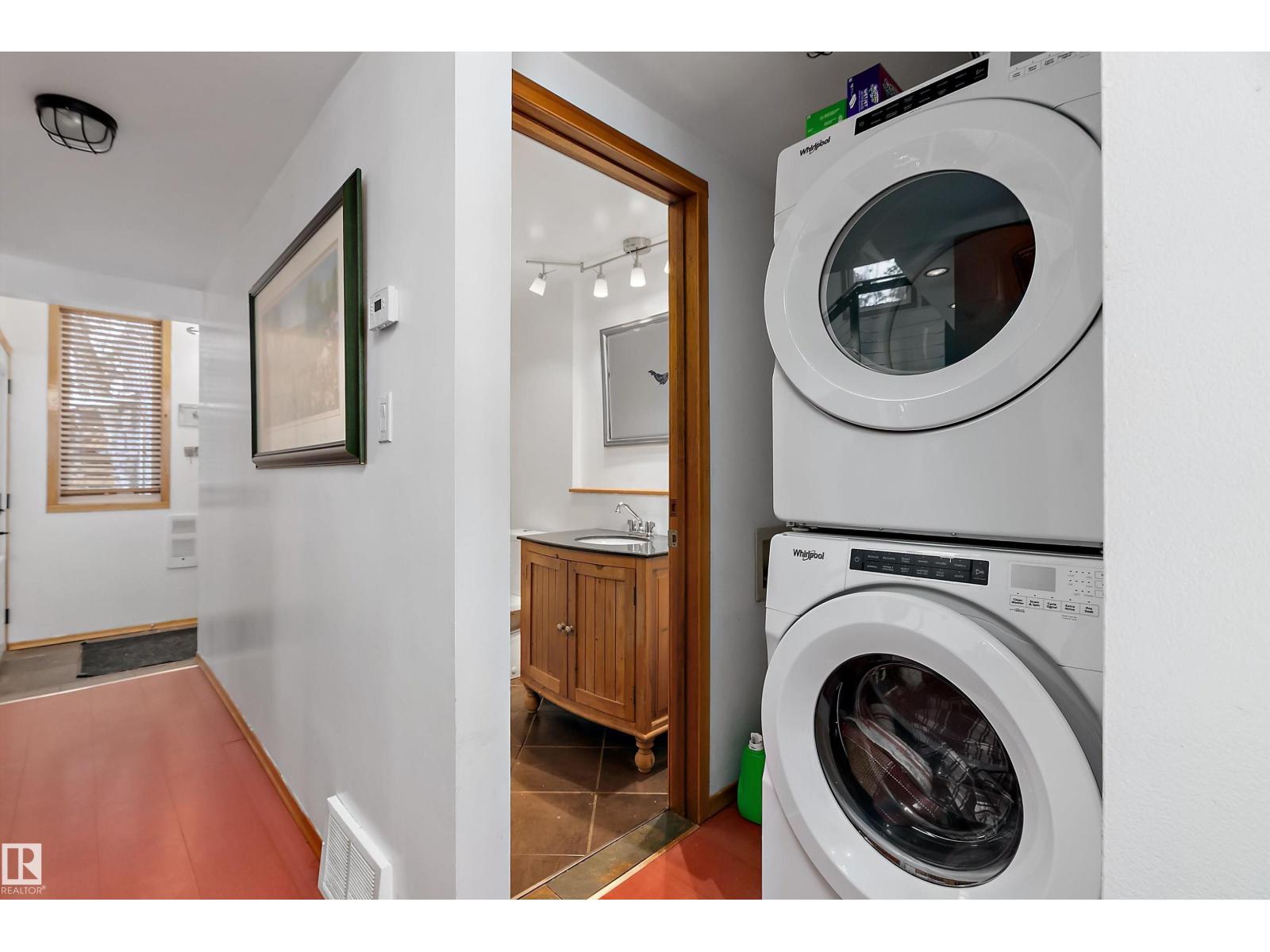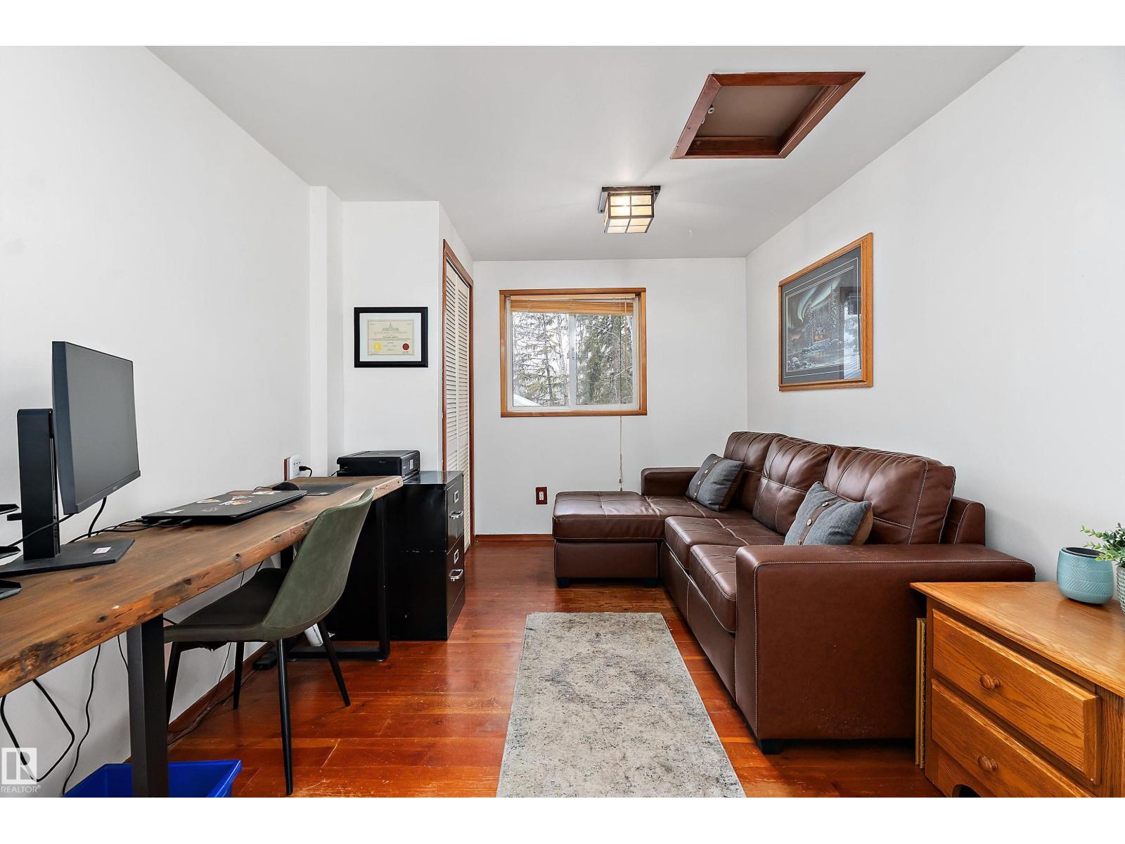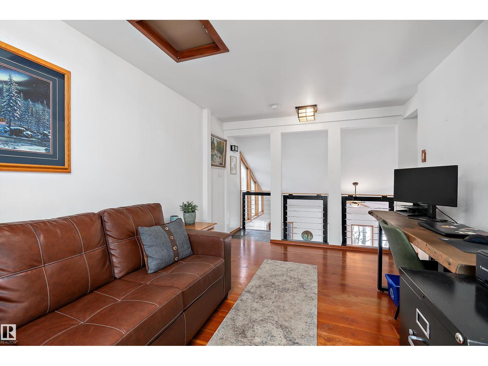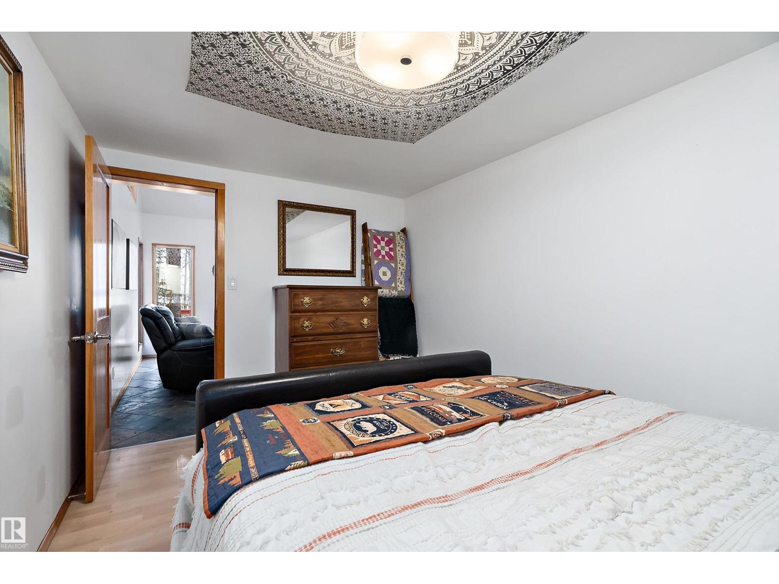 Beautiful, secluded lakefront home! Backing onto quiet Sandy Lake just 30 minutes from Edmonton, at the end of a cul-de-sac with walls of windows to appreciate the serene views over the tiered decks, through the sheltering trees & lawn, to the reeds of your own lake access. Inside, this 1991 2-storey has soaring open vault ceilings so that the views can be appreciated from both floors. Gorgeous slate counters & tile floors, a wood stove for cozy winter nights, gas range in the kitchen, main floor laundry & bathroom, as well as a main floor bedroom. The primary bedroom upstairs has it’s own private balcony looking onto the lake; there’s a 3rd bedroom upstairs, and a quaint bathroom with tiled steam shower & soaker tub. Comes with an attached double tandem garage with additional storage above, work bench, cabinets and additional parking in front for boat/RV/trailer. With a low maintenance metal roof & cistern with potable water, you’ve got all the amenities with the lifestyle you’ve been dreaming of! (id:63190)