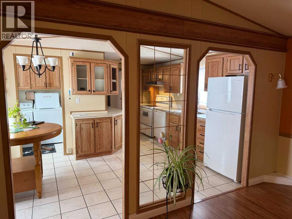Affordable and very well-maintained property perfectly situated just outside of Brooks at Westridge Park, offering the ideal balance of quiet living with convenient access to town amenities. This 1,152 sq ft modular home, built in 1990, features a functional and family-friendly layout with 3 bedrooms and 2 bathrooms, providing a comfortable space.The home offers a bright and open living area, a practical kitchen with ample cabinetry, and a primary bedroom complete with its own private ensuite and walk-in closet. Two additional bedrooms and a second full bathroom make it ideal for families, guests, or a home office setup. Open kitchen, feature plenty of cabinetry and countertops. Situated on a large mature corner lot, showing off an abundance of trees and providing added privacy and outdoor space rarely found in similar settings. This could be the best lot in Westridge. The 16' x 20' detached garage is perfect for parking, storage, or a workshop, adding excellent value and versatility.Affordable home with space, functionality, and a peaceful location just minutes from Brooks, this property is well worth a look. (id:63190)