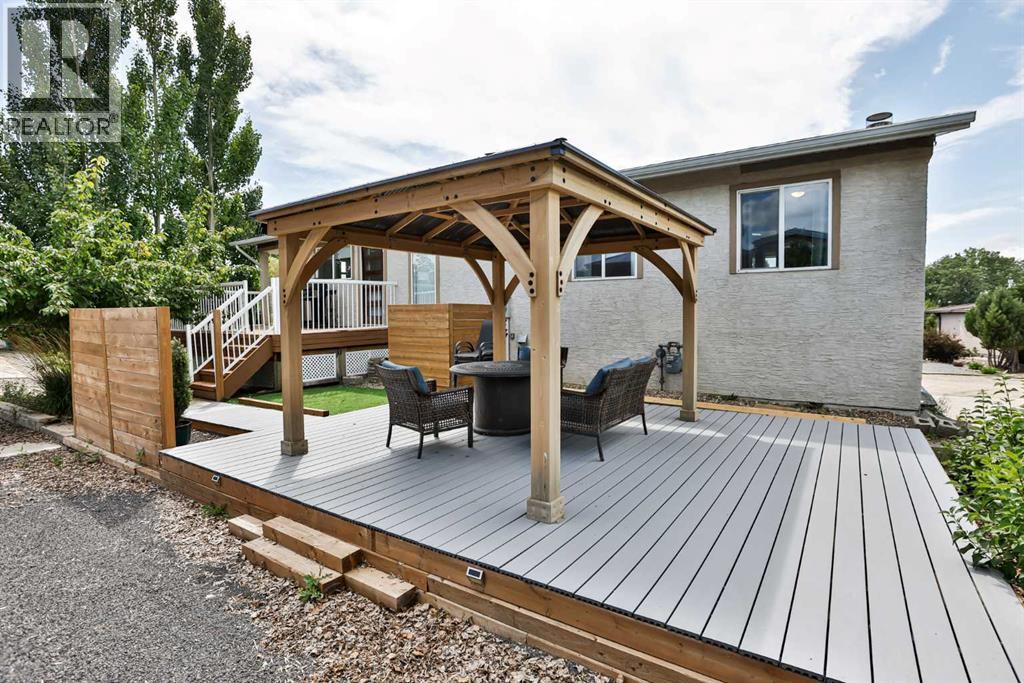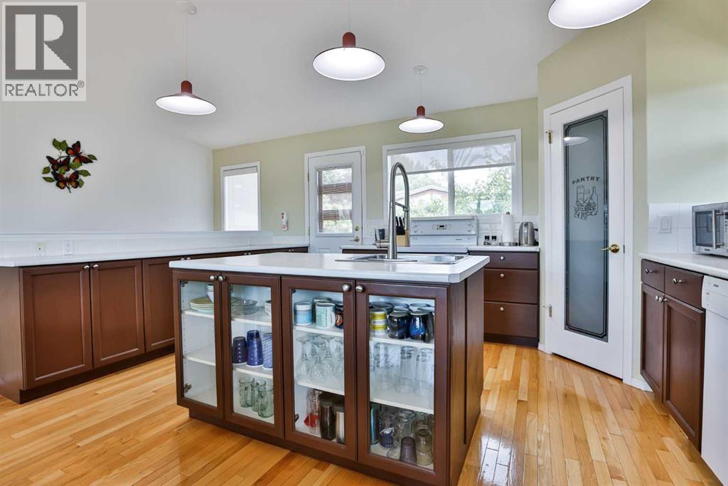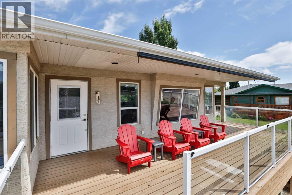 Welcome to your summer/year round resort property which is located in Little Bow Resort. The Resort is located on the Travers Reservour which supplies plenty of activities such as boating, fishing, water skiing, sailing, swimming or even ice fishing in the winter. This wonderful home is plenty large enough with 3 bedrooms. The main floor with lots of large windows is an open plan with a large kitchen which has plenty of room for large gatherings around the island and dining room table. The spacious living room features a beautiful wood burning fireplace for those cool nights. The main level has beautiful hardwood flooring throughout and tile in the bathroom. The lower level features the primary bedroom, laundry room, double attached garage and utility room. Oh yes the home has Central A/C for those hot summer days. The property has a large wrap around deck so you can enjoy the sun or shade whichever is your preference the time. The front deck faces west with the rear deck facing east and the side deck facing south. There's also pulldown shades on the front deck. In the front of this low maintenance property you get a great view of the reservour from the front deck. Also in front on the ground level you have a private yard with a firepit. There is also an outdoor shower at this level to rinse off all the sand on you from the beach before you head inside. The rear yard has a nicely shaded deck. In the rear yard there is a gazebo to enjoy meals on those warm summer days. There is also RV and extra parking at the rear of the property as well. The home is located on the corner of Lakeside Dr and Canal Lane. Across from the property is a walkway to the water. There's a private boat launch for residents of the community. Also this awesome property features a large 29' x12' secured private boat shed which will be sold with the property. Sound like the place for you? Give your favourite Realtor a call today for your private viewing. (id:63190)