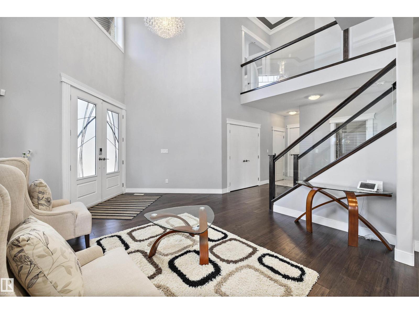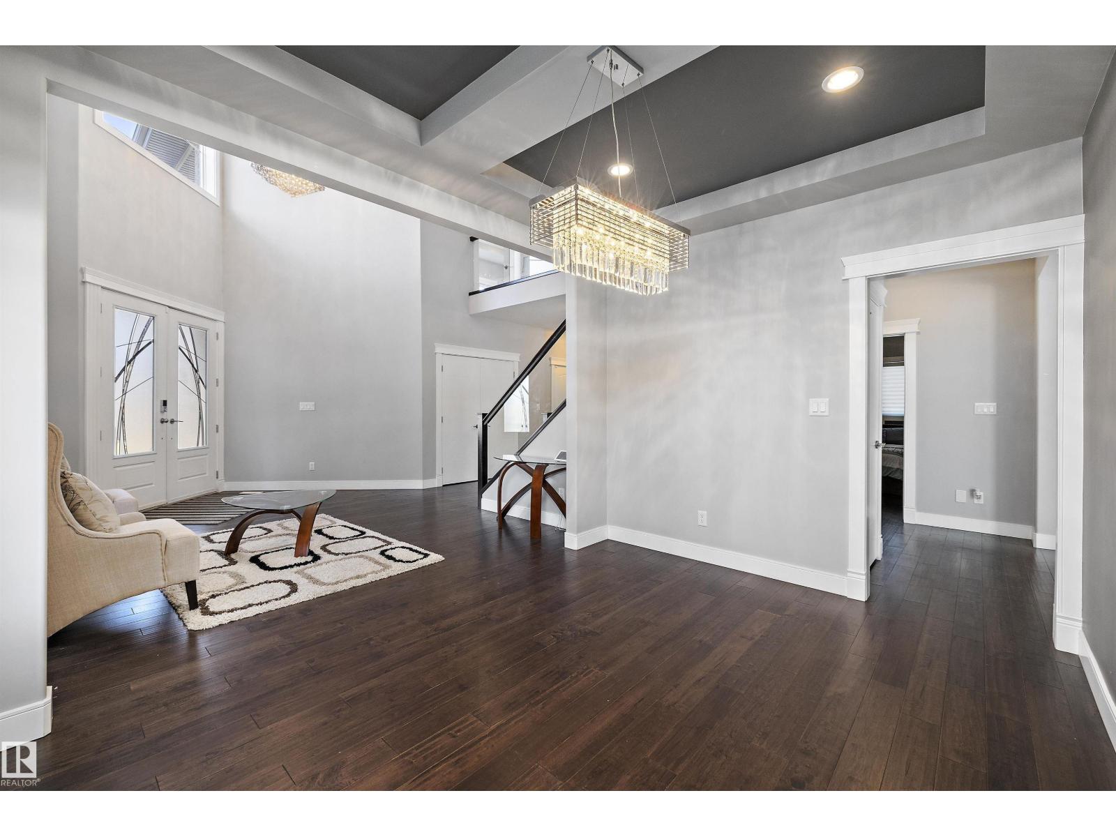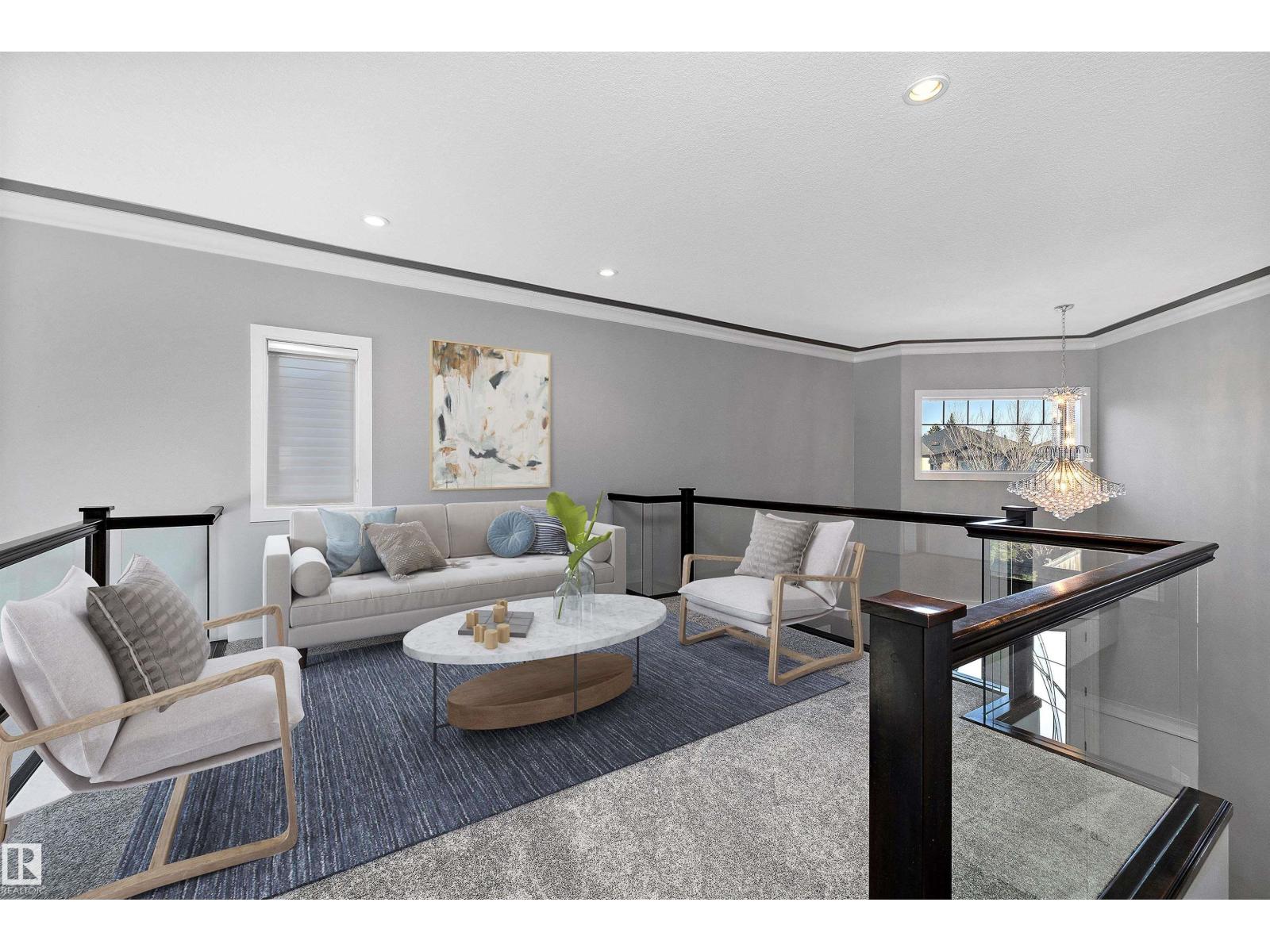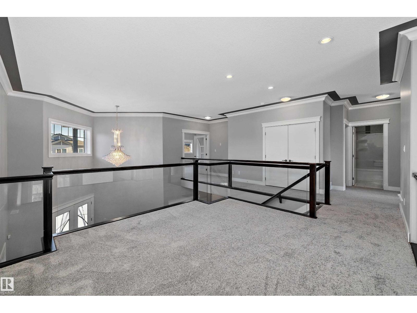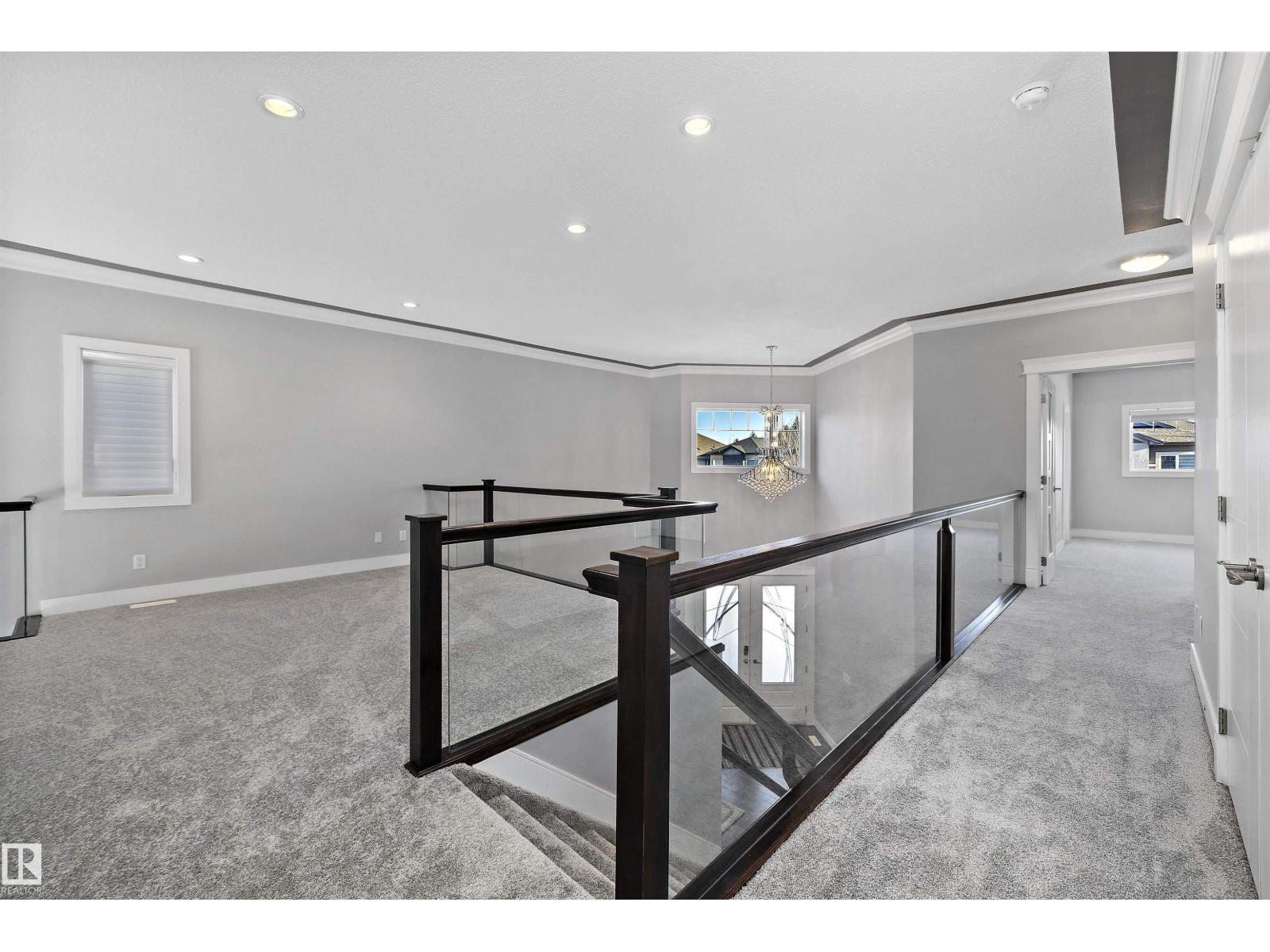 Luxury living defines this Allard home with architectural impact & refined finishes. Dramatic open-to-below foyer with glass railing leads to a bright open-concept main floor with rich hardwood, striking fireplace & expansive windows. Chef’s kitchen features full-height cabinetry, stone countertops, premium stainless steel appliances & a large island ideal for entertaining. Rare main floor bedroom with full bathroom is perfect for guests or intergenerational living. BASEMENT: SEPARATE SIDE ENTRANCE! UPSTAIRS: offers a spacious bonus room, upper-level laundry & a primary retreat with tray ceiling, chandelier, spa-inspired ensuite & walk-in closet. BRAND NEW CARPETS throughout the upper level add comfort & move-in readiness. Enjoy a covered upper balcony & a large rear deck overlooking a generous fenced yard, ideal for outdoor living & family gatherings. Located on a quiet street minutes to amenities, schools, Anthony Henday & the airport, delivering true luxury in SW Edmonton. (id:63190)