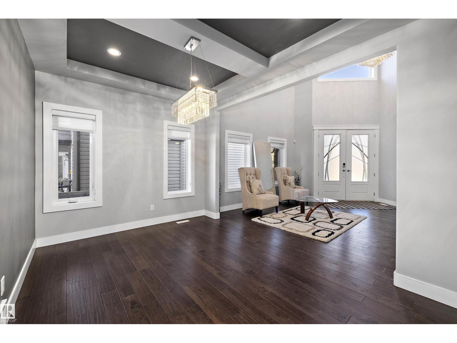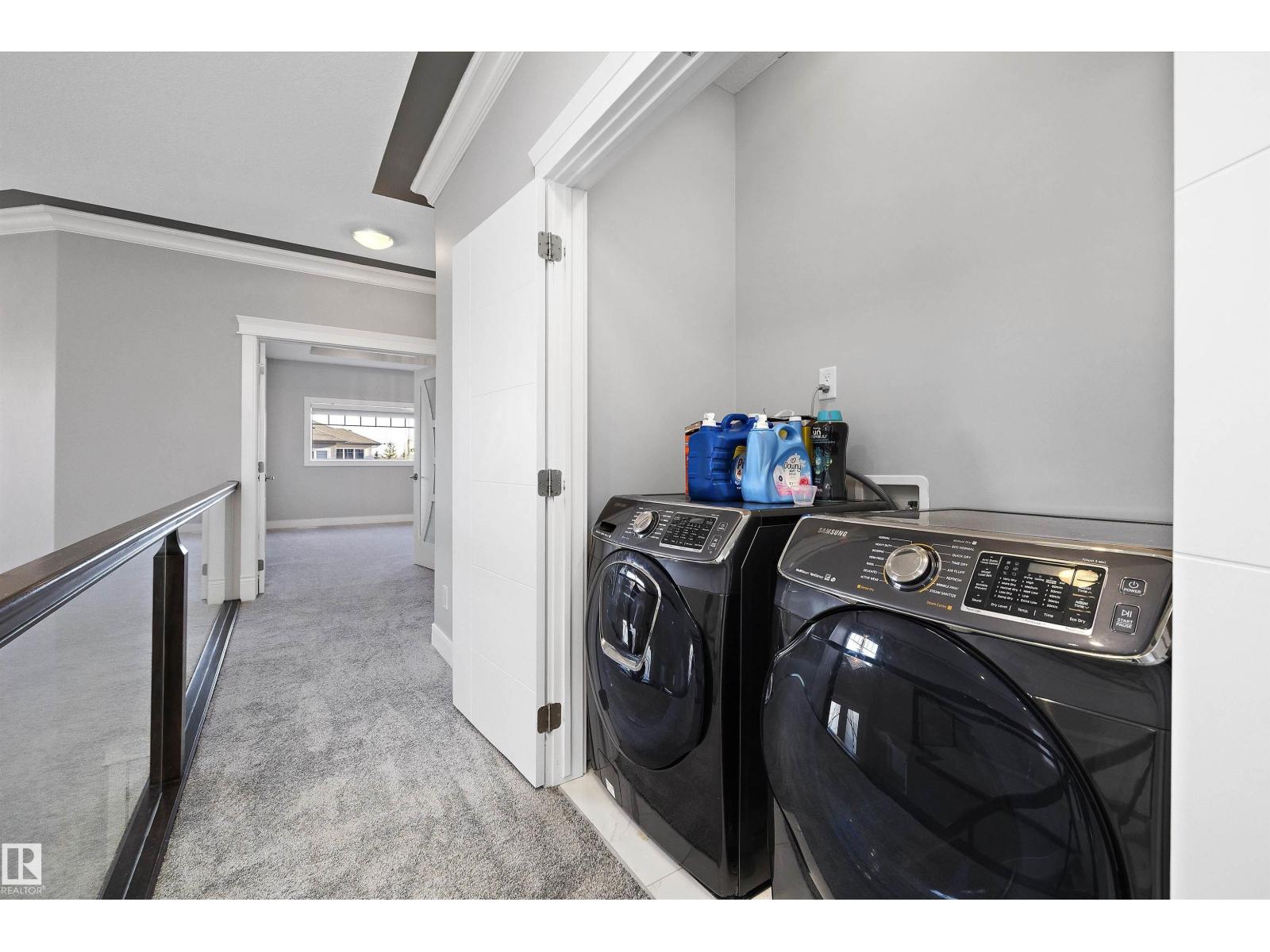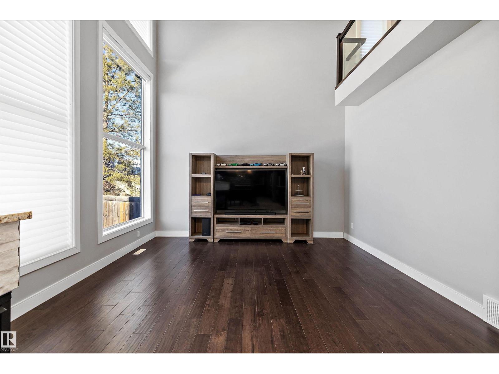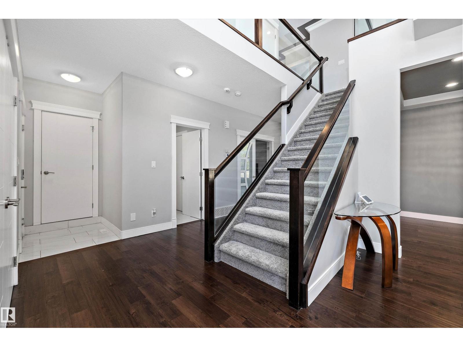 Luxury living defines this Allard home with architectural impact & refined finishes. Dramatic open-to-below foyer with glass railing leads to a bright open-concept main floor with rich hardwood, striking fireplace & expansive windows. Chef’s kitchen features full-height cabinetry, stone countertops, premium stainless steel appliances & a large island ideal for entertaining. Rare main floor bedroom with full bathroom is perfect for guests or intergenerational living. BASEMENT: SEPARATE SIDE ENTRANCE! UPSTAIRS: offers a spacious bonus room, upper-level laundry & a primary retreat with tray ceiling, chandelier, spa-inspired ensuite & walk-in closet. BRAND NEW CARPETS throughout the upper level add comfort & move-in readiness. Enjoy a covered upper balcony & a large rear deck overlooking a generous fenced yard, ideal for outdoor living & family gatherings. Located on a quiet street minutes to amenities, schools, Anthony Henday & the airport, delivering true luxury in SW Edmonton. (id:63190)