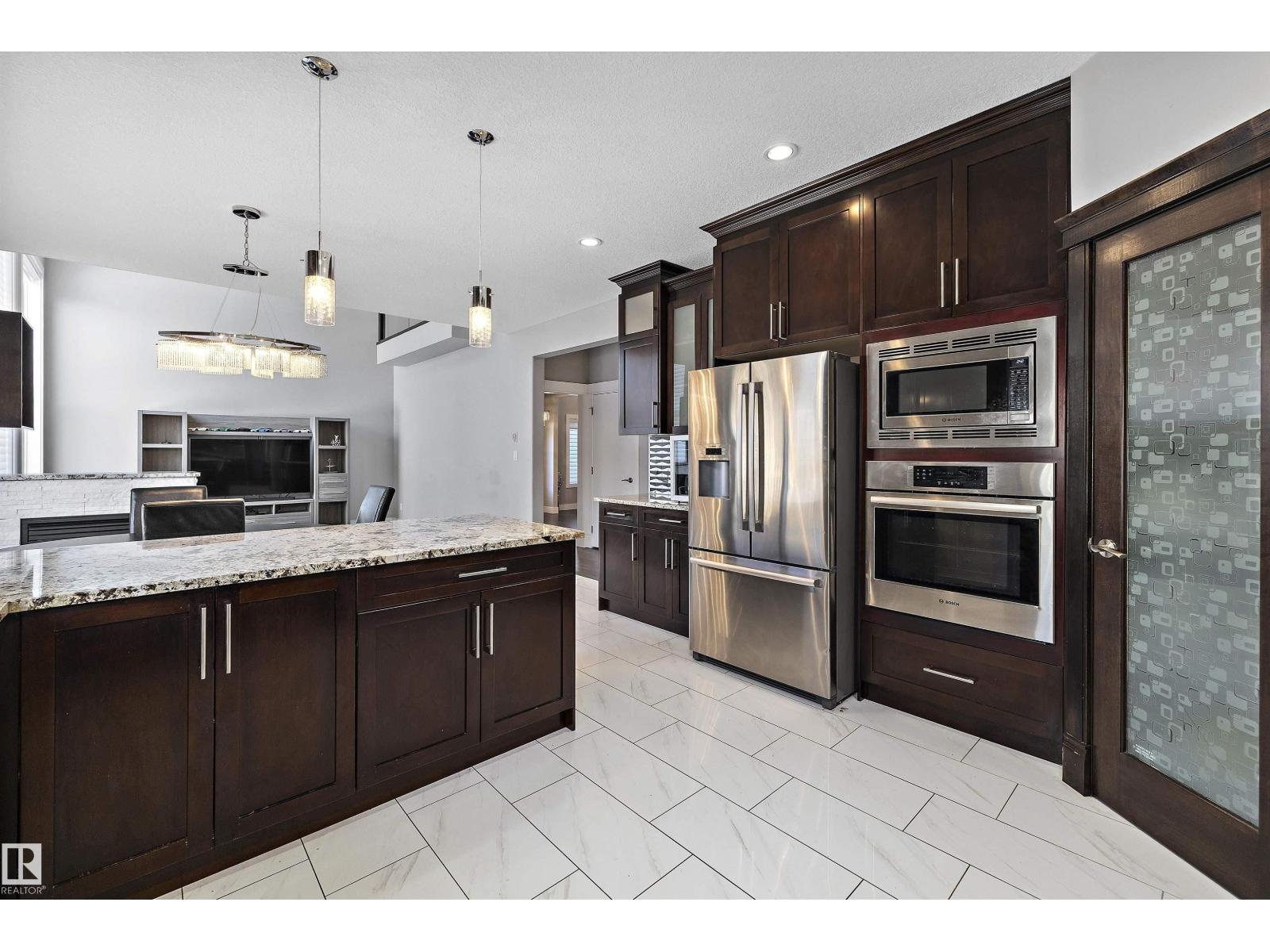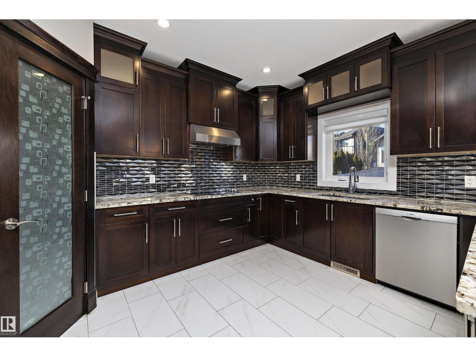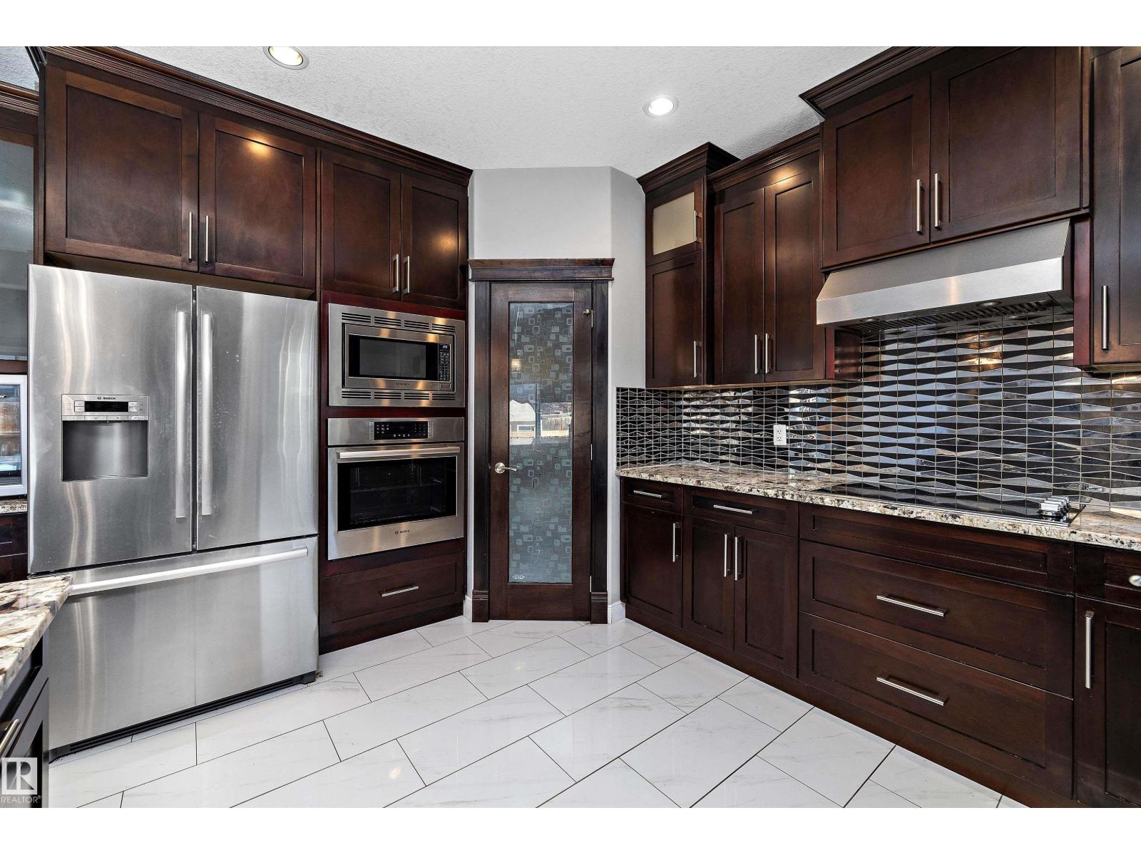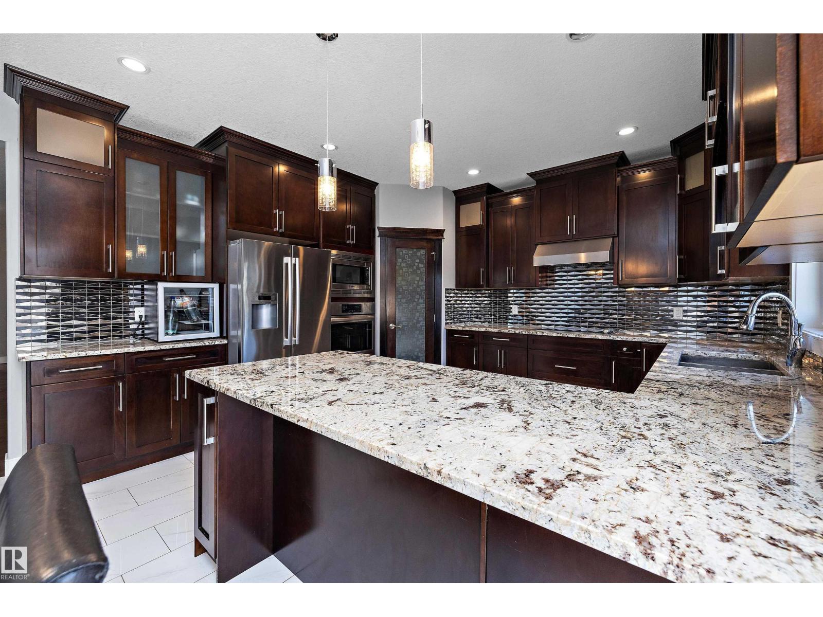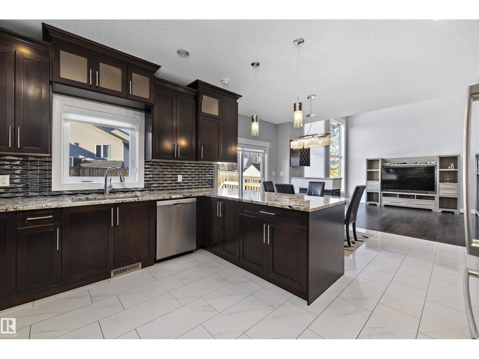 Luxury living defines this Allard home with architectural impact & refined finishes. Dramatic open-to-below foyer with glass railing leads to a bright open-concept main floor with rich hardwood, striking fireplace & expansive windows. Chef’s kitchen features full-height cabinetry, stone countertops, premium stainless steel appliances & a large island ideal for entertaining. Rare main floor bedroom with full bathroom is perfect for guests or intergenerational living. BASEMENT: SEPARATE SIDE ENTRANCE! UPSTAIRS: offers a spacious bonus room, upper-level laundry & a primary retreat with tray ceiling, chandelier, spa-inspired ensuite & walk-in closet. BRAND NEW CARPETS throughout the upper level add comfort & move-in readiness. Enjoy a covered upper balcony & a large rear deck overlooking a generous fenced yard, ideal for outdoor living & family gatherings. Located on a quiet street minutes to amenities, schools, Anthony Henday & the airport, delivering true luxury in SW Edmonton. (id:63190)