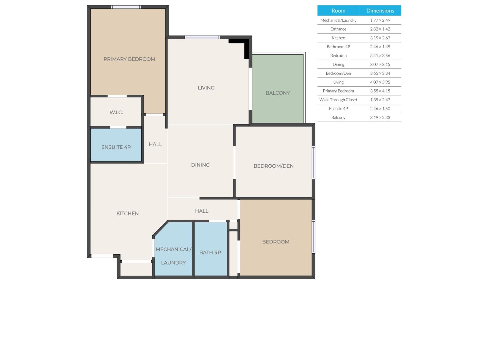 | Primary Bedroom | Main level | 3.55 x 4.15 | — |