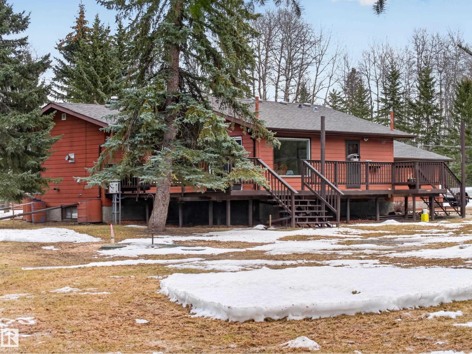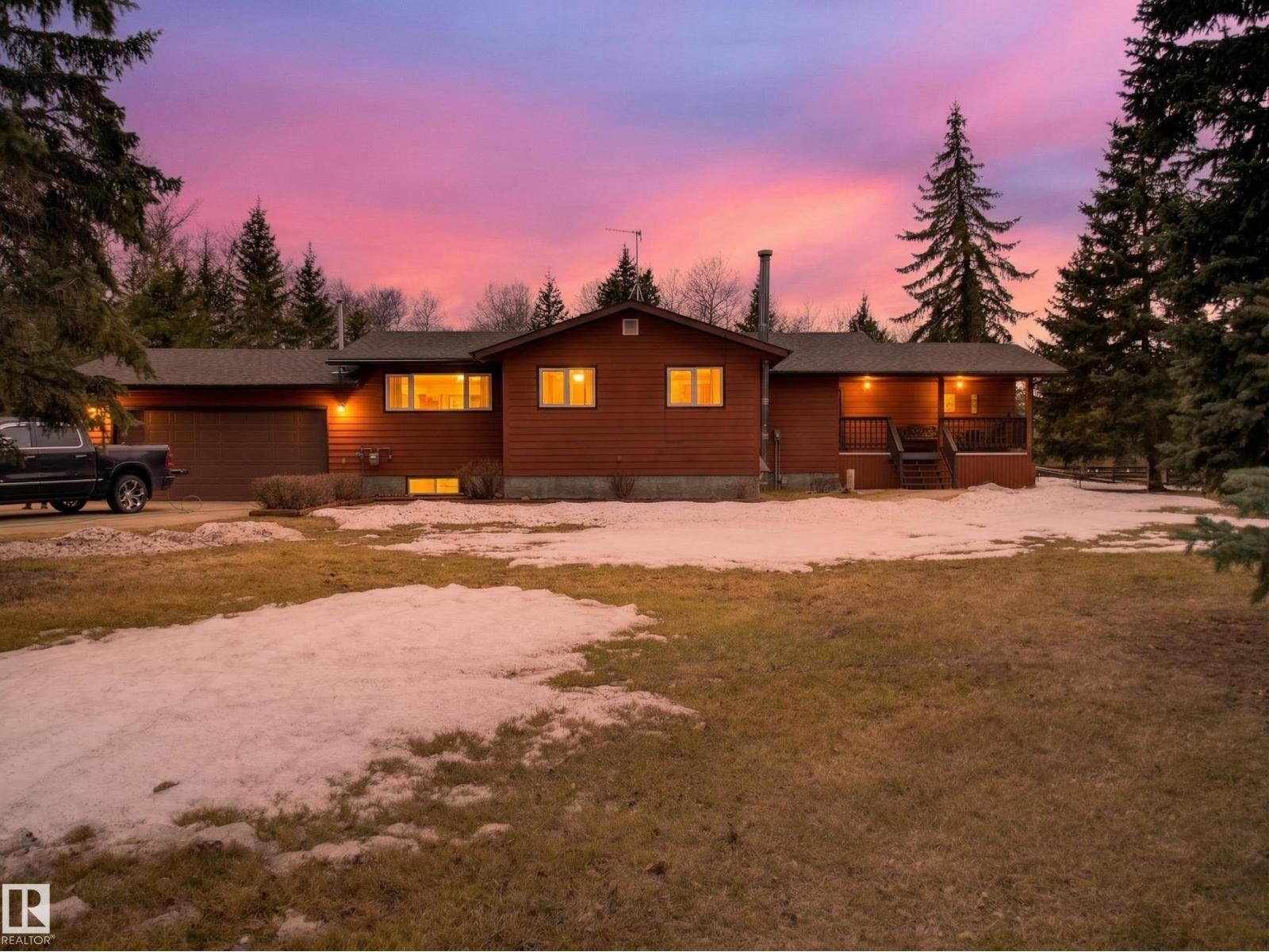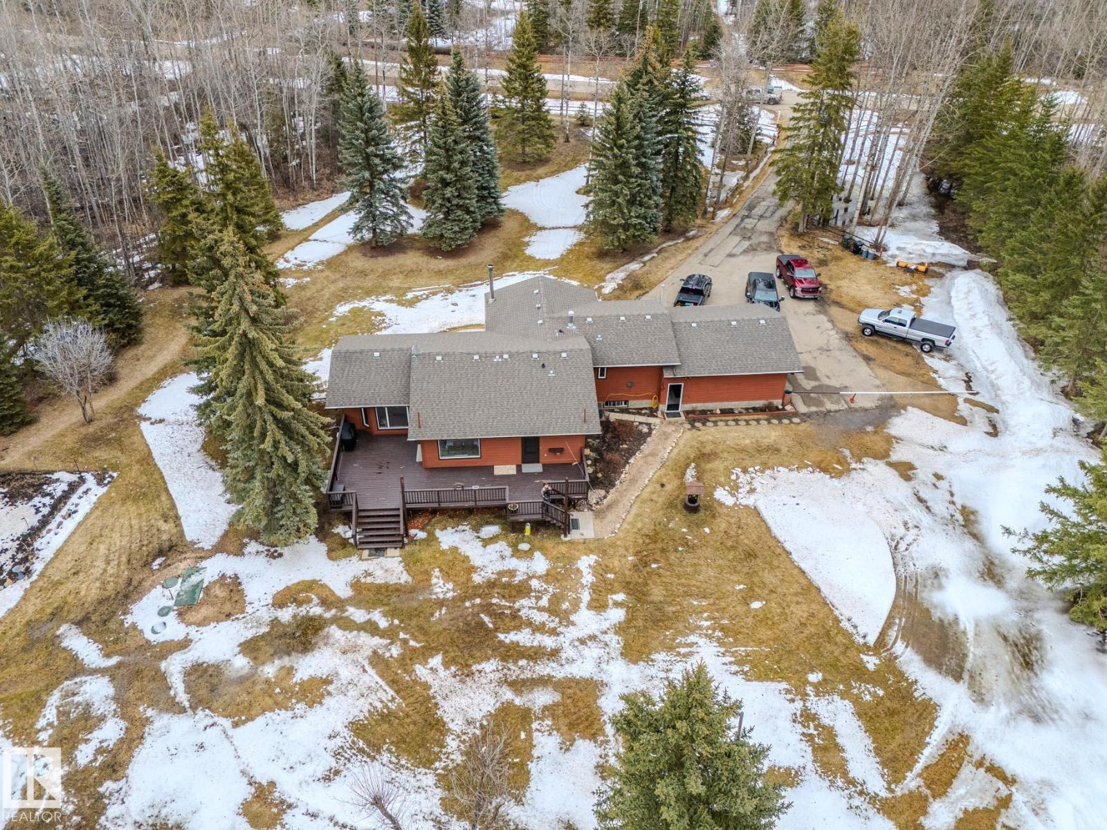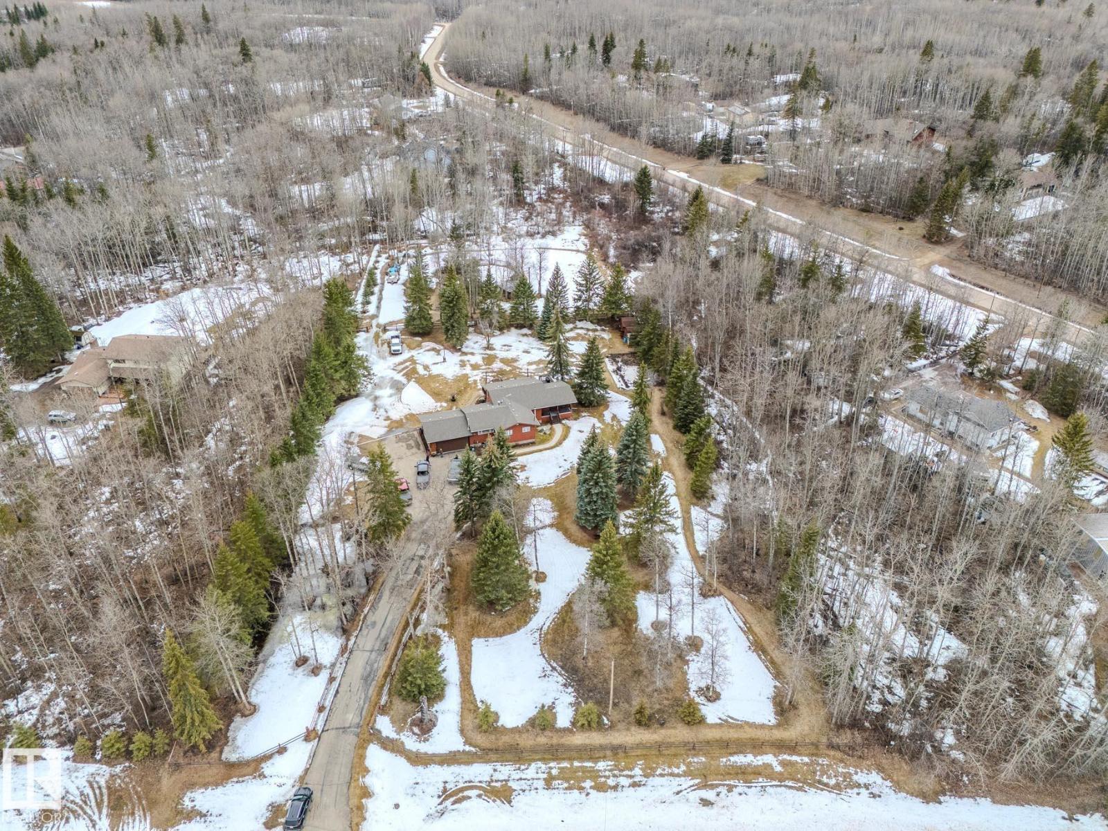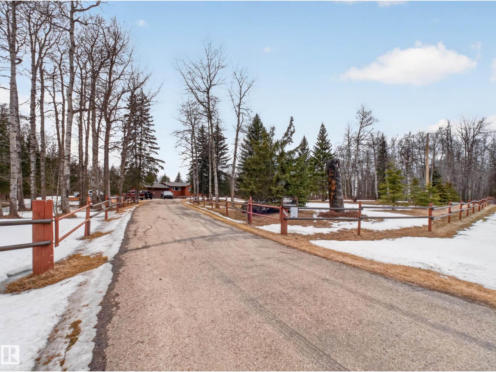 ~!WELCOME!~ PRIVATE ACREAGE...TREES FOR DAYS. FULLY FINISHED BUNGALOW. Just under 1800 sq ft bungalow, living on 2.69 acres of fully fenced, spruce-covered land—this is the setting people move to the country for! ORIGINAL OWNERS and unmistakable pride of ownership make this home a rare gem. Tucked into Wildwood Village, surrounded by mature trees, privacy, and quiet—yet only 15 minutes to Sherwood Park. The home has been exceptionally maintained with key upgrades already done: new septic (2025), newer triple-pane windows, newer furnace, newer appliances, and shingles approx. 8 years old. Inside offers a spacious living room, dining area, and functional kitchen, filled with natural light and a warm, welcoming feel. The fully finished basement adds flexibility for family living, guests, or entertaining. Step outside and it’s all here—trees, space, and total privacy. Room for kids, pets, and toys… or just quiet mornings and long summer nights. Move-in ready & country living at its best! (id:63190)