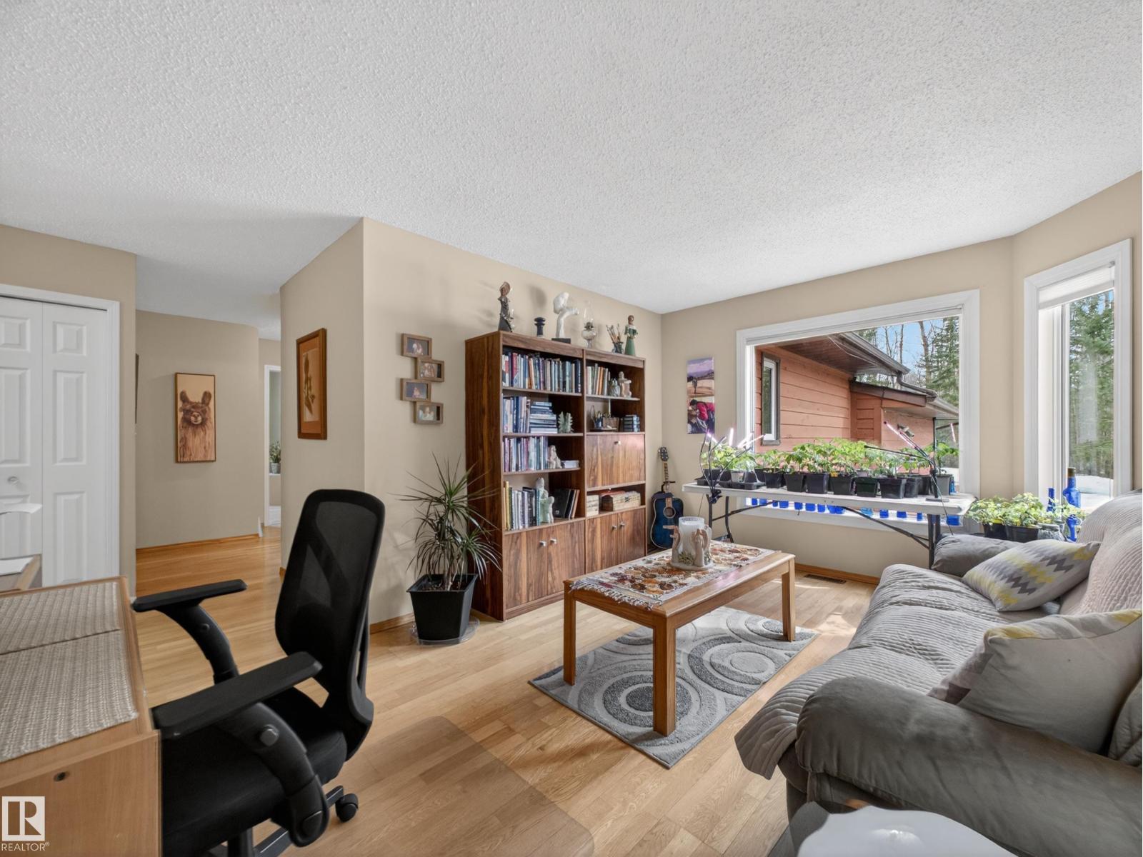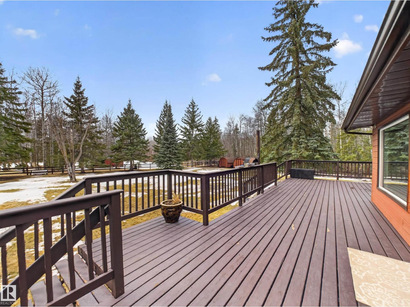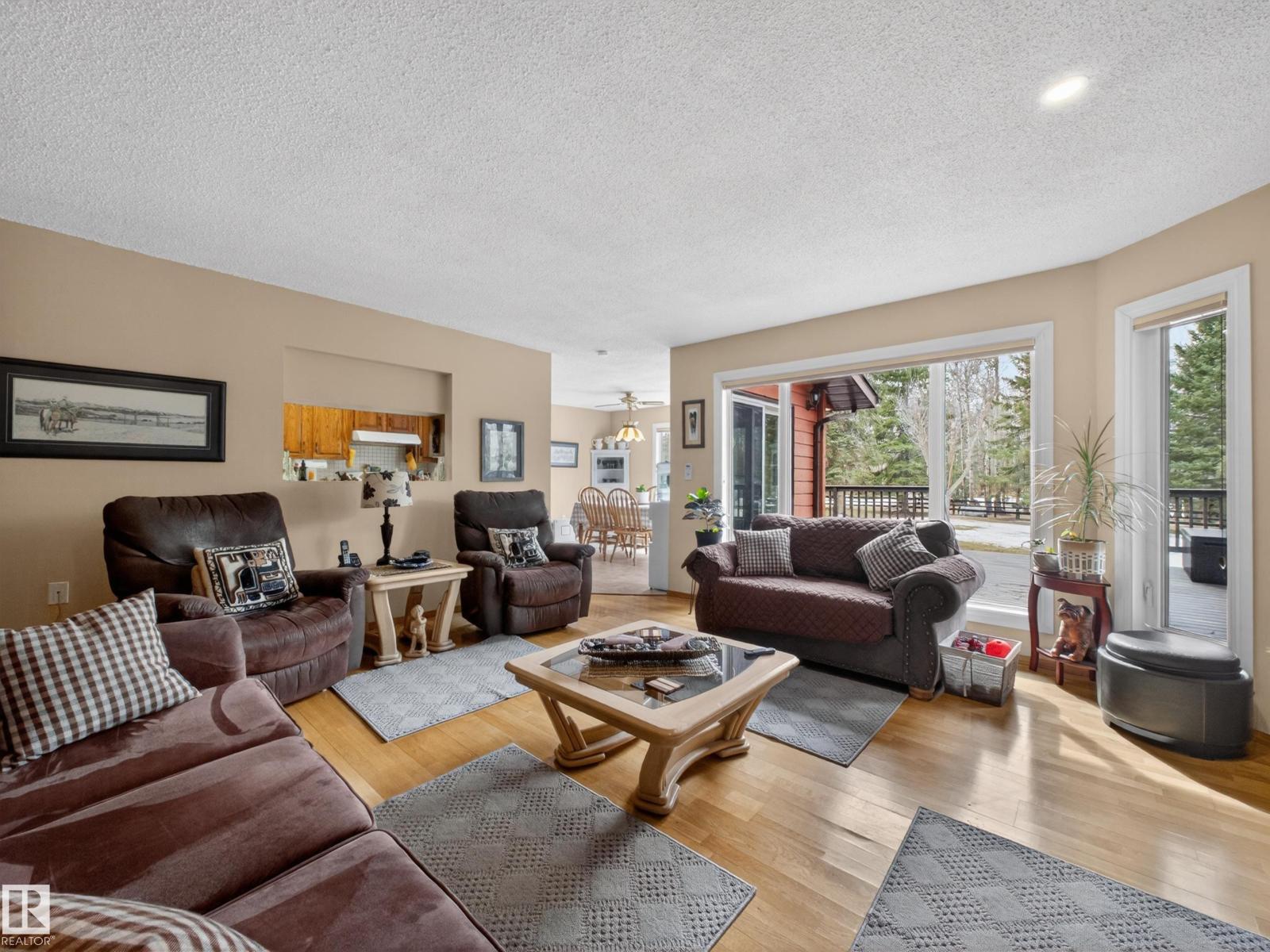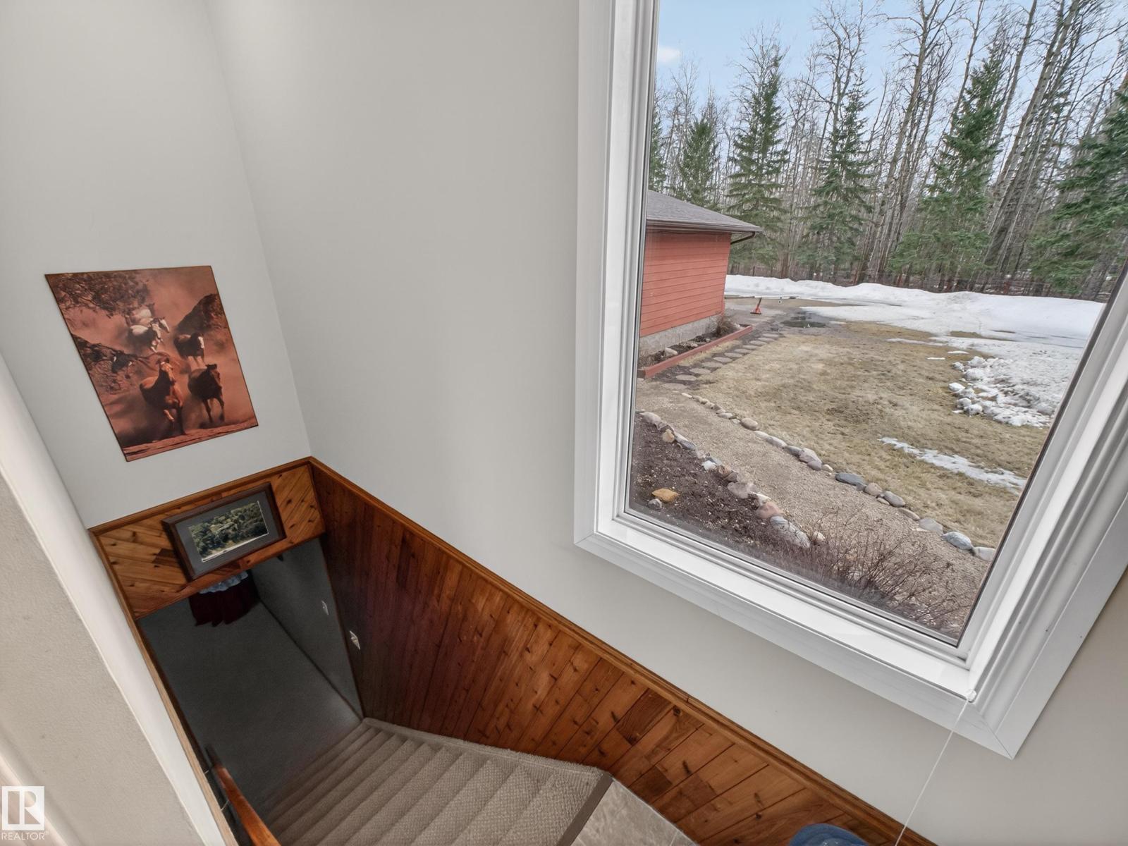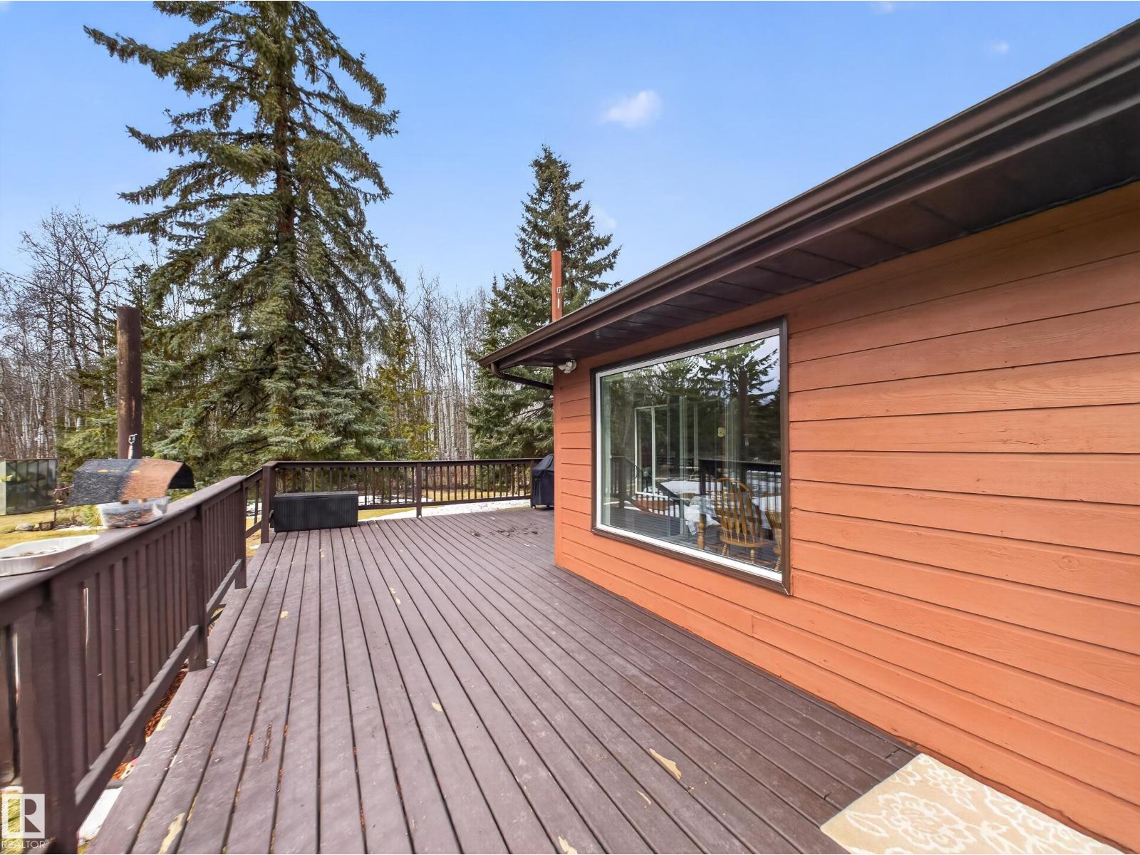 ~!WELCOME!~ PRIVATE ACREAGE...TREES FOR DAYS. FULLY FINISHED BUNGALOW. Just under 1800 sq ft bungalow, living on 2.69 acres of fully fenced, spruce-covered land—this is the setting people move to the country for! ORIGINAL OWNERS and unmistakable pride of ownership make this home a rare gem. Tucked into Wildwood Village, surrounded by mature trees, privacy, and quiet—yet only 15 minutes to Sherwood Park. The home has been exceptionally maintained with key upgrades already done: new septic (2025), newer triple-pane windows, newer furnace, newer appliances, and shingles approx. 8 years old. Inside offers a spacious living room, dining area, and functional kitchen, filled with natural light and a warm, welcoming feel. The fully finished basement adds flexibility for family living, guests, or entertaining. Step outside and it’s all here—trees, space, and total privacy. Room for kids, pets, and toys… or just quiet mornings and long summer nights. Move-in ready & country living at its best! (id:63190)