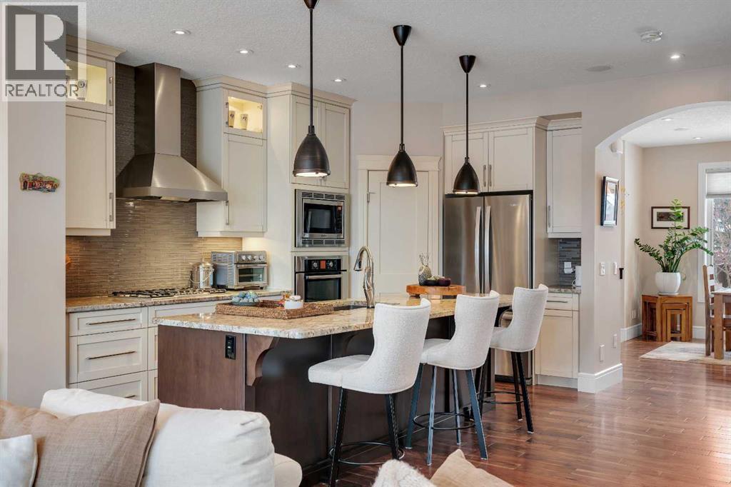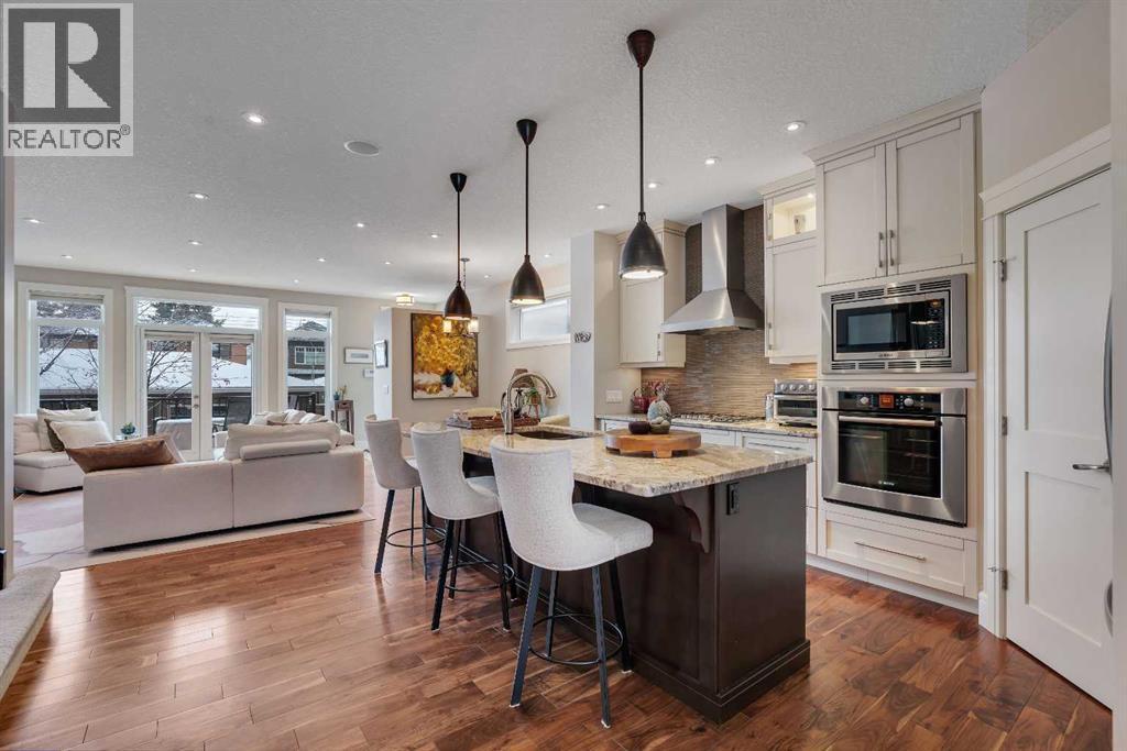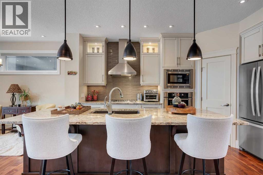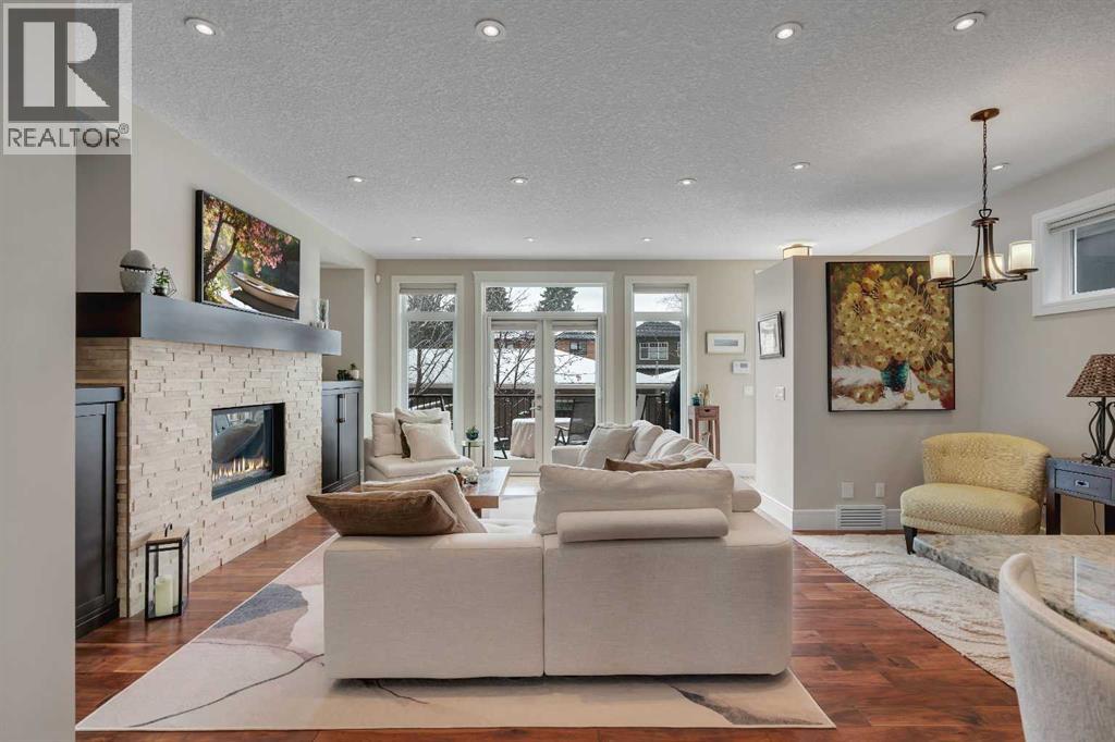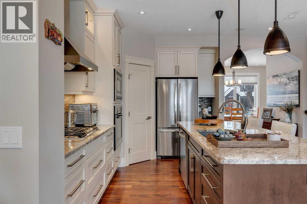 Welcome to 2041 45 Avenue SW. An exceptional Altadore residence offering the perfect blend of thoughtful design, quality construction, and elevated everyday living. Situated on one of the community’s most desirable streets, this beautifully maintained home features a sunny south facing backyard, professional landscaping, and a concrete party wall for enhanced privacy and soundproofing. Step inside to discover a bright, open-concept main floor filled with natural light, highlighted by a dramatic skylight over the stairwell. Designed for both entertaining and daily living, the space features a gourmet kitchen with a gas cooktop, wall oven, built-in microwave, new refrigerator (2024), a large central island, and two flexible dining/living areas. The cozy gas fireplace anchors the living room, while thoughtful additions like built-in cabinetry, a beverage fridge station, walk-in pantry, and both front and rear entry storage (including a mudroom) elevate functionality. French doors lead to a private, maintenance-free raised deck that enjoys sun year-round—perfect for relaxing or hosting. Upstairs, the elegant primary retreat features a vaulted ceiling, a new electric fireplace, a massive walk-in closet, and a spa-inspired ensuite designed for true luxury. Enjoy in-floor heating, a double vanity with a storage tower, a deep soaker tub with hand shower, and a steam shower complete with body sprays. Two additional generously sized bedrooms, along with a well-appointed laundry room with sink and storage, complete the upper level. The fully developed basement offers even more living space with a large recreation room, plus a fourth bedroom featuring its own ensuite and walk-in closet—ideal for guests or extended family. The basement is roughed-in for in-slab heating, offering the potential for year-round comfort. This home also includes central air conditioning, a water softener, a Vacuflo system, and a new roof (2024) and tankless Rinnai in December of 2025. All of this, jus t minutes to downtown, steps from transit, and within walking distance to the shops, restaurants, and amenities of vibrant Marda Loop, as well as beautiful River Park. (id:63190)