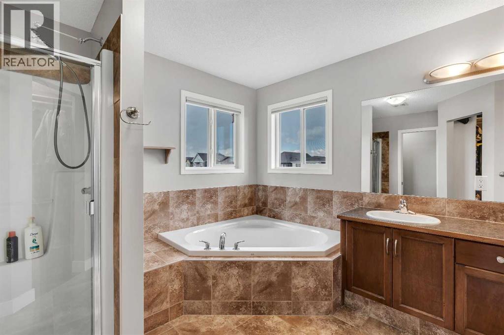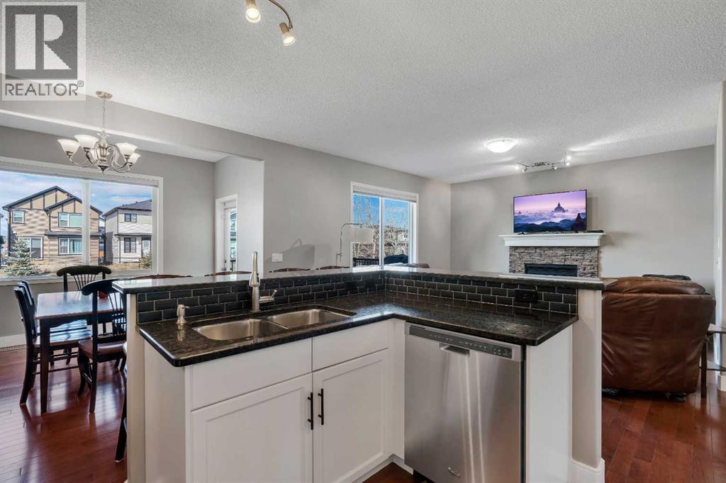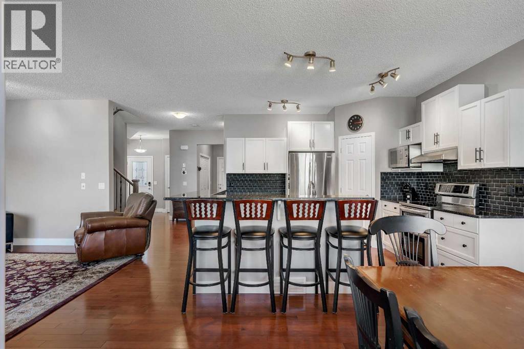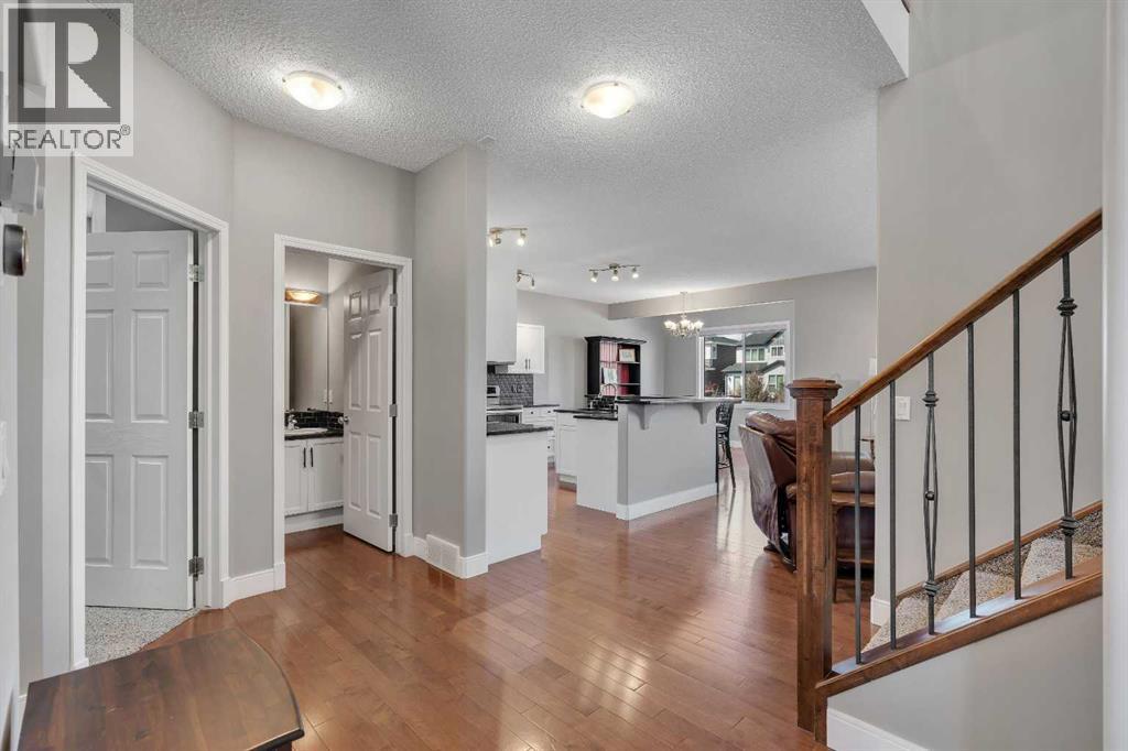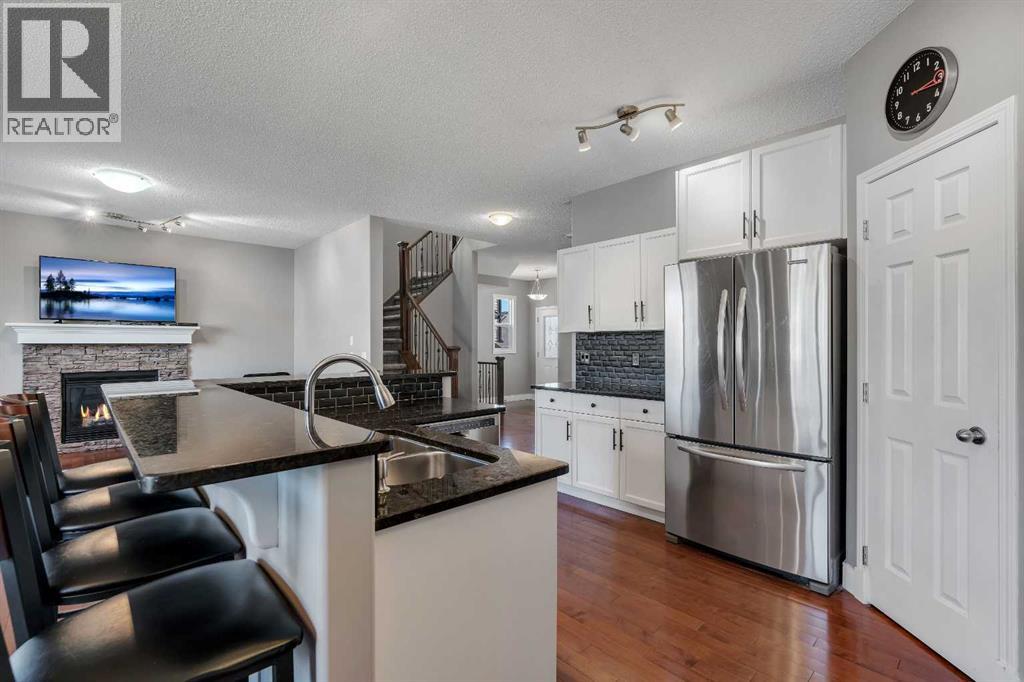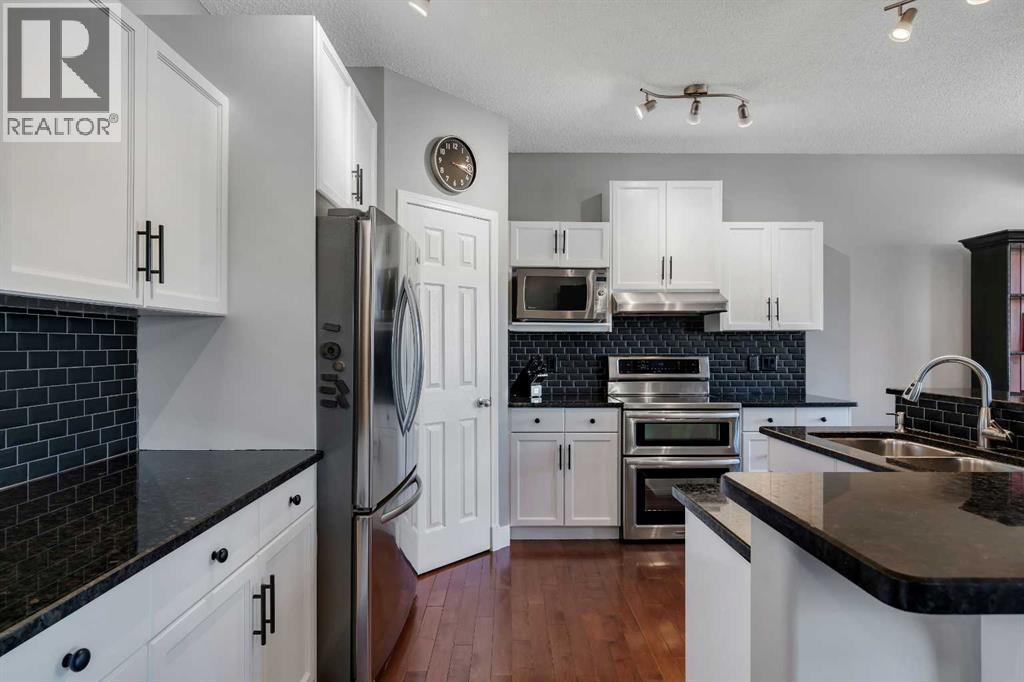 Welcome to 18 Silverado Skies Drive SW. Backing directly onto a green space and a walking path with, this fully updated Silverado home offers over 2,300 sq ft of developed living space with 4 bedrooms, a main floor office, and 3.5 bathrooms. The main floor is built for both everyday living and entertaining, featuring an open-concept layout with durable hardwood flooring throughout and a cozy gas fireplace anchoring the living room. The kitchen has been tastefully refreshed with crisp white cabinetry, modern black hardware, granite countertops, a central island with eating bar, corner pantry, and stainless steel appliances including a dual oven. A dedicated main floor office and laundry add function without sacrificing space. Upstairs, the vaulted bonus room creates an impressive second living area filled with natural light. The primary suite is spacious and well-designed, featuring a walk-in closet with added custom shelving and a 5-piece ensuite complete with dual sinks, a corner soaker tub, separate shower, and a private water closet. Two additional bedrooms, a full 4-piece bath, and a laundry room with a newer washer and dryer complete the upper level, which has recently been upgraded with luxury vinyl plank flooring throughout. The fully developed basement (2020) expands your living space with a dry bar, electric fireplace, custom built-ins, a large bedroom with legal egress window, and a smart pass-through bathroom with heated floors. This home has seen major exterior and mechanical upgrades, including Hardie siding (2021), all new windows (December 2025), and a hot water tank (2020). Out back, enjoy an expanded deck overlooking uninterrupted green space and direct access to walking paths. Finished with a double attached garage and located close to schools, parks, and shopping. (id:63190)
