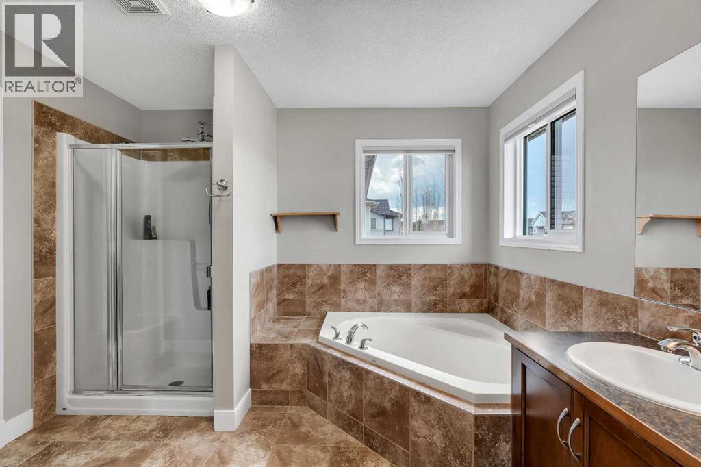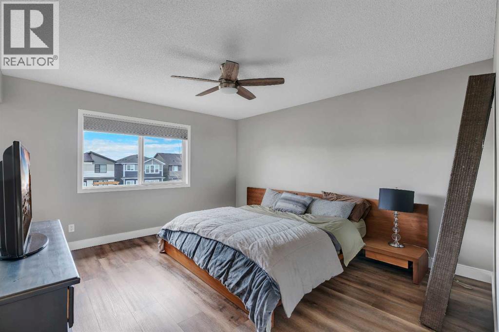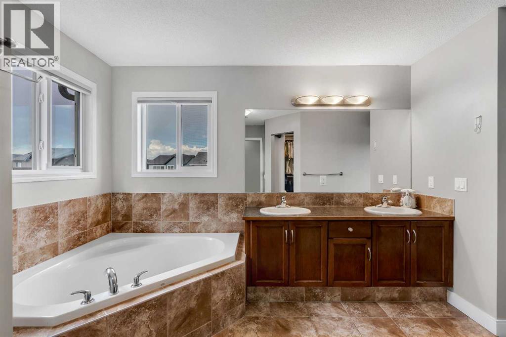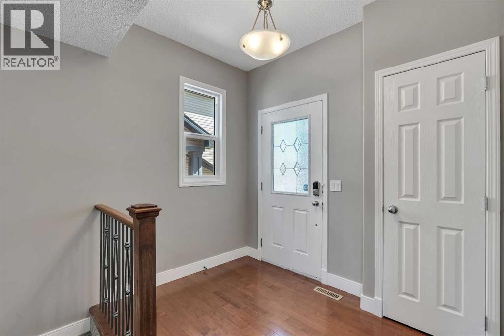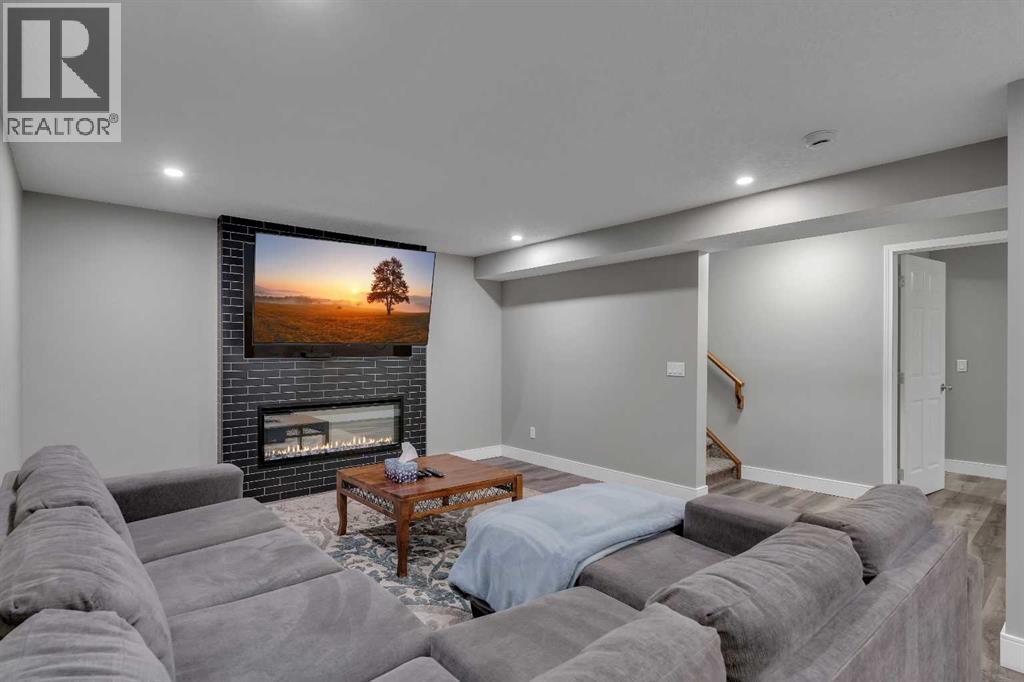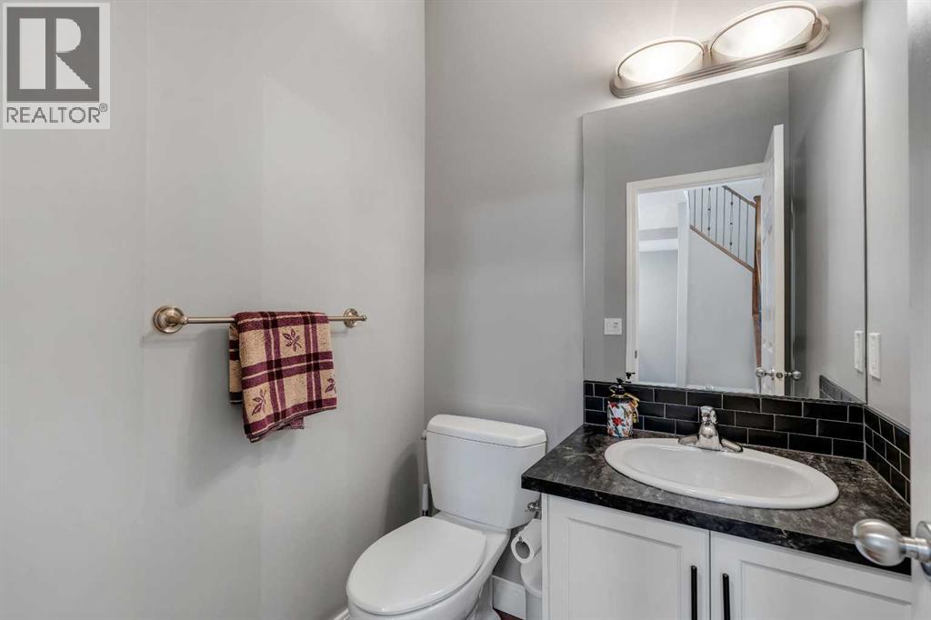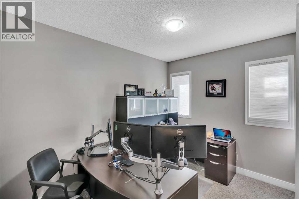 Welcome to 18 Silverado Skies Drive SW. Backing directly onto a green space and a walking path with, this fully updated Silverado home offers over 2,300 sq ft of developed living space with 4 bedrooms, a main floor office, and 3.5 bathrooms. The main floor is built for both everyday living and entertaining, featuring an open-concept layout with durable hardwood flooring throughout and a cozy gas fireplace anchoring the living room. The kitchen has been tastefully refreshed with crisp white cabinetry, modern black hardware, granite countertops, a central island with eating bar, corner pantry, and stainless steel appliances including a dual oven. A dedicated main floor office and laundry add function without sacrificing space. Upstairs, the vaulted bonus room creates an impressive second living area filled with natural light. The primary suite is spacious and well-designed, featuring a walk-in closet with added custom shelving and a 5-piece ensuite complete with dual sinks, a corner soaker tub, separate shower, and a private water closet. Two additional bedrooms, a full 4-piece bath, and a laundry room with a newer washer and dryer complete the upper level, which has recently been upgraded with luxury vinyl plank flooring throughout. The fully developed basement (2020) expands your living space with a dry bar, electric fireplace, custom built-ins, a large bedroom with legal egress window, and a smart pass-through bathroom with heated floors. This home has seen major exterior and mechanical upgrades, including Hardie siding (2021), all new windows (December 2025), and a hot water tank (2020). Out back, enjoy an expanded deck overlooking uninterrupted green space and direct access to walking paths. Finished with a double attached garage and located close to schools, parks, and shopping. (id:63190)