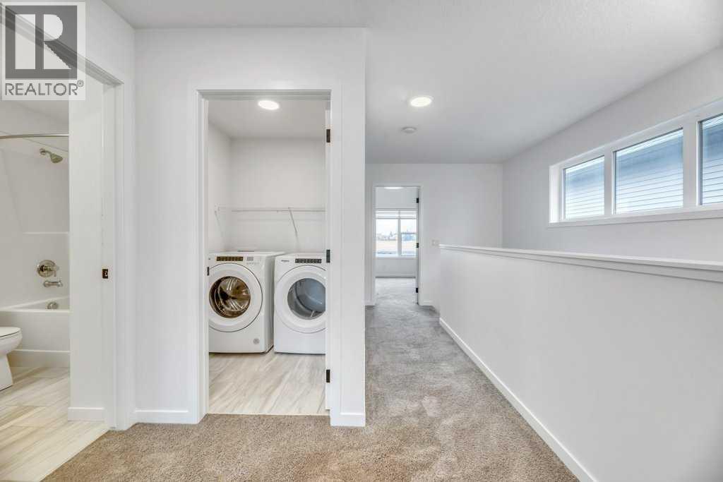 OPEN HOUSE SUNDAY APRIL 26TH FROM 12;00 - 2:00 Step inside and you'll immediately appreciate the warm and inviting open-concept layout, highlighting by beautiful laminate flooring throughout the main floor. The spacious living room features a cozy gas fireplace, creating the perfect place to relax or entertain. The kitchen is sure to impress with granite countertops, stainless steel appliances, and a gas stove, making it ideal for both everyday living and hosting guests. A convenient two-piece bathroom completes the main level. Upstairs, you'll find three generously sized bedroom along with the added bonus of upper laundry a feature today's buyers love for it's practicality and ease. Don't forget the beautiful ensuite off the master bed with double sinks a great soaker tub and stand alone shower. Outside enjoy a beautifully front porch - perfect for your morning coffee. In the evening relax out on your large private deck out in the developed back yard when you enjoy your gas hook up and BBQ on those summer nights. The detached garage is 19.5X 21.5 provides excellent parking and Storage options. Located in the welcoming town of Crossfield you will find this property is in move-in ready and priced better then the new builds as this home is fully developed outside from front to back . Call for you private viewing today (id:63190)