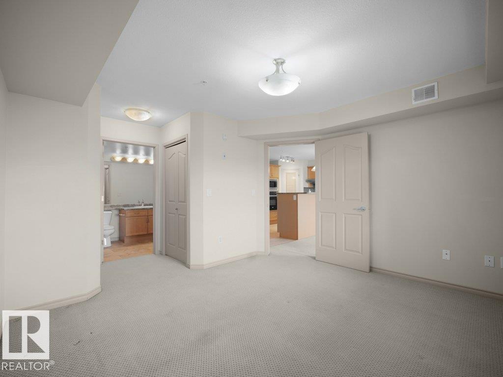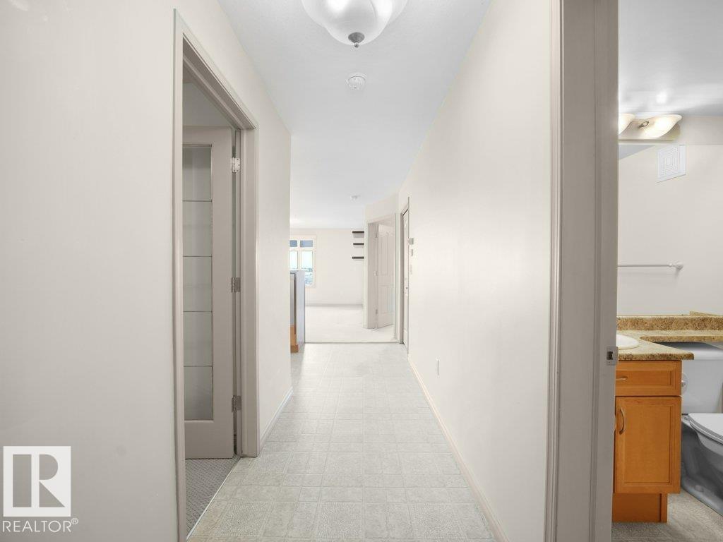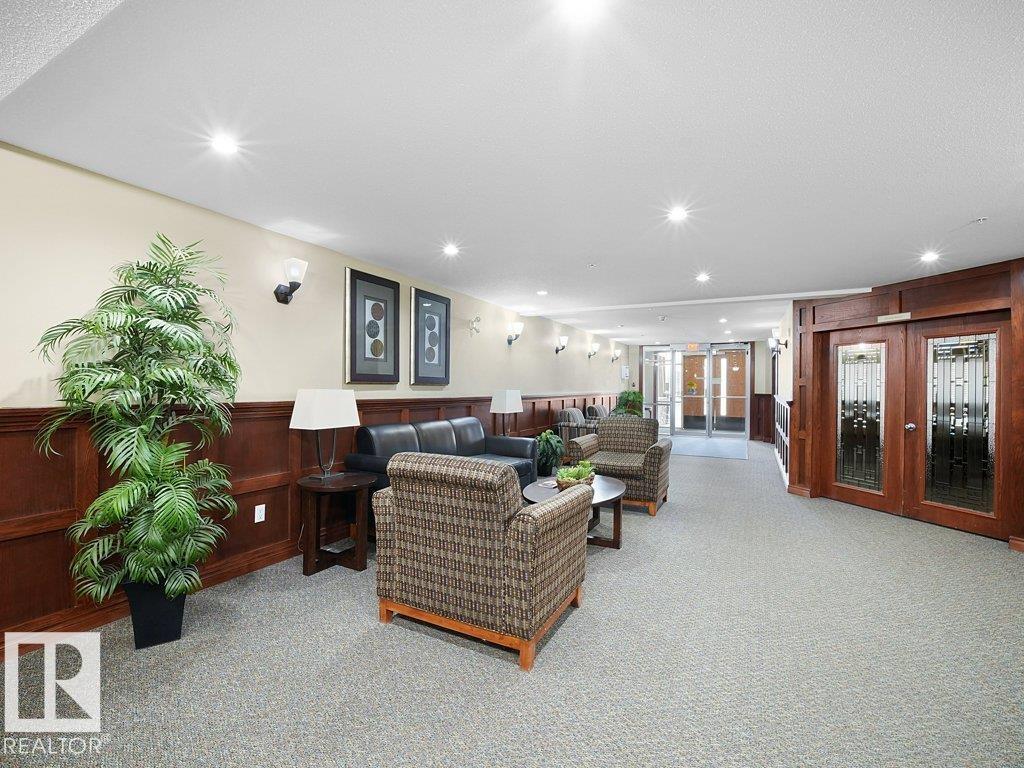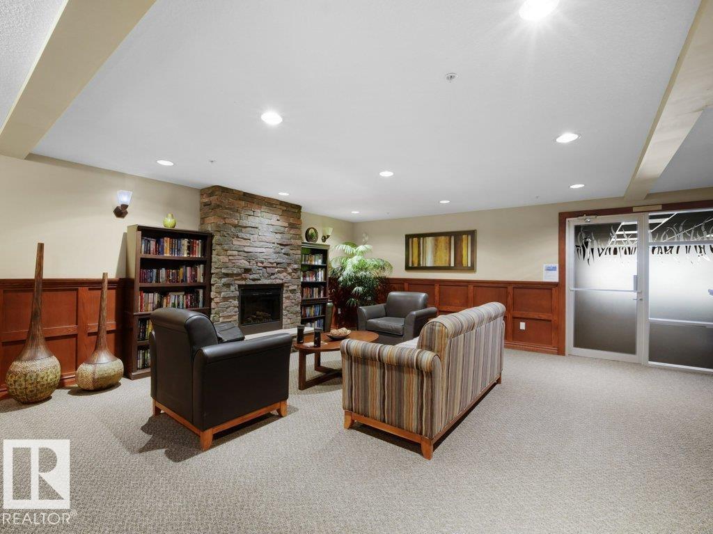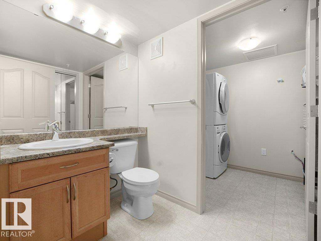 A thoughtfully designed third-floor residence in Glastonbury Village, offering comfortable, low-maintenance living in a quiet 18+ community. This 2-bedroom, 2-bathroom condo spans approximately 900 sq ft, with a layout that maximizes space and natural light. A spacious east-facing covered balcony extends the living area outdoors, ideal for morning coffee and sunrise views. The kitchen features newer appliances, generous cabinetry, and a walk-in pantry. The adjoining living and dining areas flow naturally for everyday living or hosting. The primary bedroom offers convenient access to a full bathroom, while the second bedroom provides flexibility for guests or a home office. In-suite stackable laundry adds everyday convenience. Includes heated underground titled parking and a storage cage. Amenities include a fitness room, social spaces, guest suite, and secure entry. Walking distance to shopping, restaurants, and services, with quick access to West Edmonton Mall and the Anthony Henday. (id:63190)