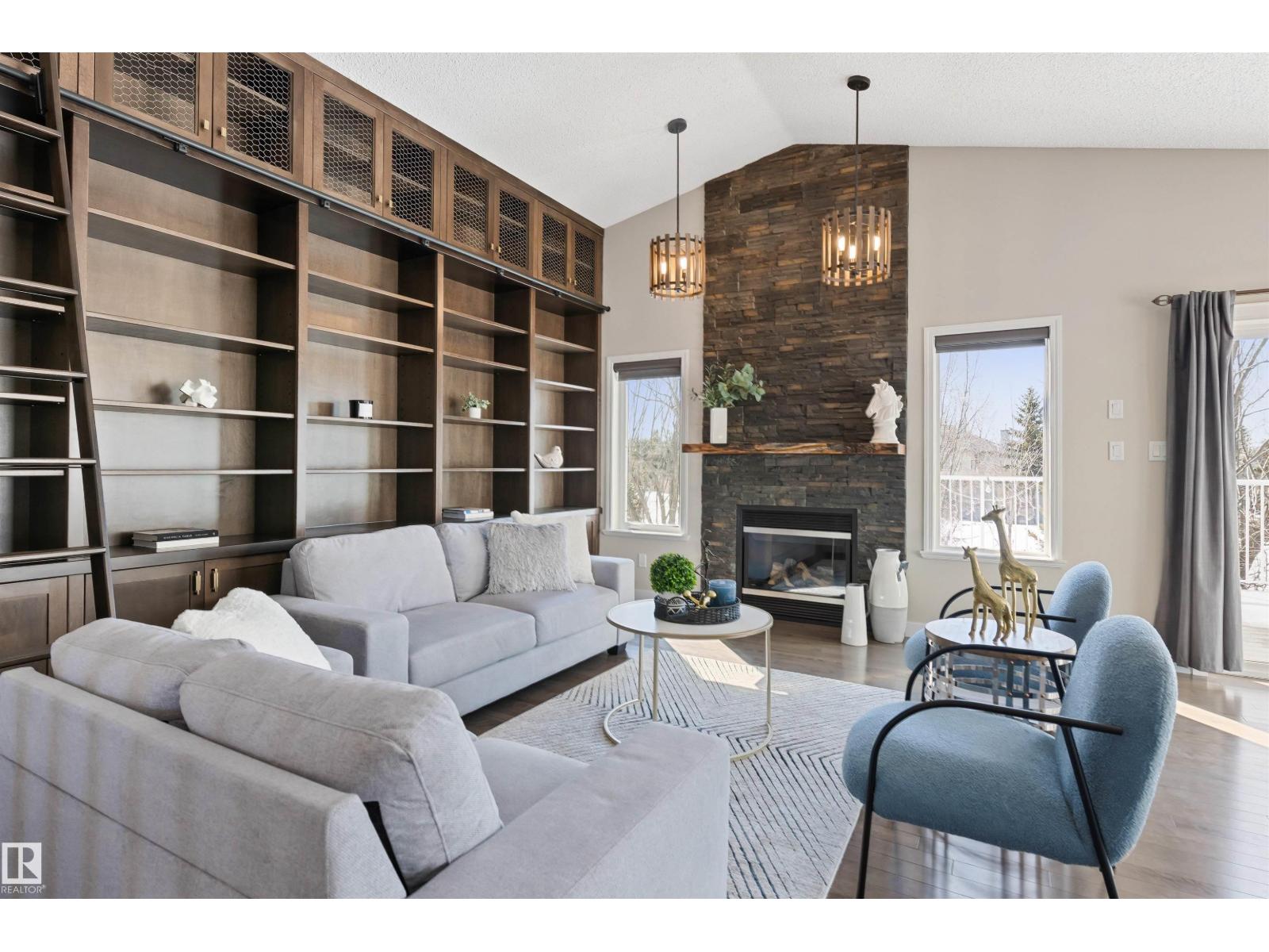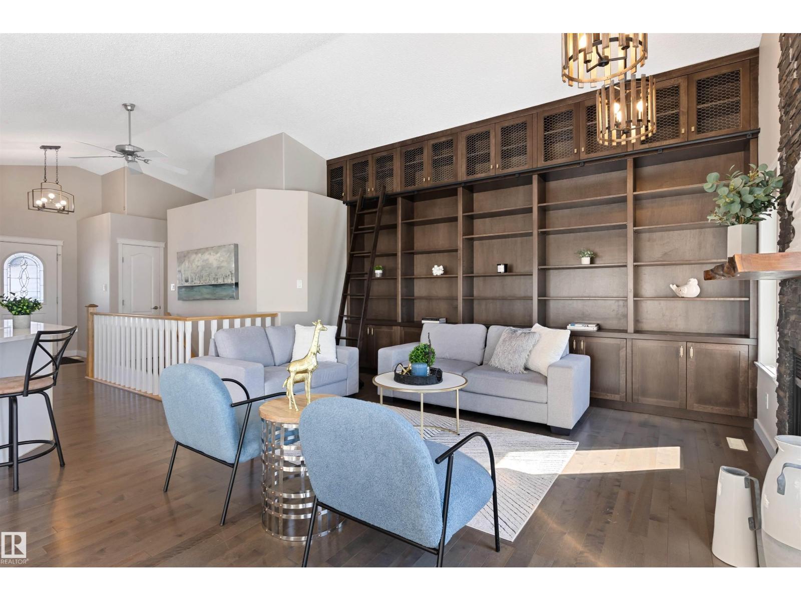 On a quiet crescent in Northridge, discover this charming WALKOUT BUNGALOW backing onto Newbury PARK. This home has great curb appeal w/ a covered front deck. The entrance welcomes guests into an OPEN DESIGN featuring a white kitchen w/ QUARTZ counters, eating bar island, corner pantry, tile backsplash, pot/pan drawers, crown moulding trim on the upper cabinets & s/s appliances. The living room has soaring VAULTED CEILINGS, a gas f/p w/ stone front, a wood mantle & a stunning library wall. The dining nook has access out to the maintenance free back deck w/ gorgeous park views. A French door leads into a front office w/ hardwood flooring which flows throughout most of the main floor. The garage entrance has the laundry facilities. There are 2 main floor bedrooms, a 4pce bath & a 3pce ensuite. The fully finished WALKOUT basement has a 2nd kitchen, family room w/ f/p, 3rd bedroom, hobby room, 4pce bath & a 2nd laundry room. A double attached OVERSIZED HEATED garage completes this excellent property! (id:63190)