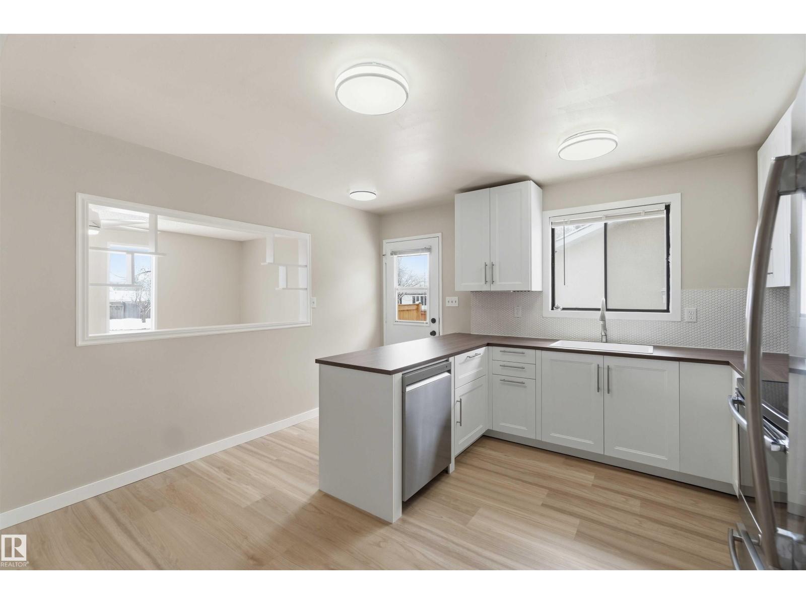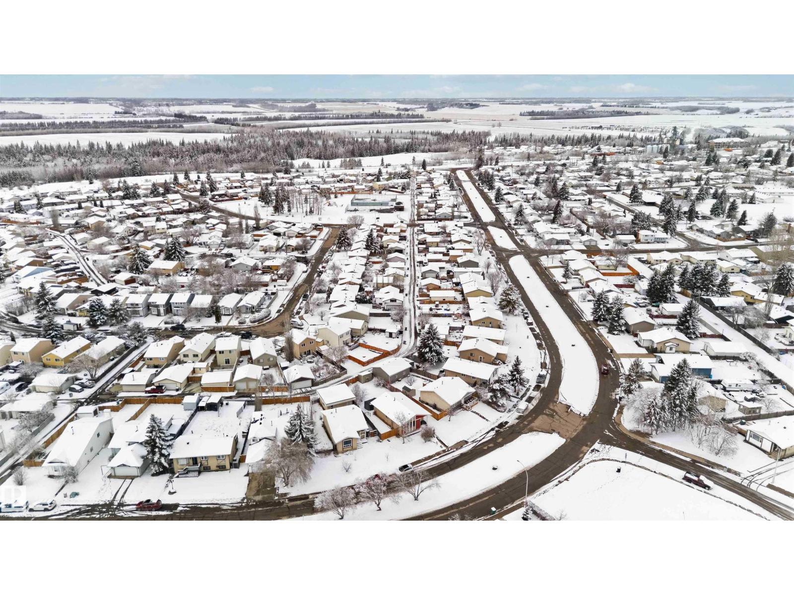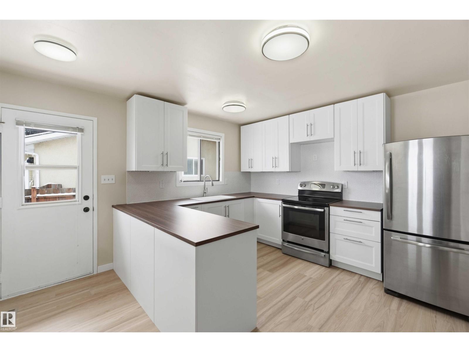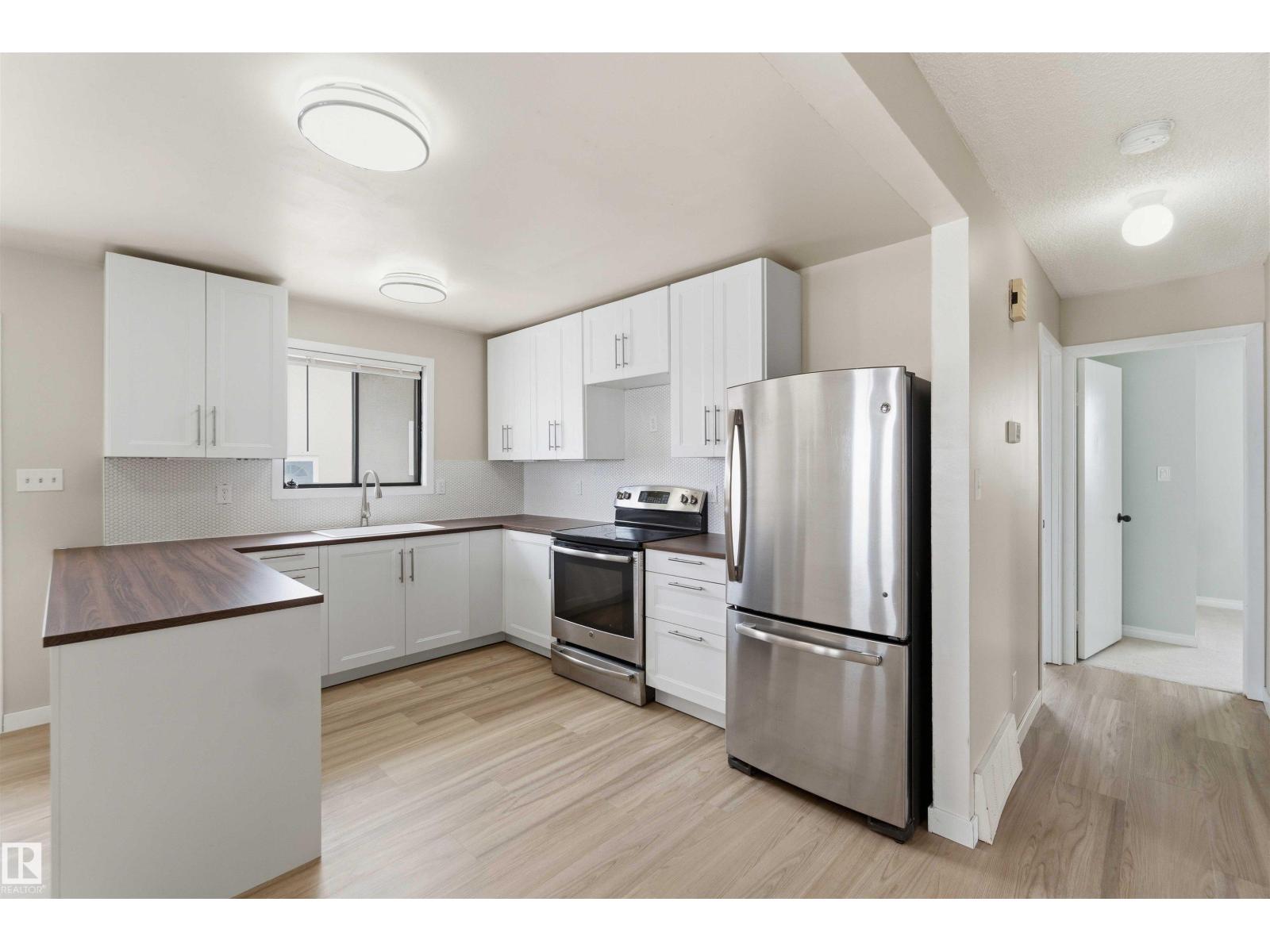 This charming 993 sq. ft. bungalow in Gibbons is the quintessential starter home, offering an unbeatable mix of affordability and high-value modern updates. The main floor features three comfortable bedrooms and has been beautifully refreshed with brand-new flooring and a stunning kitchen completed just months ago, while the finished basement provides a spacious rec room and two additional bedrooms (please note basement windows do not meet current egress codes). You can enjoy total peace of mind with major mechanical upgrades including a new furnace and central AC installed in 2022, along with a lovely new deck built last year that is perfect for summer entertaining. Ideally situated for convenience, this move-in-ready gem is located just 15 minutes from the military base, making it a fantastic opportunity for service members or first-time buyers looking for a solid investment in a friendly community. some picture are virtually Stages (id:63190)