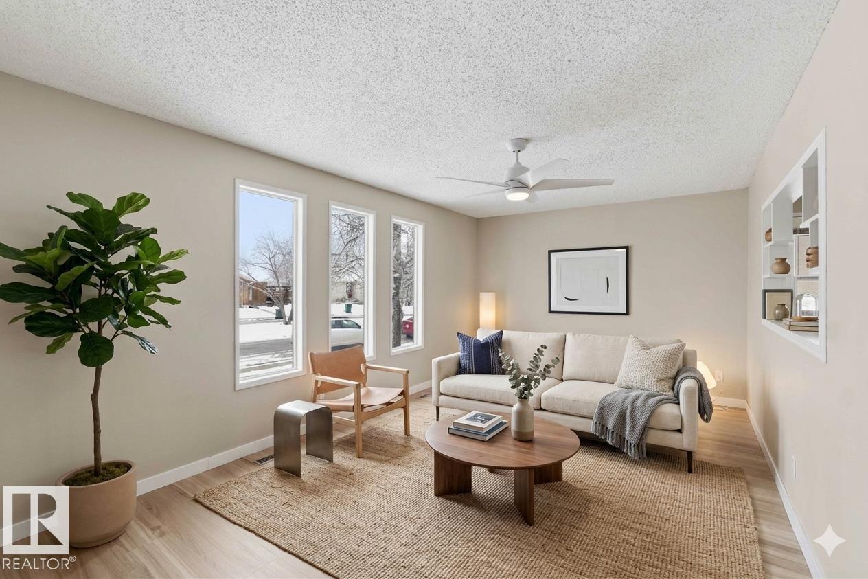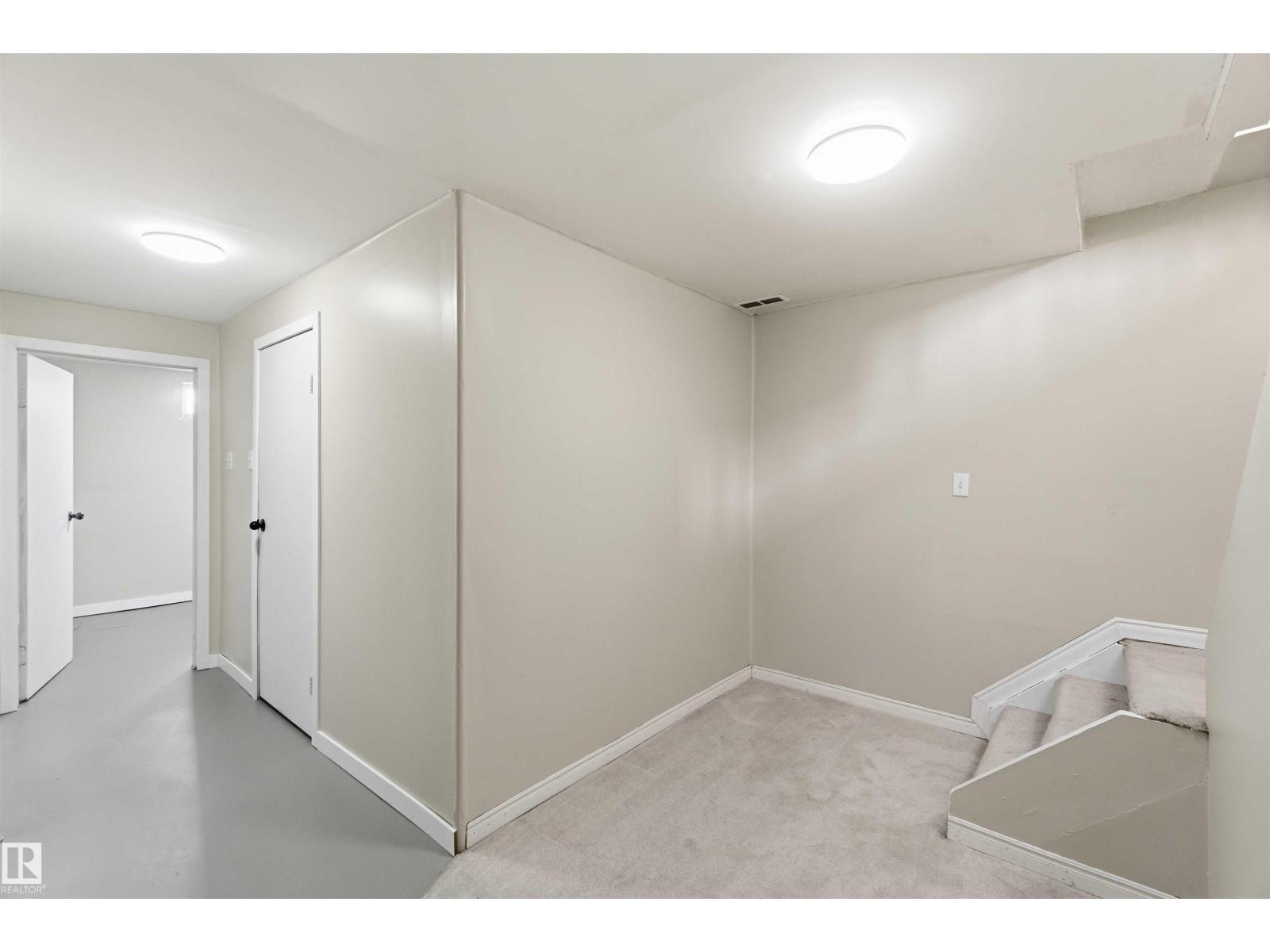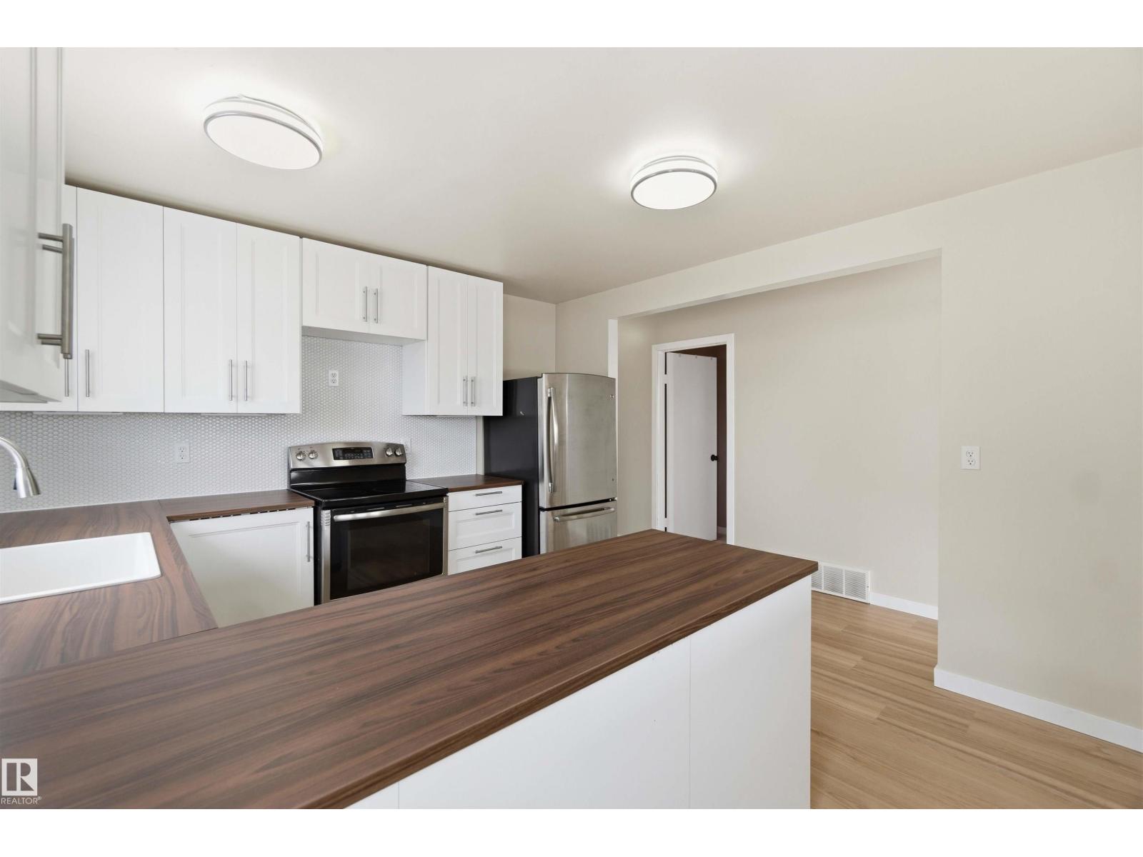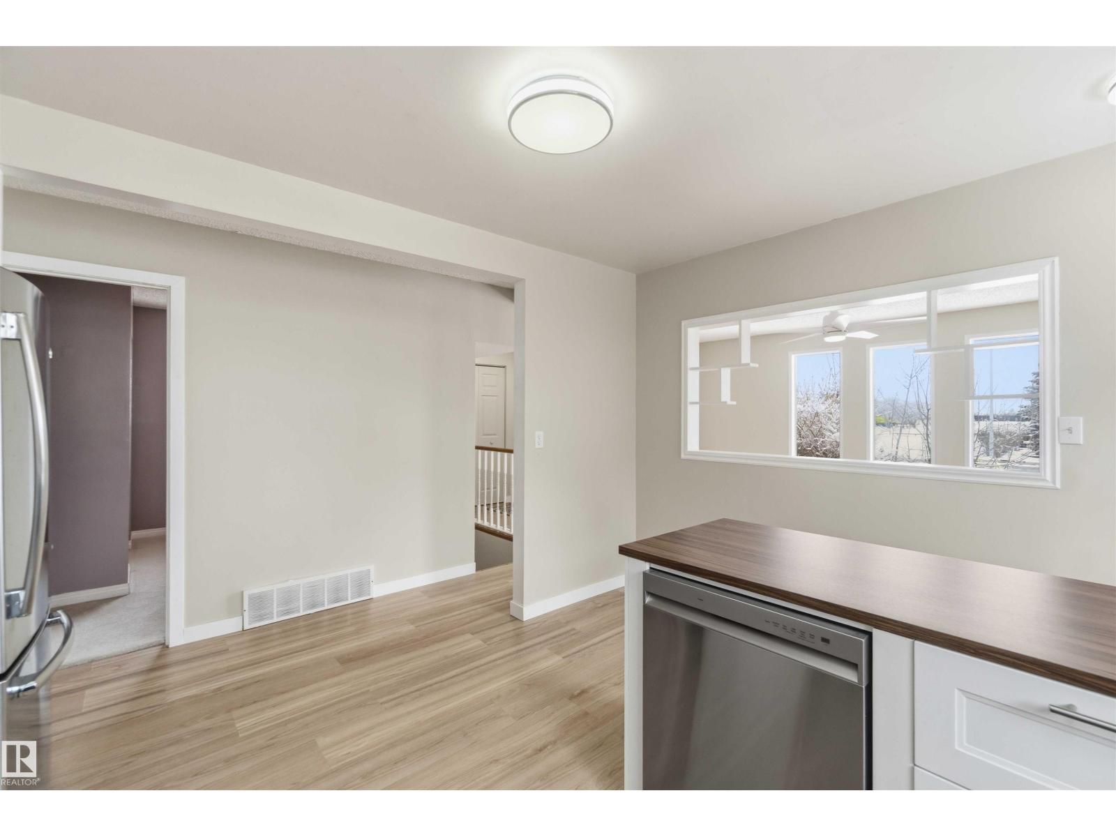 This charming 993 sq. ft. bungalow in Gibbons is the quintessential starter home, offering an unbeatable mix of affordability and high-value modern updates. The main floor features three comfortable bedrooms and has been beautifully refreshed with brand-new flooring and a stunning kitchen completed just months ago, while the finished basement provides a spacious rec room and two additional bedrooms (please note basement windows do not meet current egress codes). You can enjoy total peace of mind with major mechanical upgrades including a new furnace and central AC installed in 2022, along with a lovely new deck built last year that is perfect for summer entertaining. Ideally situated for convenience, this move-in-ready gem is located just 15 minutes from the military base, making it a fantastic opportunity for service members or first-time buyers looking for a solid investment in a friendly community. some picture are virtually Stages (id:63190)