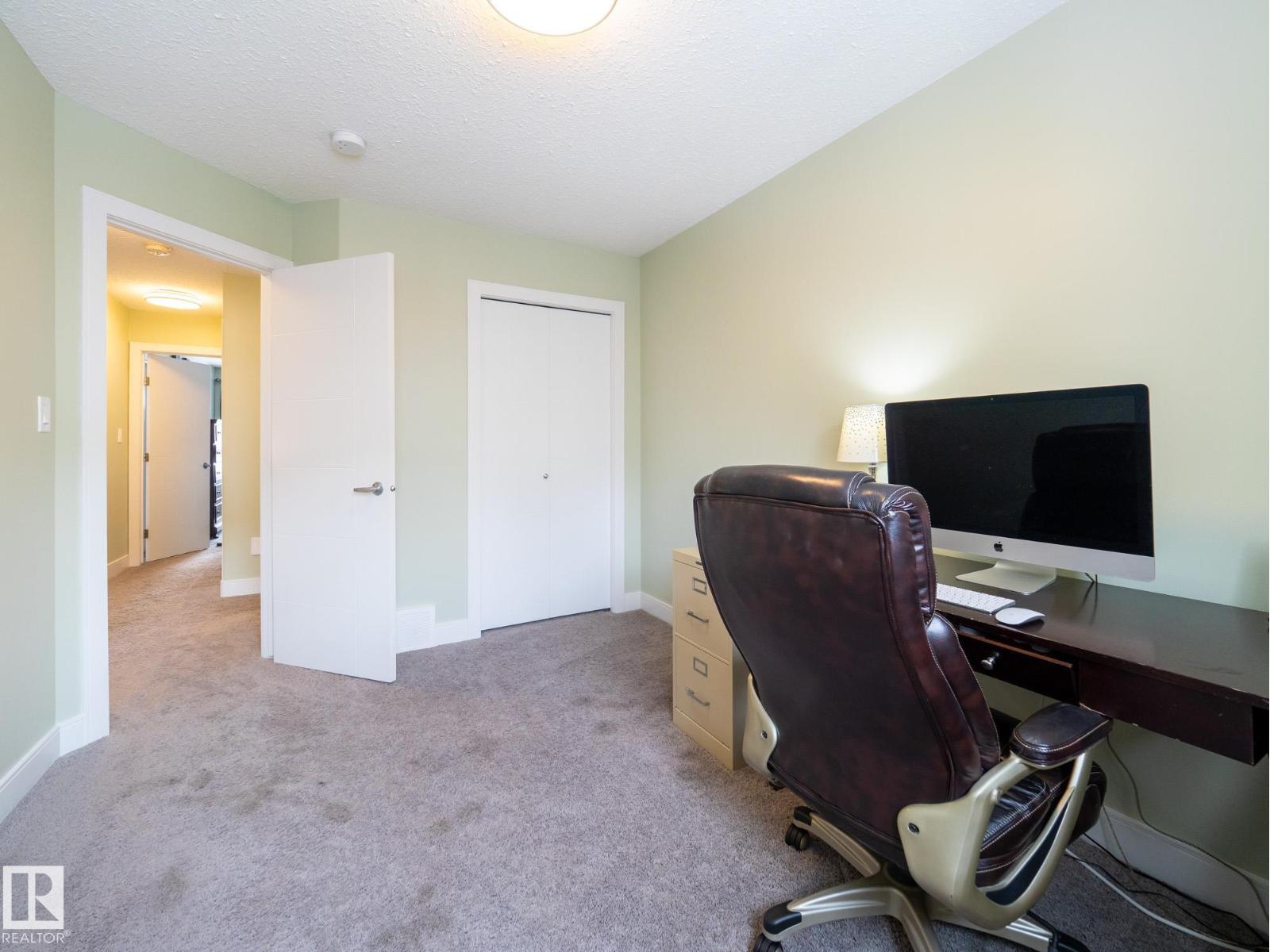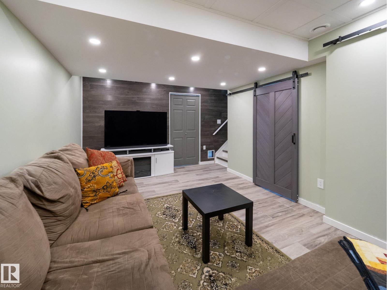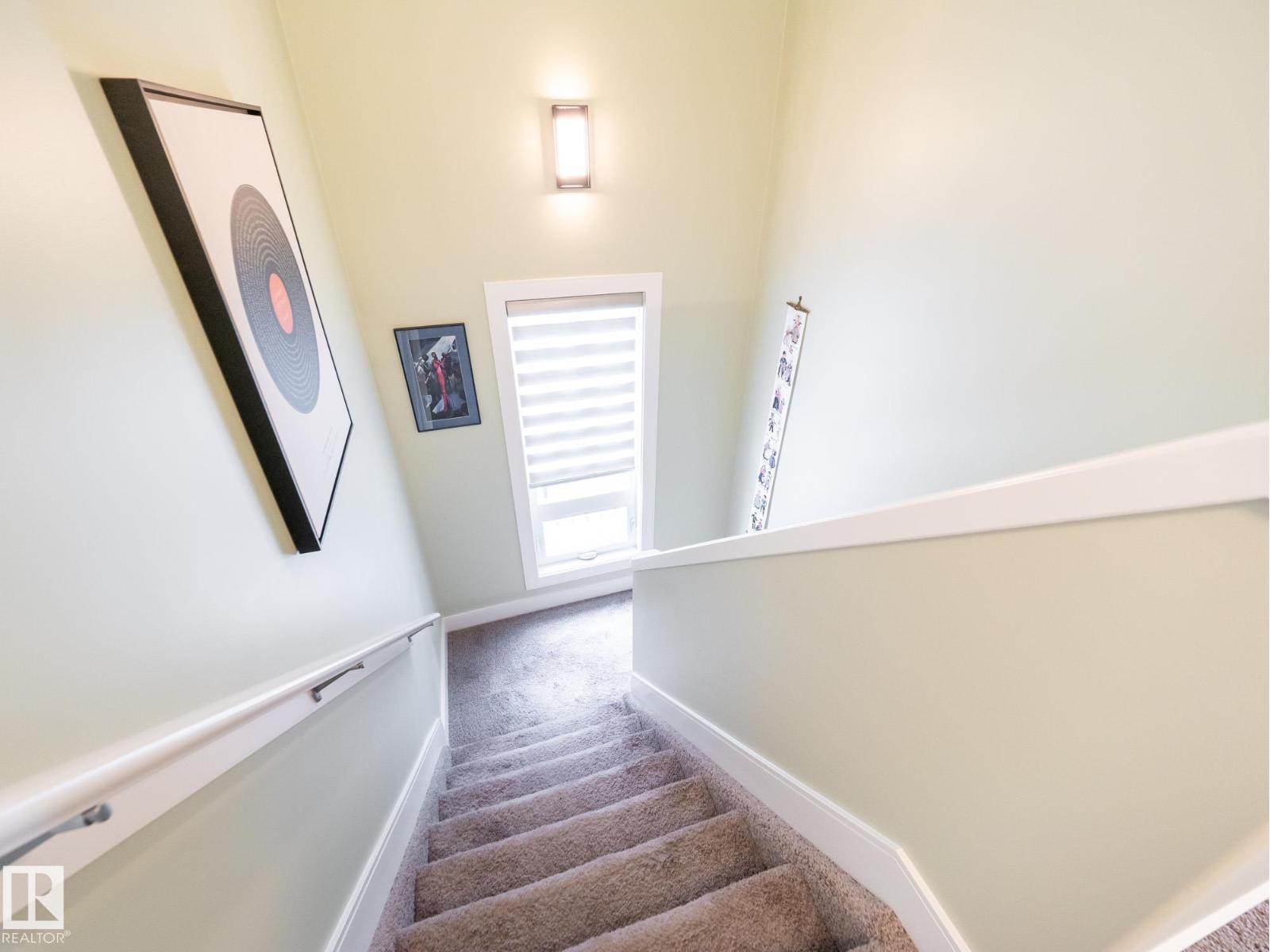Welcome to Bellwether Park Townhomes, where style and functionality meet in this beautifully finished 1,381 sqft home. You’re welcomed by a bright, open-concept layout designed for modern living. The sleek white kitchen features quartz countertops, a centre island, and high-end appliances—including Miele, KitchenAid, and Frigidaire—and flows seamlessly into the spacious living and dining areas. A convenient powder room and direct access to the double attached garage complete the main floor. Upstairs, you’ll find a king-sized primary retreat with a luxurious 5-piece ensuite featuring a soaker tub, spa-inspired shower, and a large walk-in closet. Two additional well-sized bedrooms and upper-level laundry add everyday convenience. The fully finished basement offers a cozy family/TV room and a versatile den, perfect for a home office or gym. Outside, enjoy the fenced yard with perennials, a patio, and raised garden beds—ideal for relaxing or entertaining. This is one home not to be missed!! (id:63190)